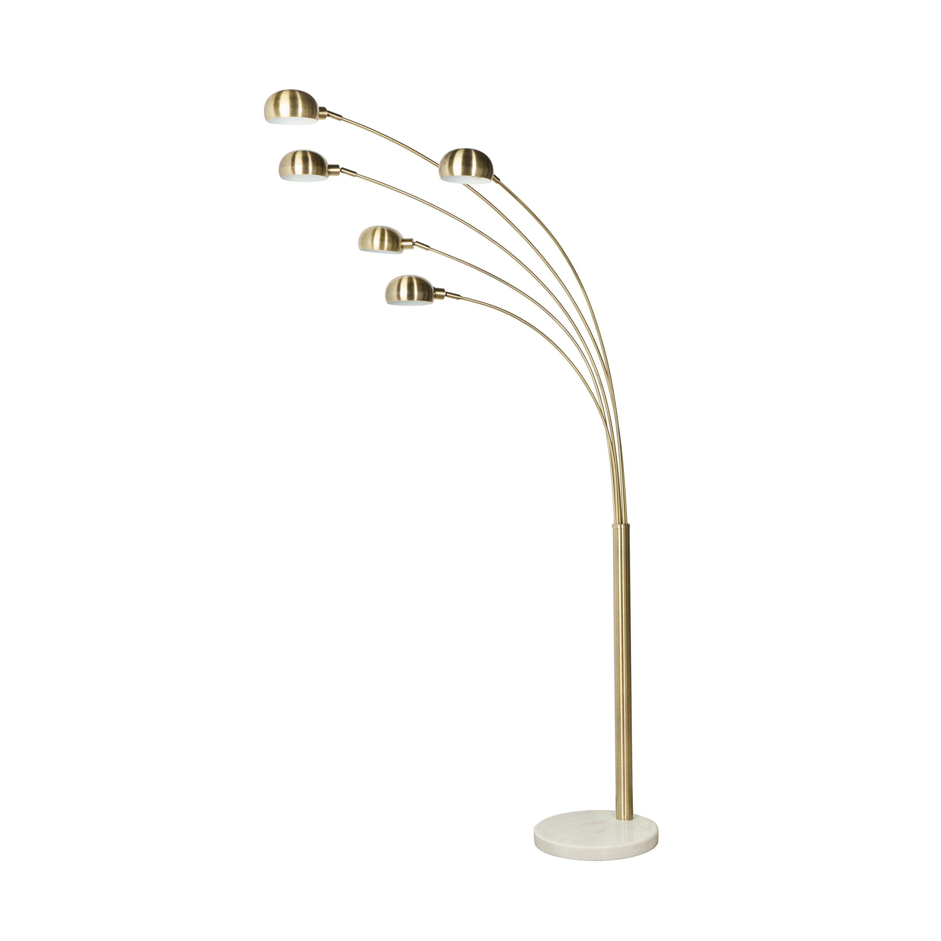 The Aiden Floor Lamp brings a warm, nostalgic touch with its '60s-inspired fanned design and brass metalware. Its flexible lamp heads allow easy adjustment to suit any space, making it perfect for adding depth to living areas or creating a cosy corner for reading and work.
