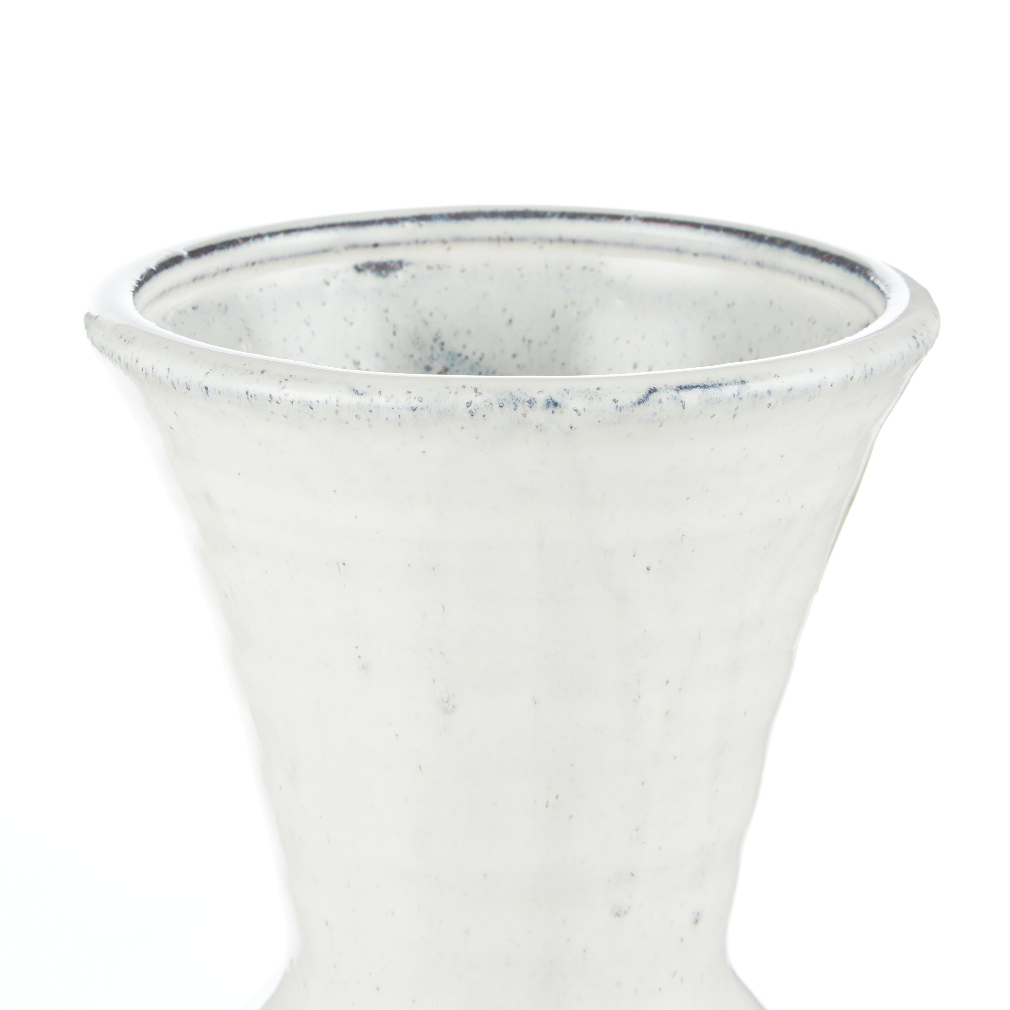 The Alma Vase, crafted from white ceramic, features an elegant contemporary silhouette that stands out on any tabletop, shelf, or window display. Ideal for showcasing fresh or faux flowers, it effortlessly enhances any corner of your home.