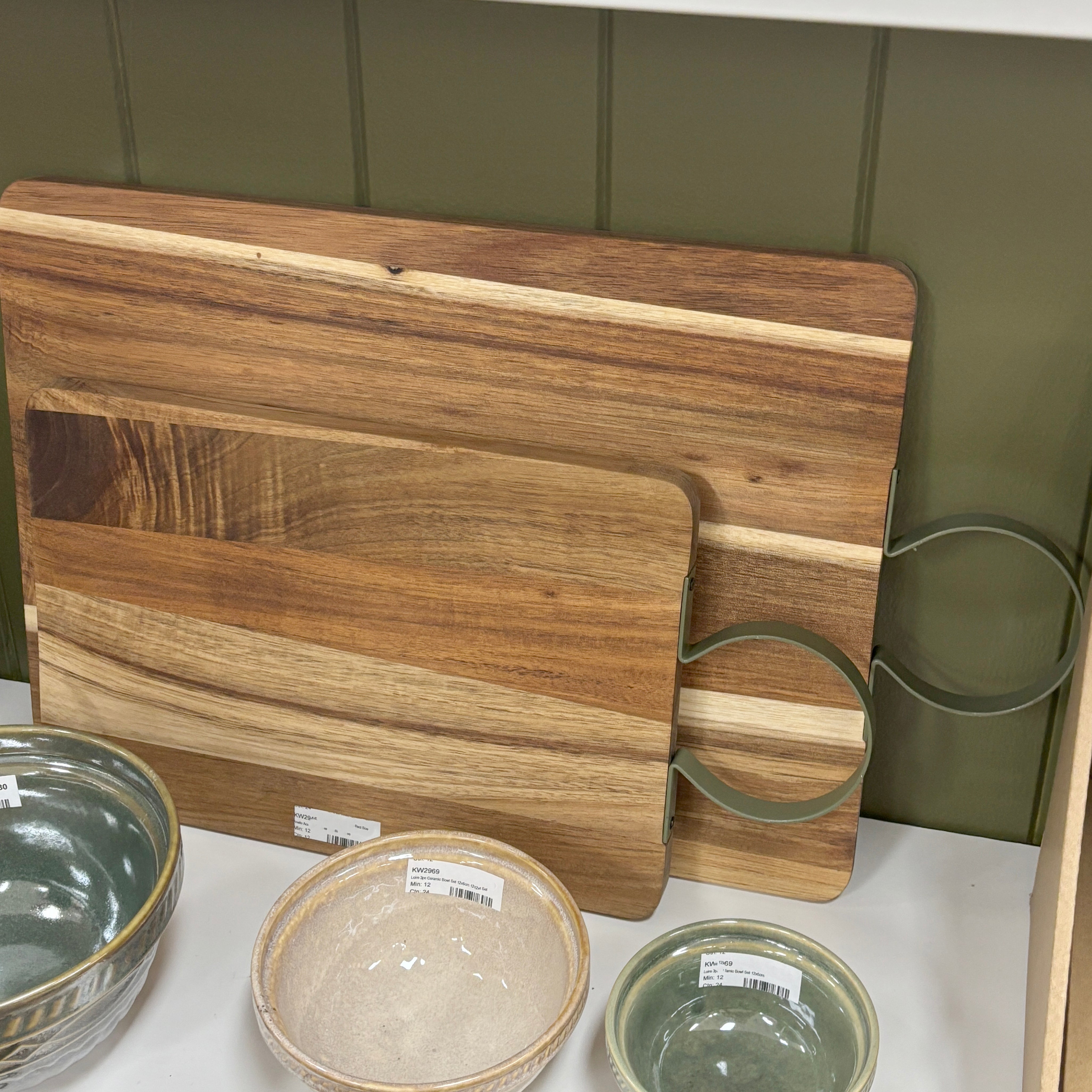 Crafted from durable acacia timber, the Anello Acacia Board features a vibrant green handle for easy carrying. Its spacious surface is ideal for serving snacks, combining functionality with a touch of color to enhance your presentation.