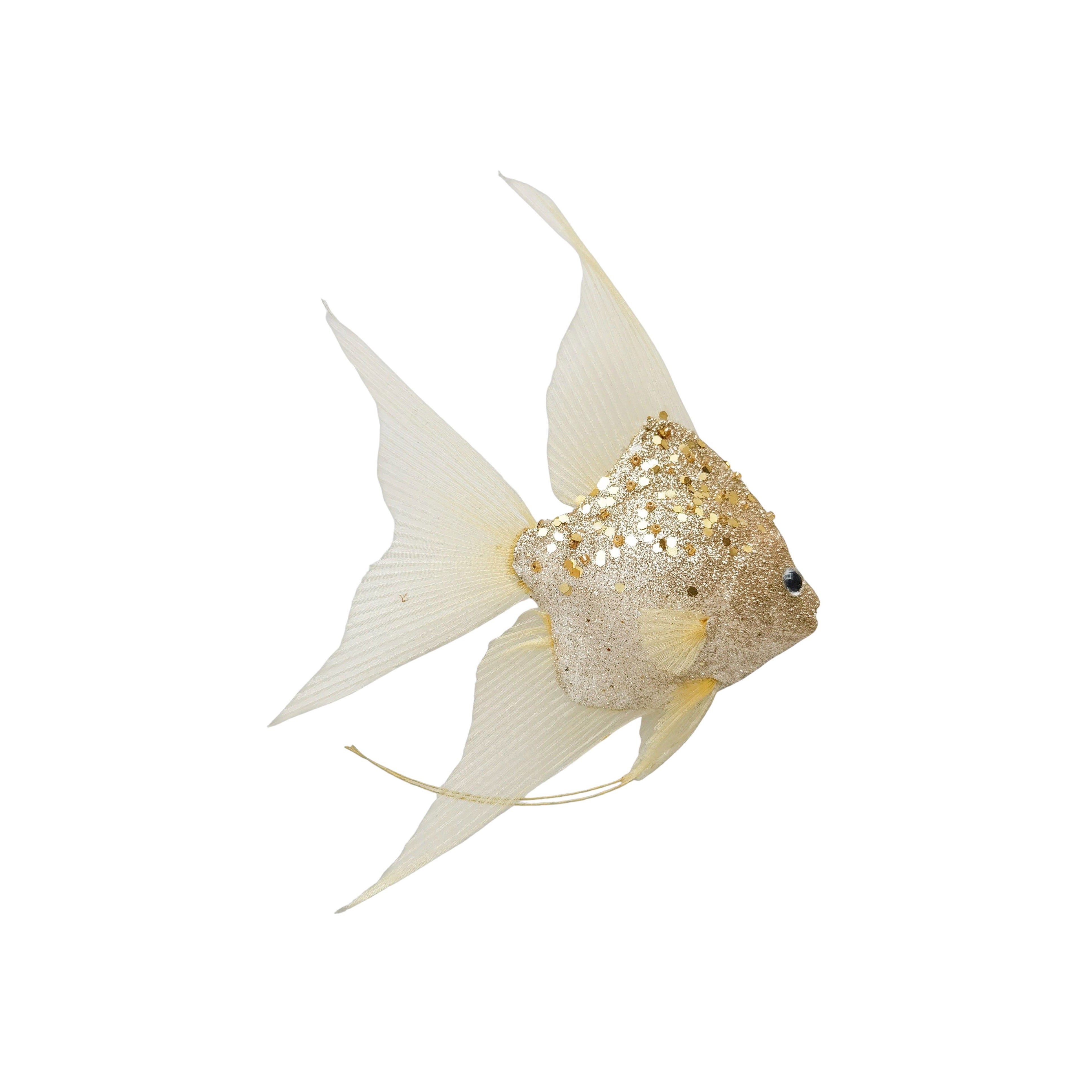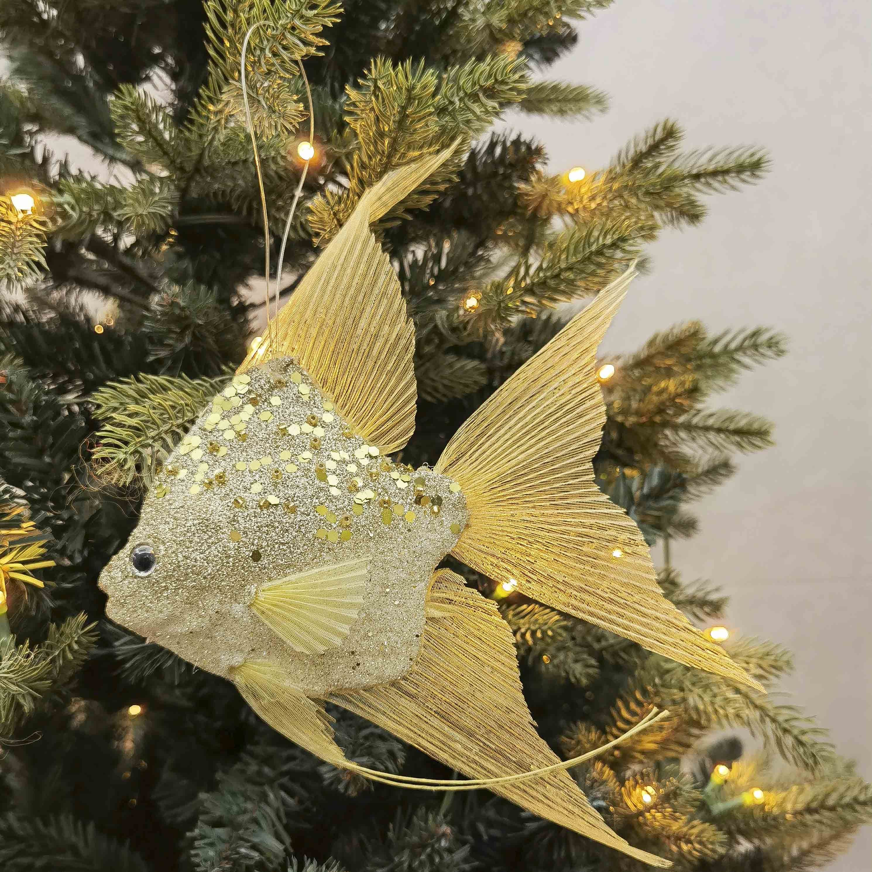 Dive into festive magic with this enchanting Angel Fish Hanging Decoration. Finished with shimmering golden champagne glitter, this charming nautical treasure brings a touch of whimsy to your holiday display. Perfect for adding a playful splash of seaside elegance to your tree or window, this delightful ornament captures the sweet spirit of the season.