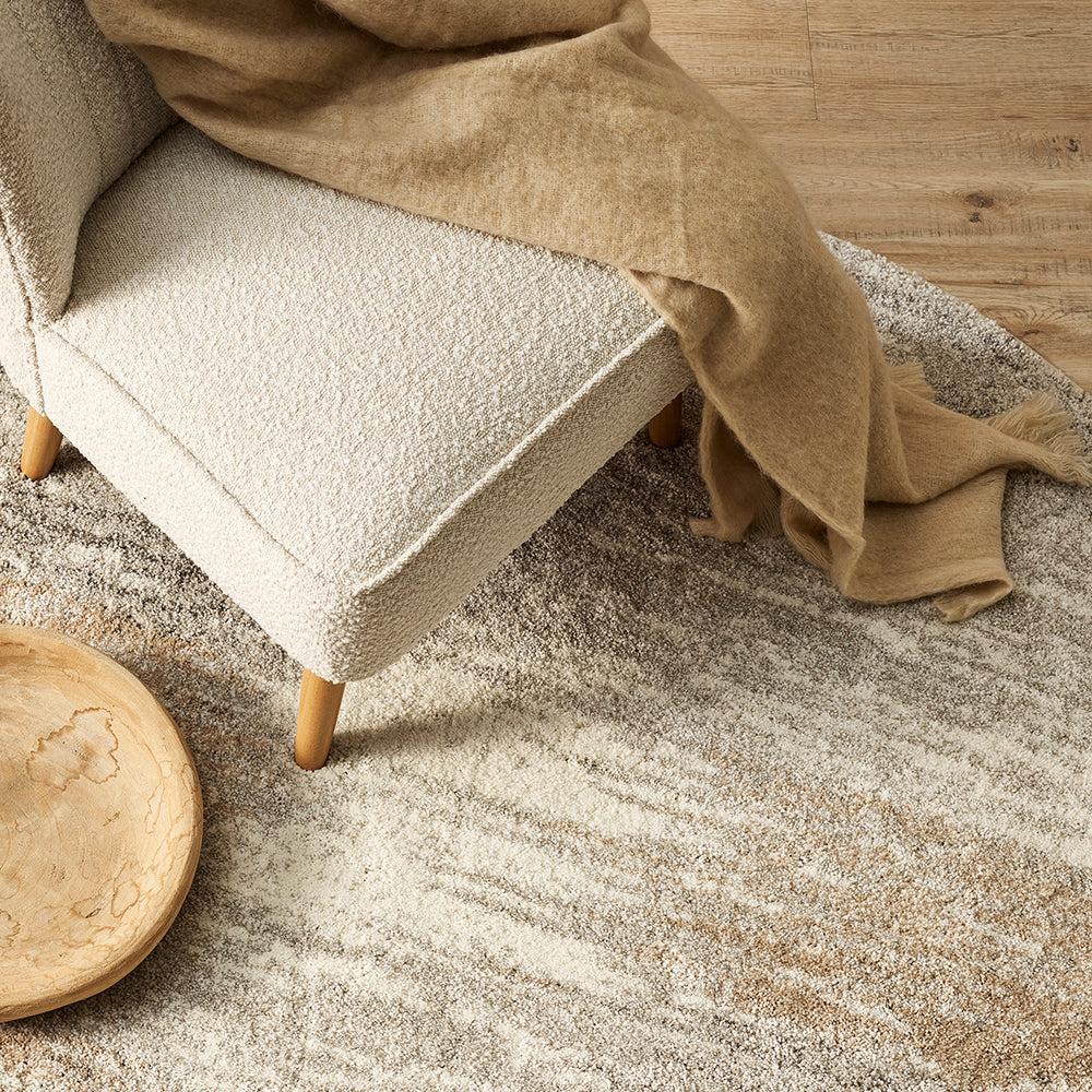 A soft, abstract design, Angelo is a fantastic base piece in neutral tones, to build your living space around.