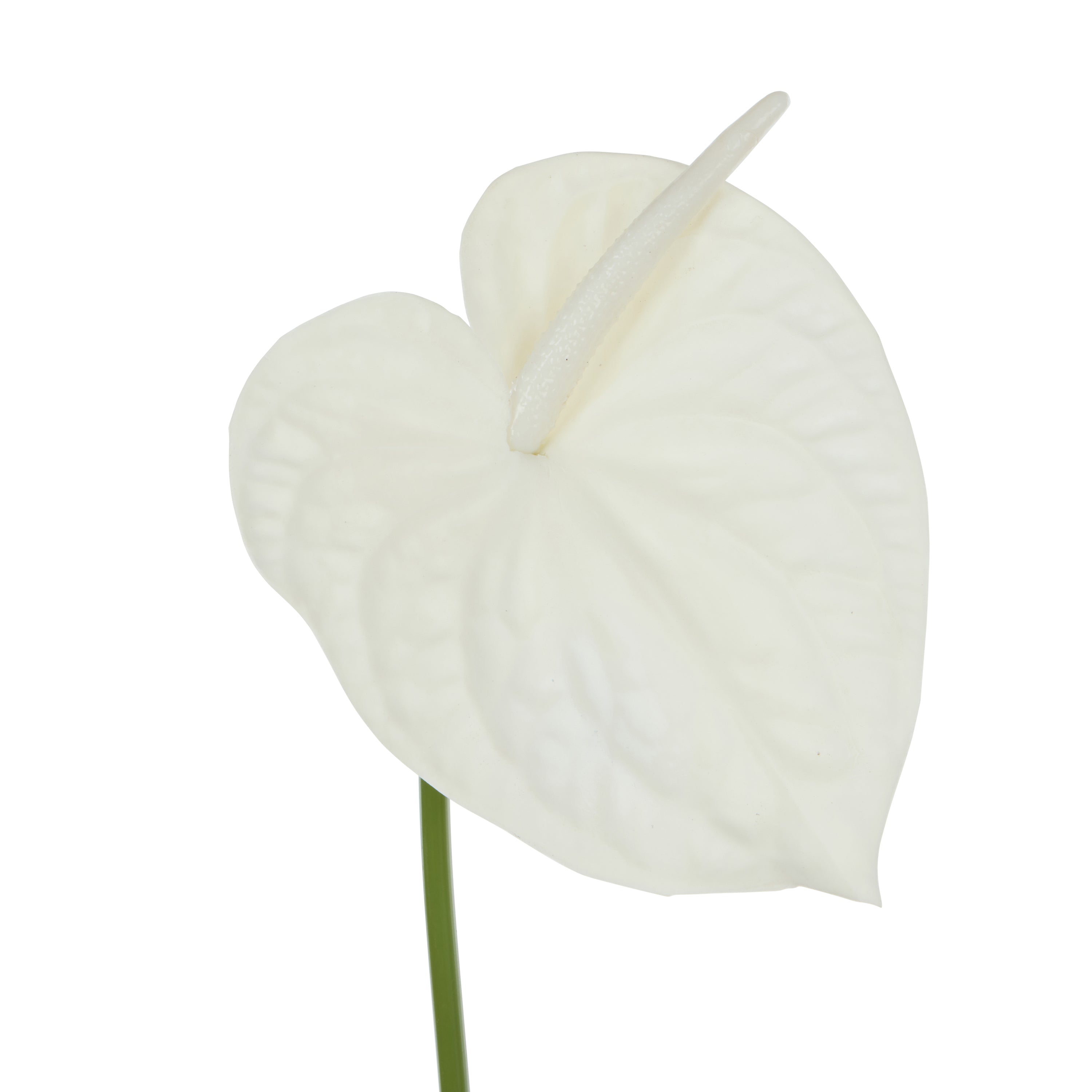 The Anthurium Stem in white adds a vibrant touch to any space with its lifelike white leaves and sturdy green stem. Ideal for brightening floral arrangements or as a standalone accent, it brings fresh elegance to your home decor.