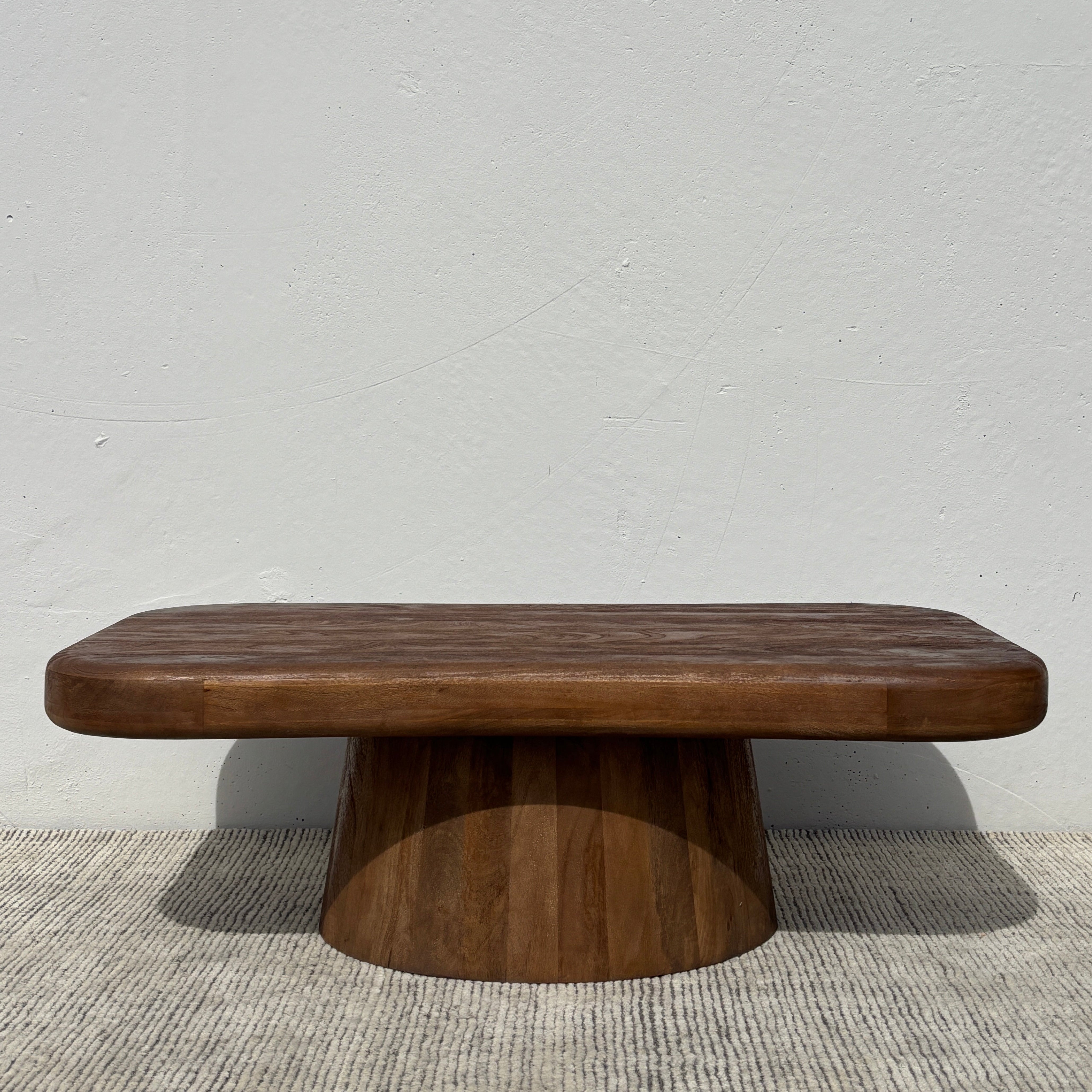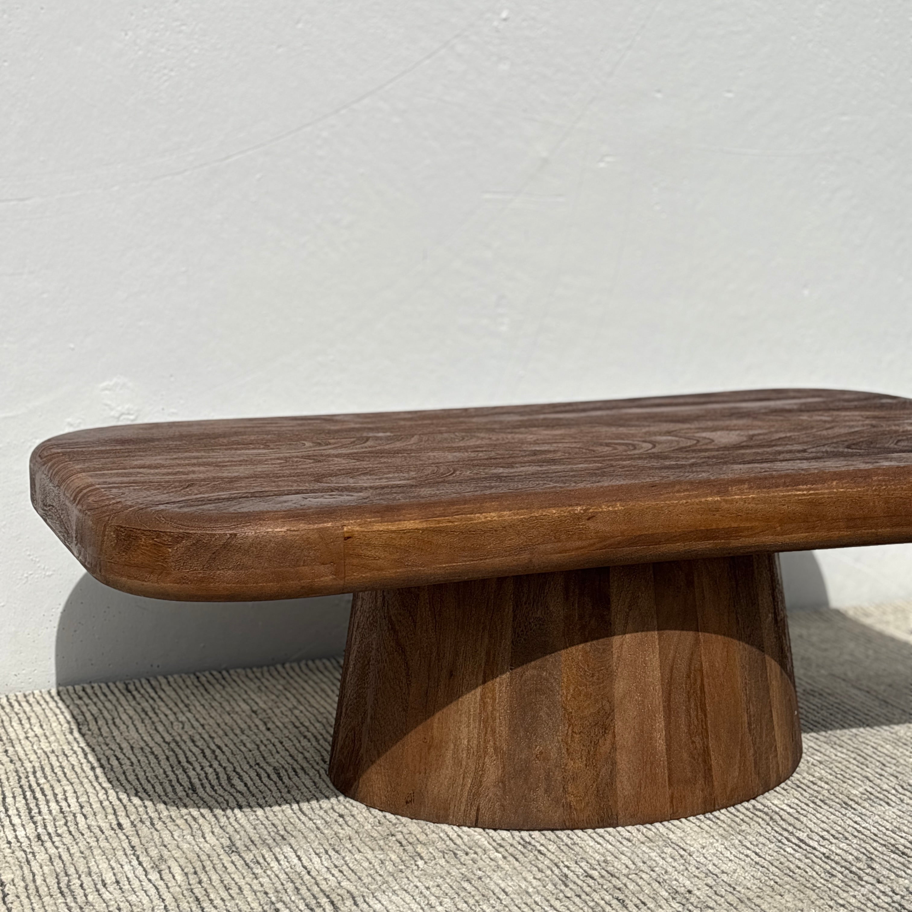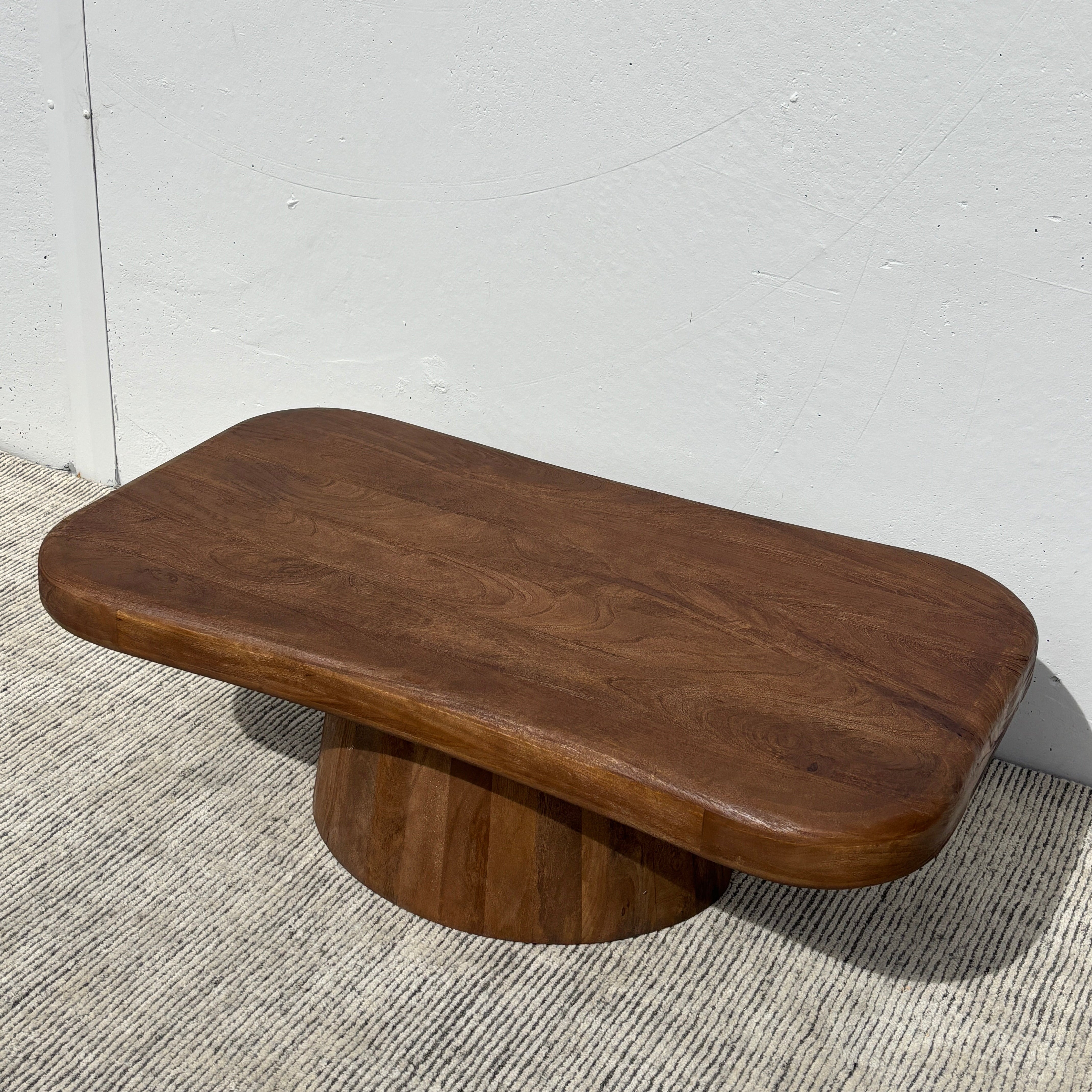 Meet the Biba Coffee Table – pairing fluid organic design with wooden warmth. This unique coffee table style features a rounded irregular tabletop form set on an tapered pedestal base, crafted in acacia wood and finished in a rich walnut brown. Exuding chic contemporary style, the Biba is a stunning centerpiece for any living space.