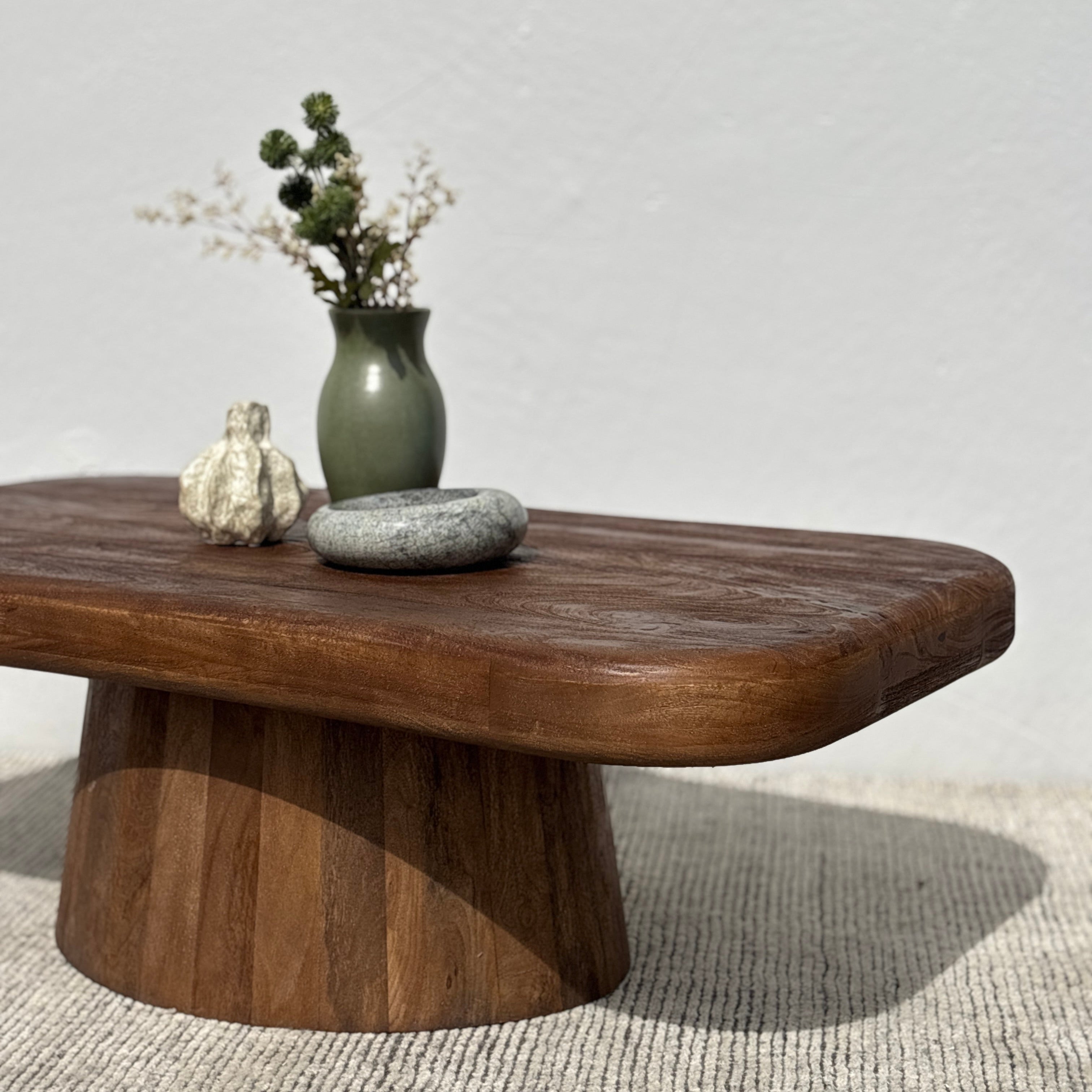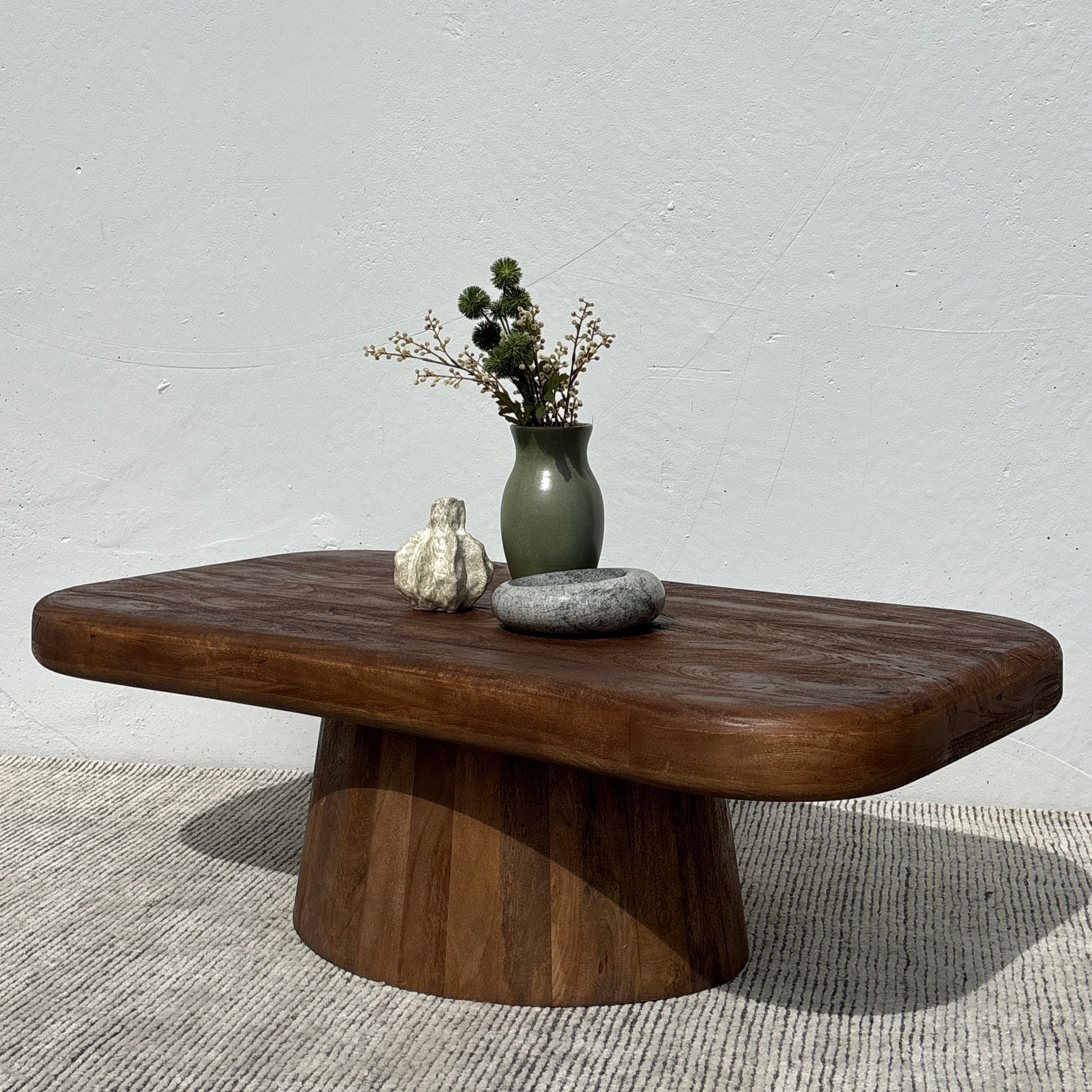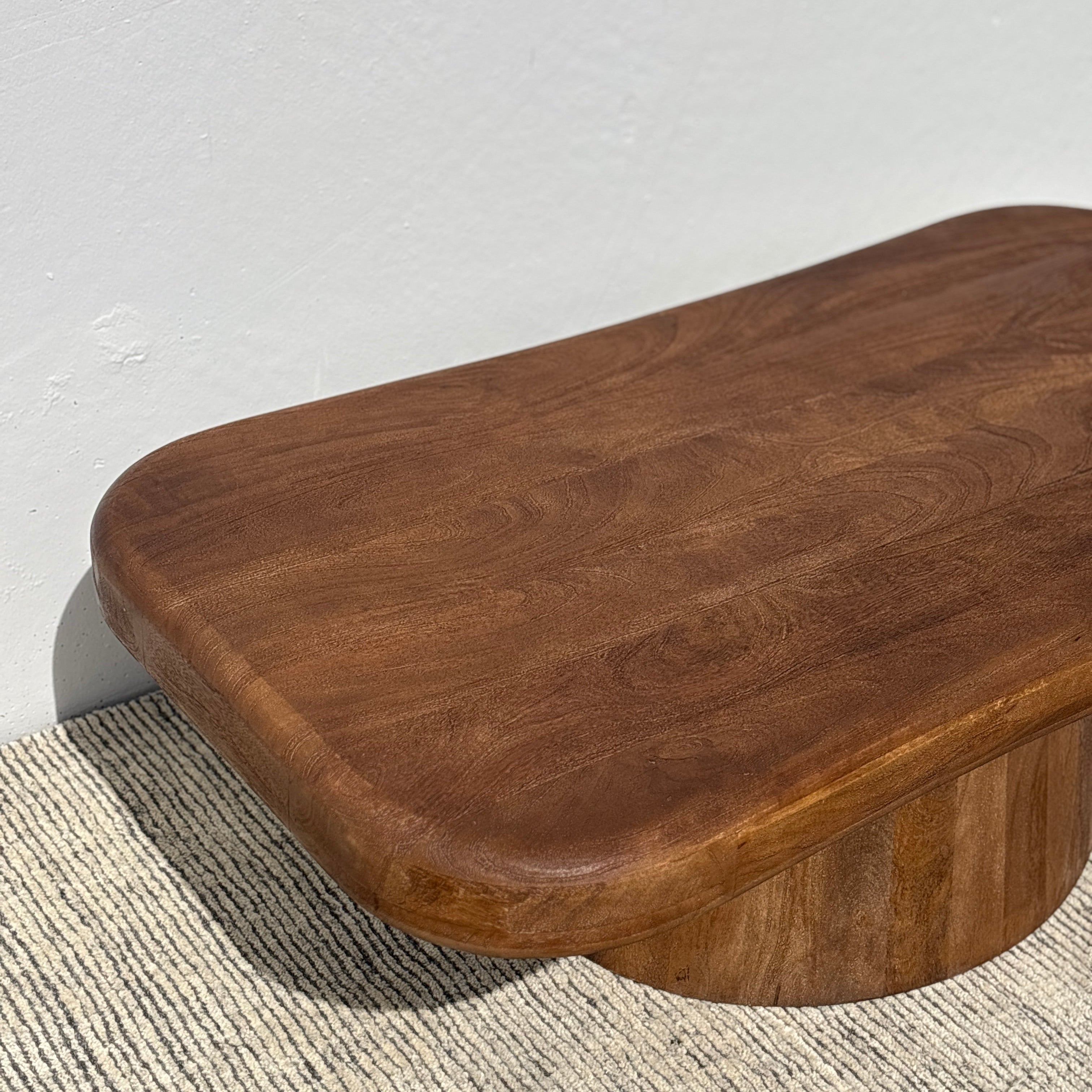 Meet the Biba Coffee Table – pairing fluid organic design with wooden warmth. This unique coffee table style features a rounded irregular tabletop form set on an tapered pedestal base, crafted in acacia wood and finished in a rich walnut brown. Exuding chic contemporary style, the Biba is a stunning centerpiece for any living space.