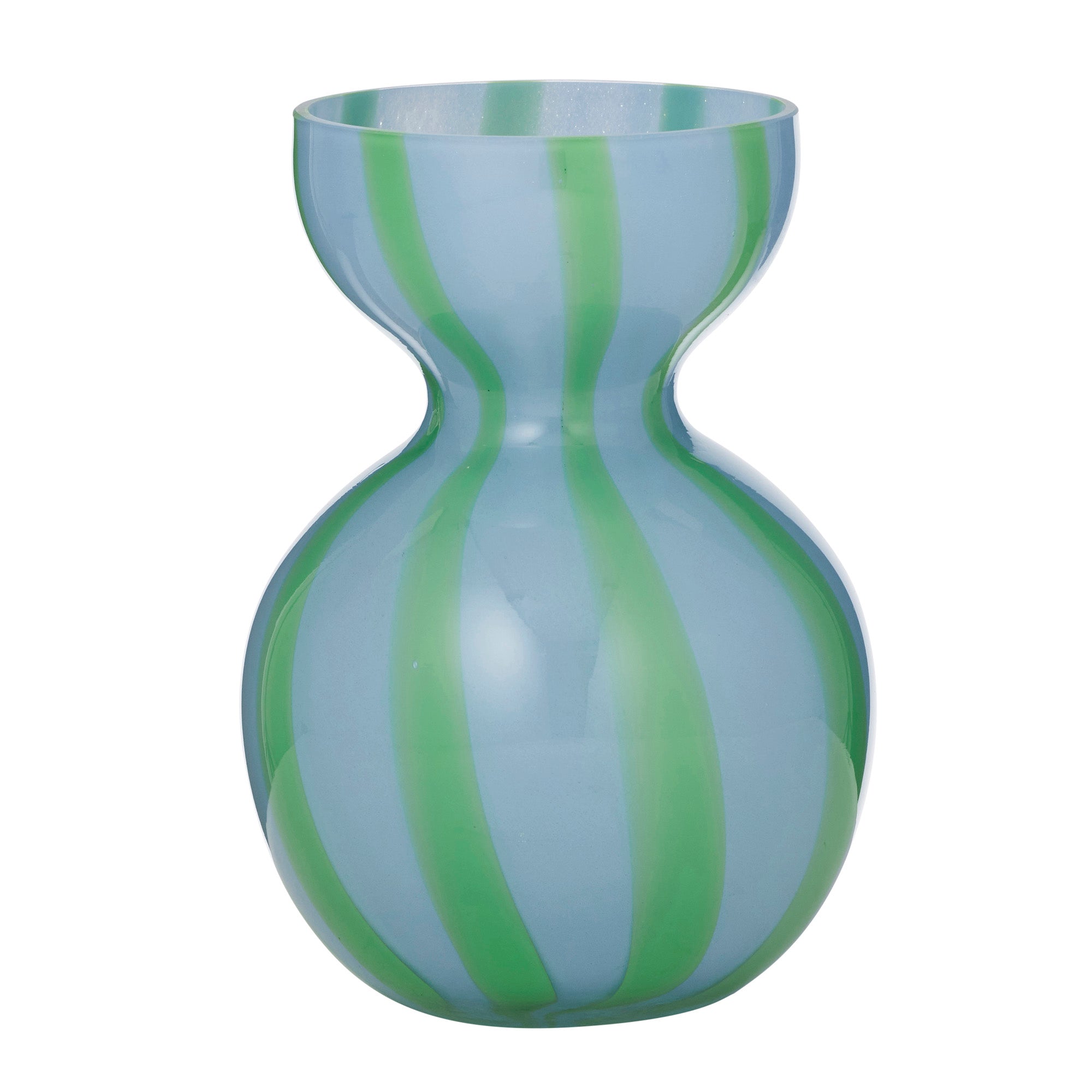 Introducing the Bobbi Glass Vase in Sky and Emerald. The Bobbi Glass Vase range brings playful style to any room with its charming colour-block design. The distinctive contrasting stripe adds visual interest, and a fun finishing touch.