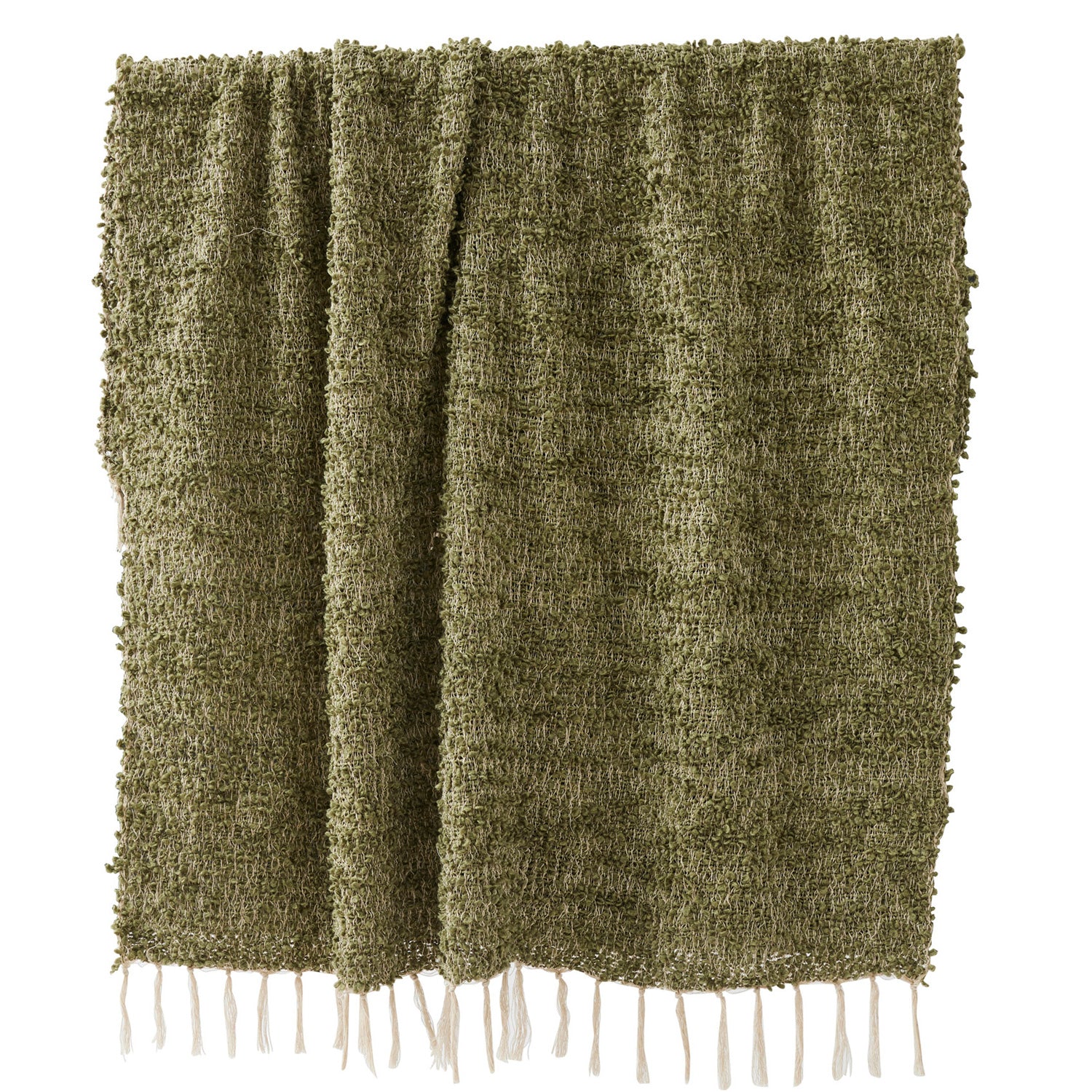 Indulge in luxury with the Burbujeo Throw. Made from a soft cotton-blend, this chic throw adds a touch of sophistication to any room. Its olive colour makes it a versatile accessory, perfect for snuggling up in style or adding a pop of colour to your decor.