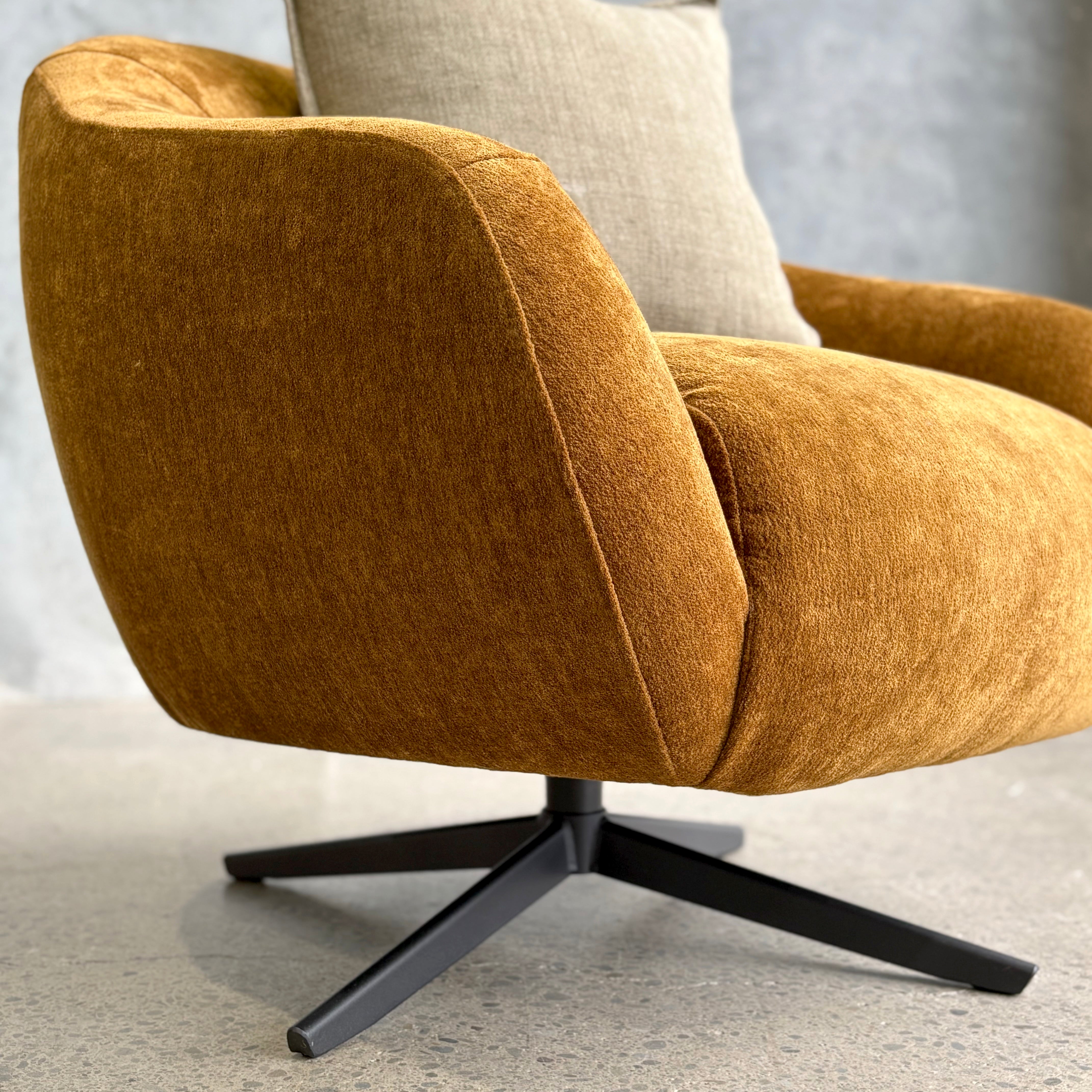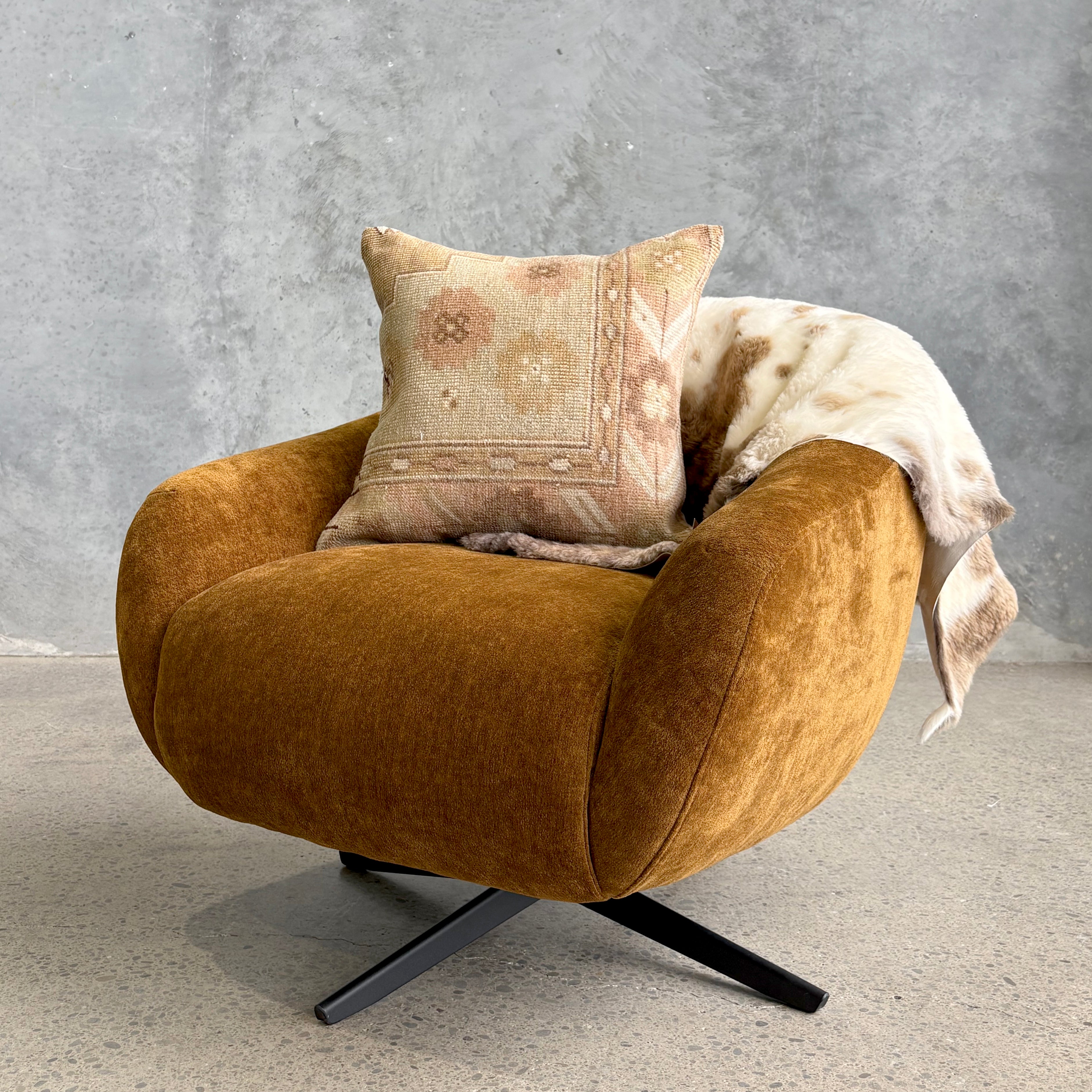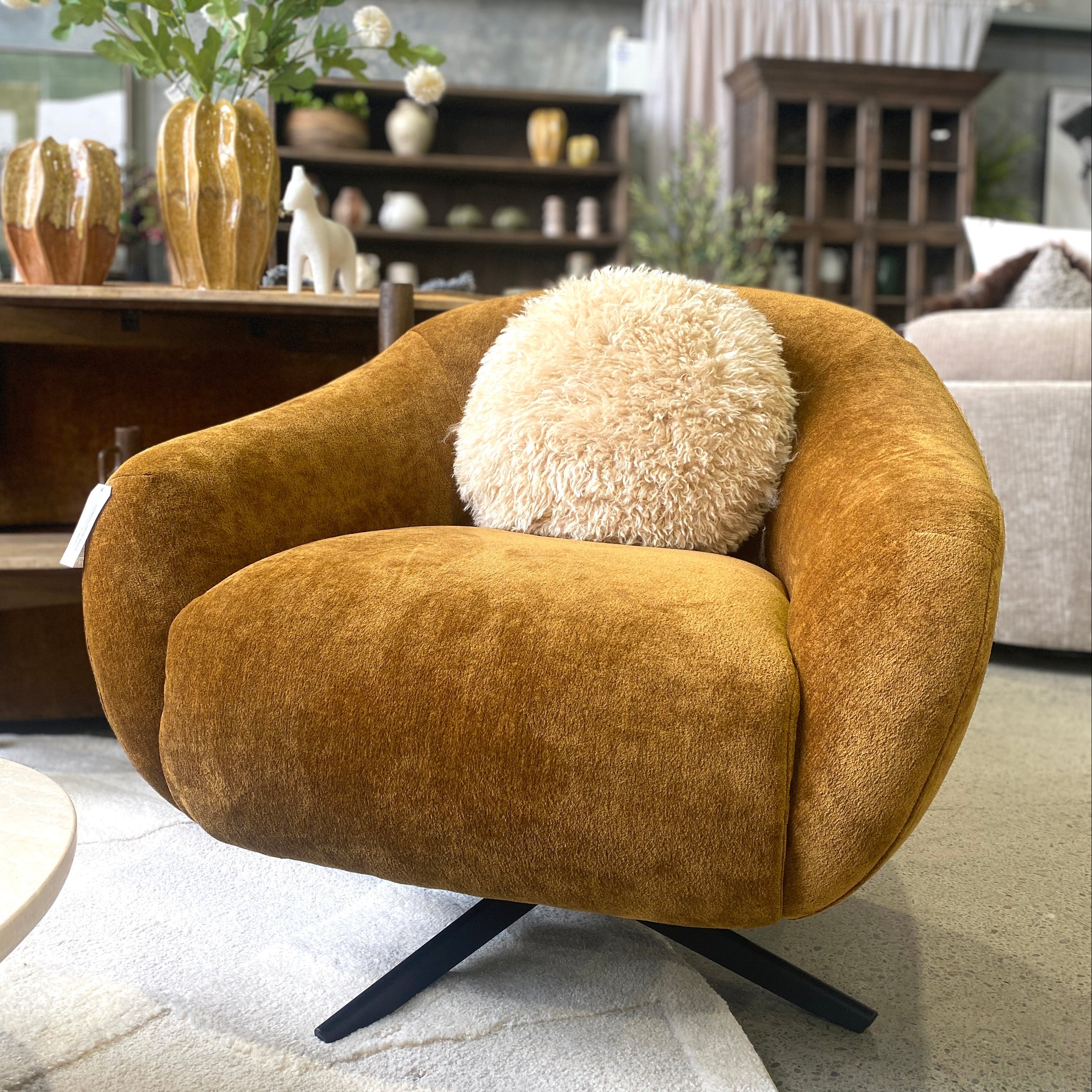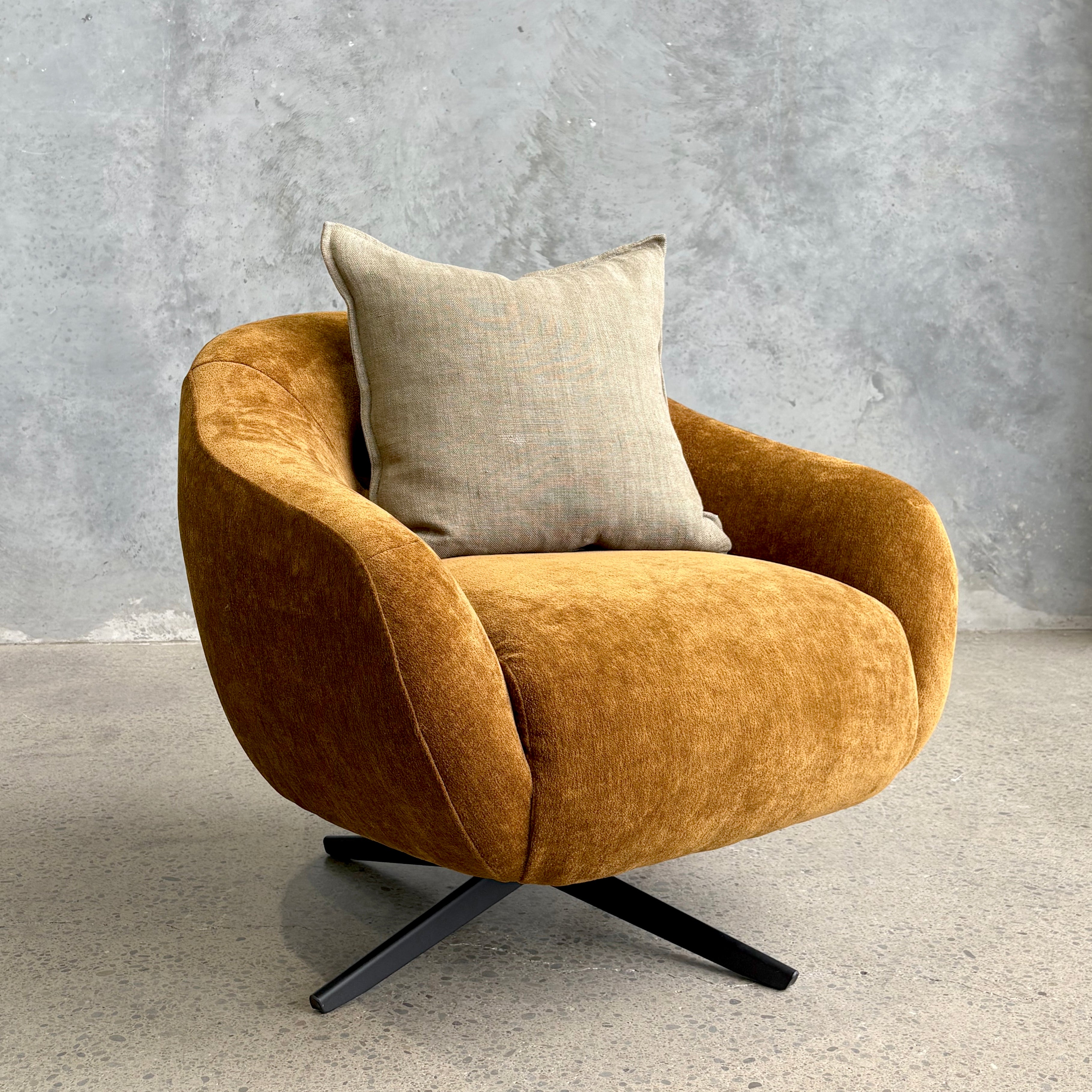 Serving you mid-century curves, our Camille Swivel Chair is both comfortable and gorgeous – upholstered in our gorgeous new Fennelseed velvet with a smooth yet subtly textured finish. With a retro-modern rounded shape and a contrasting steel leg base, the Camille adds instant style to any space, with the added fun and flexibility of swivel functionality!
