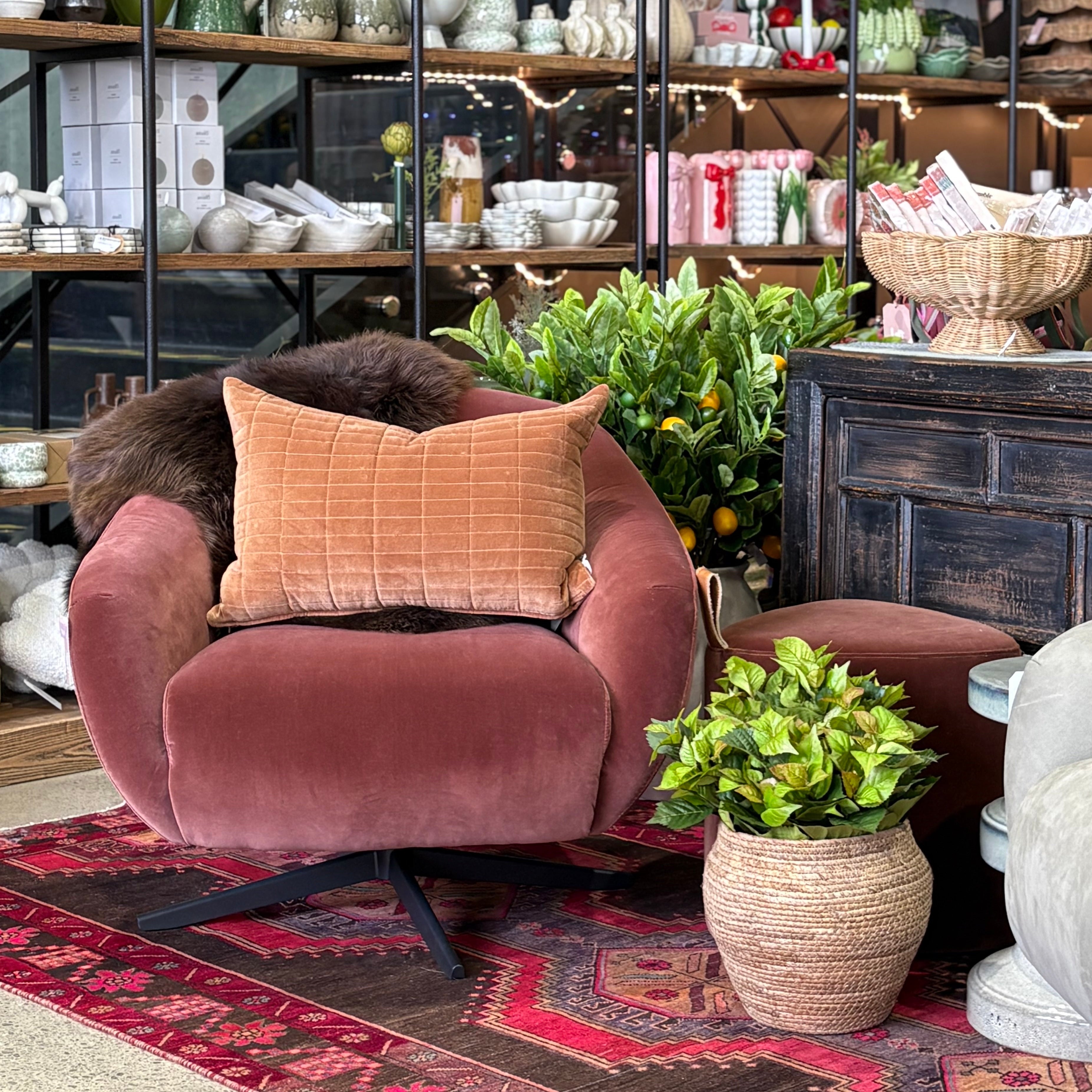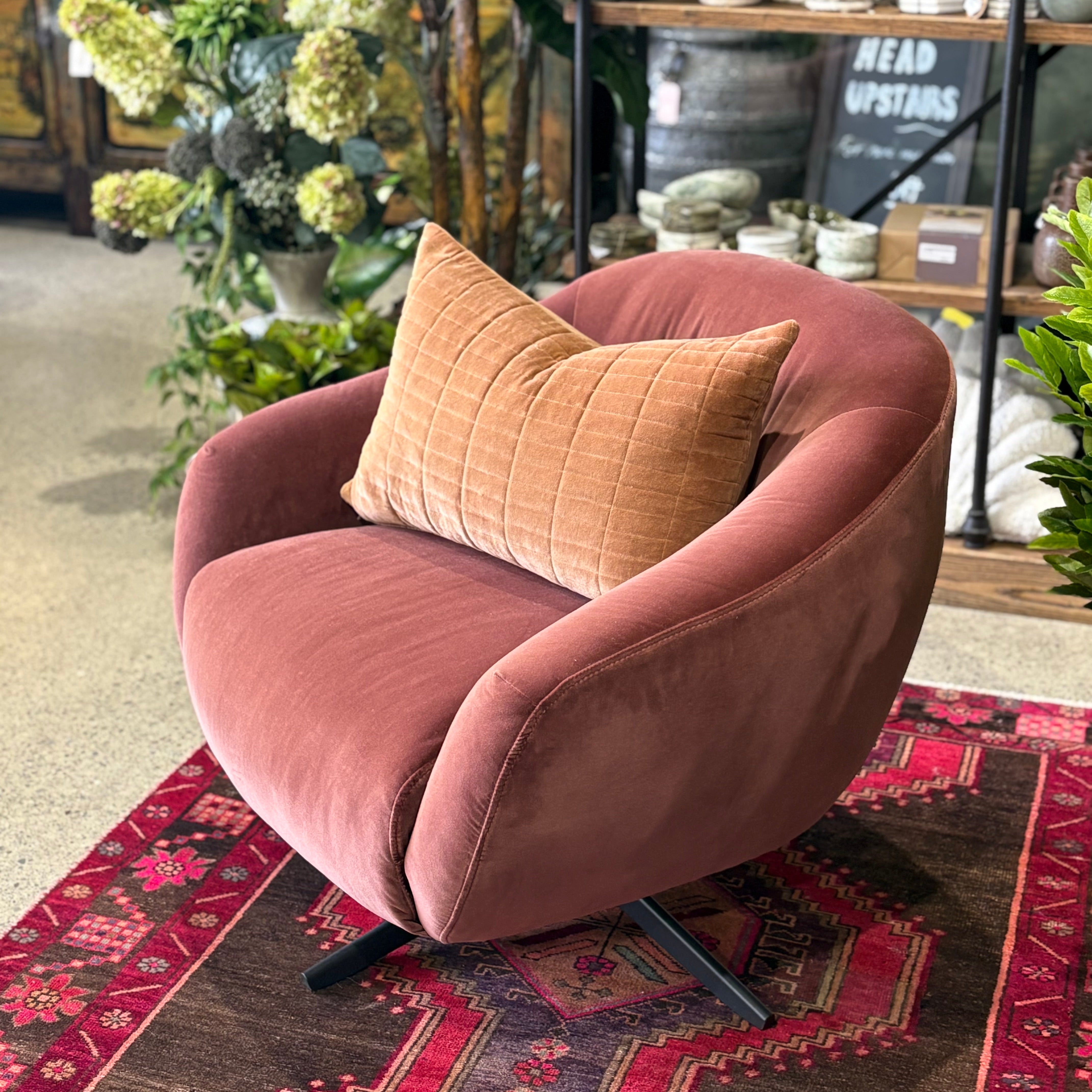 Camille Swivel Chair - Rosewood Velvet
