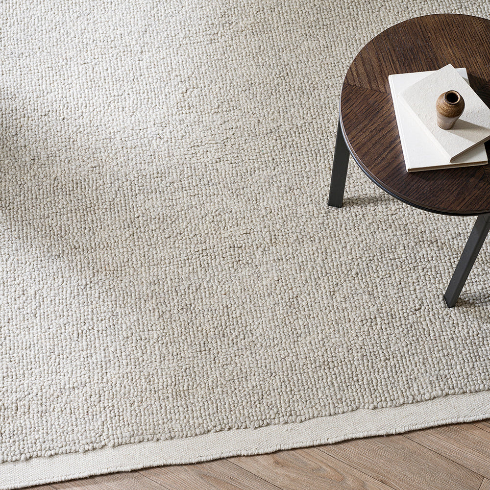Create a casual yet refined look with the softly looped pile of the Clifton rug. Handcrafted from 100% New Zealand wool, the uniform texture and flat edge finish offers a subtle sense of structure, while its neutral, bone palette adds warmth and understated elegance to interiors.