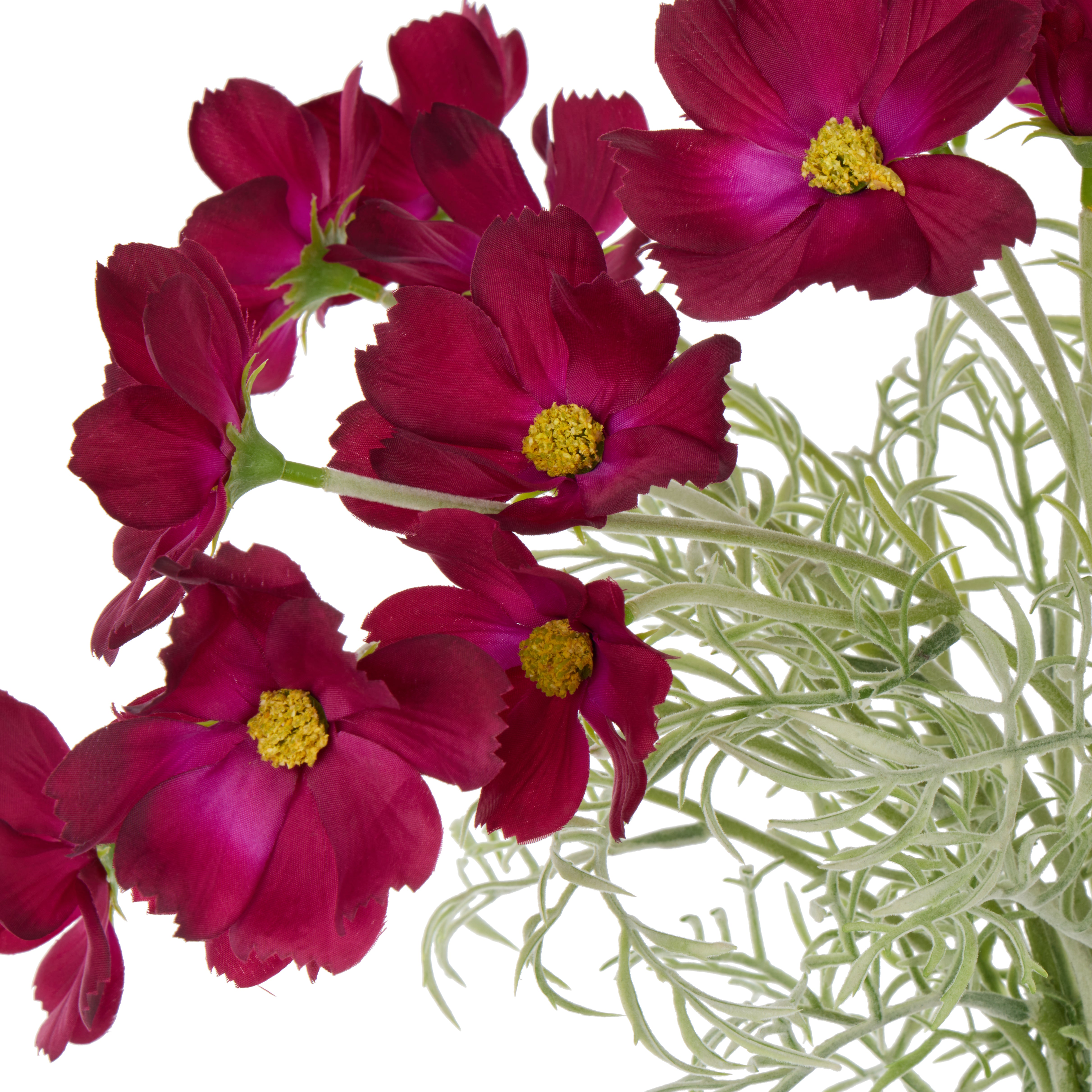Brighten your space with the Cosmos Bunch in rich burgundy. Featuring lifelike cosmos flowers with delicate fern-like leaves and slender stems, this Melbourne designed & made arrangement adds a charming, natural touch.