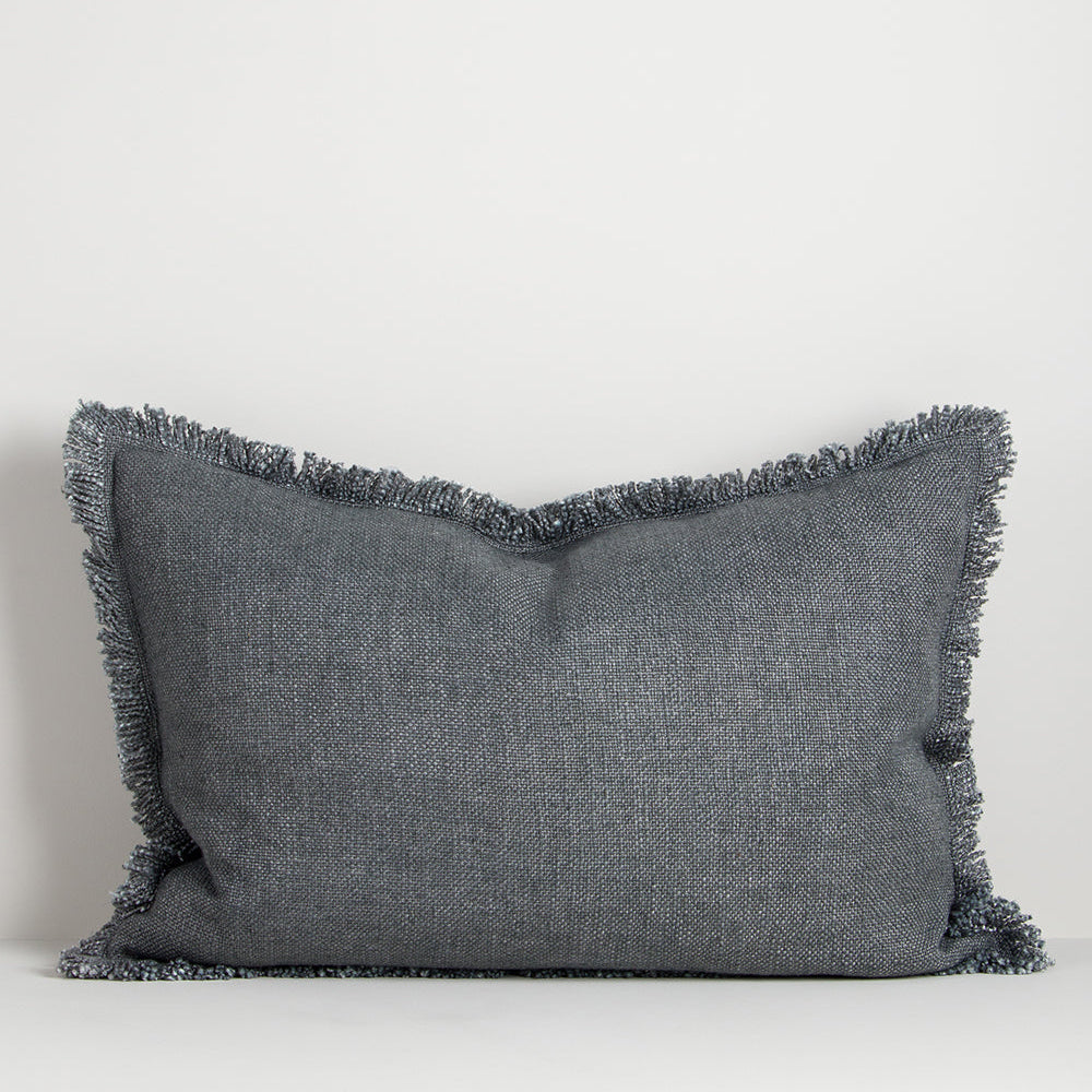 Understated yet full of character, the Dover cushion combines thick yarns, a pared-back weave and softly fringed edges for a relaxed, textural aesthetic. Perfect for layering, the muted slate tone bring a sense of calm, sophistication, and depth to interior spaces.