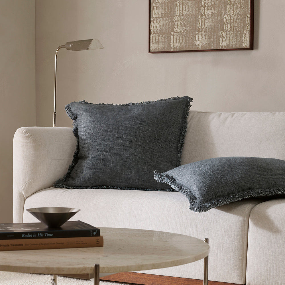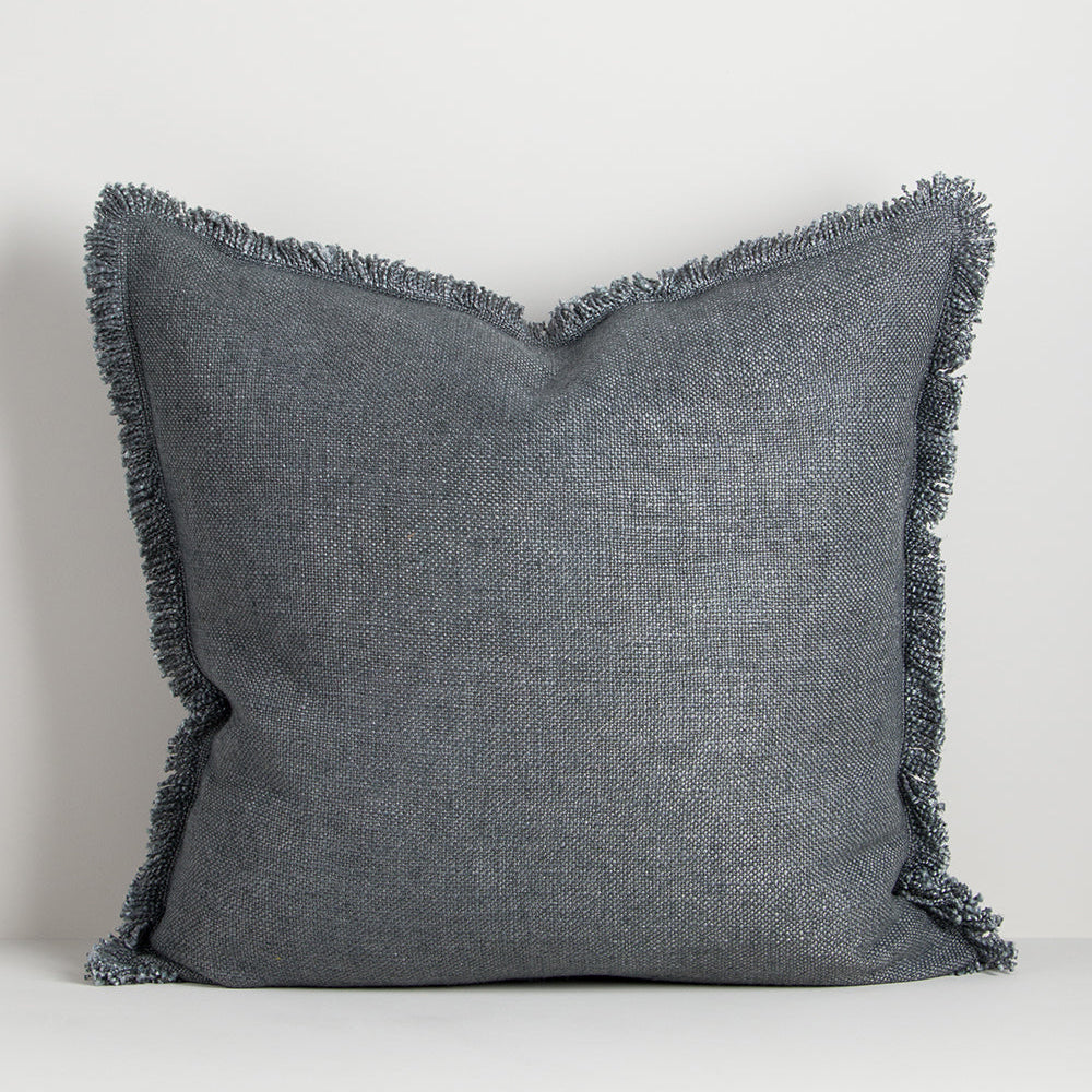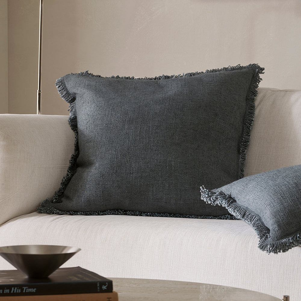 Understated yet full of character, the Dover cushion combines thick yarns, a pared-back weave and softly fringed edges for a relaxed, textural aesthetic. Perfect for layering, the muted slate tone bring a sense of calm, sophistication, and depth to interior spaces.