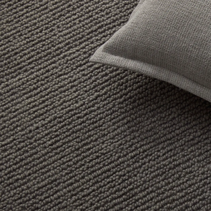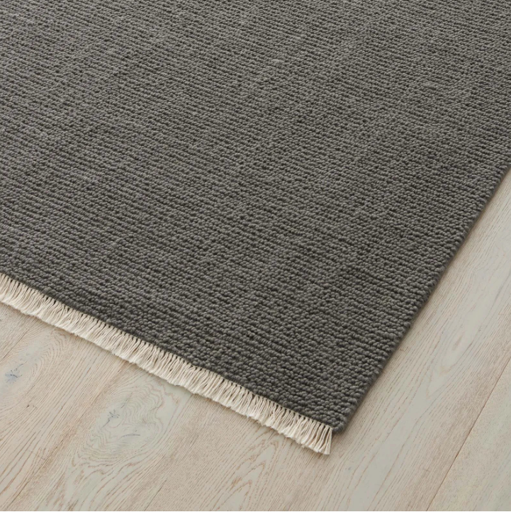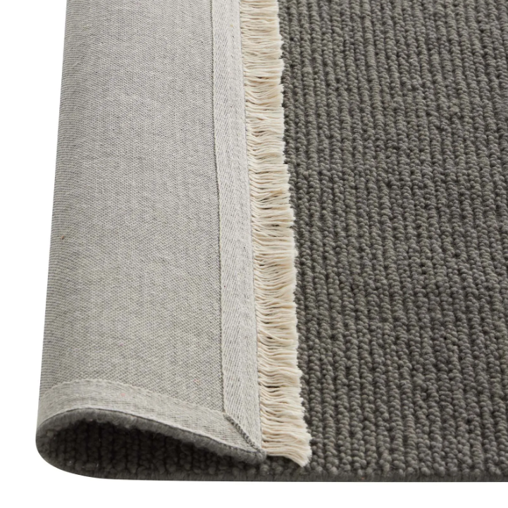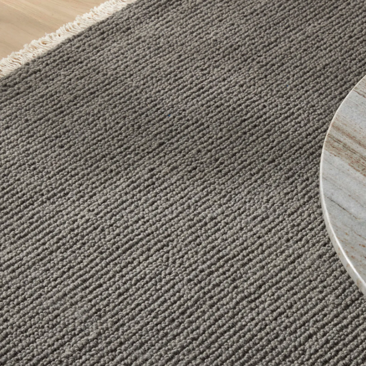 Fabien is a textural statement piece crafted from 100% wool with a distinctive chunky loop pile and bold ribbed weave. The low 1cm pile height maintains a refined silhouette while the high-and-low construction with felted yarns delivers a warm, weighty feel underfoot - tactile without excess plushness. Natural fringe detailing completes the design. In a medium grey tone with a cream fringe detail. Fabien brings visual depth and character to any interior.
