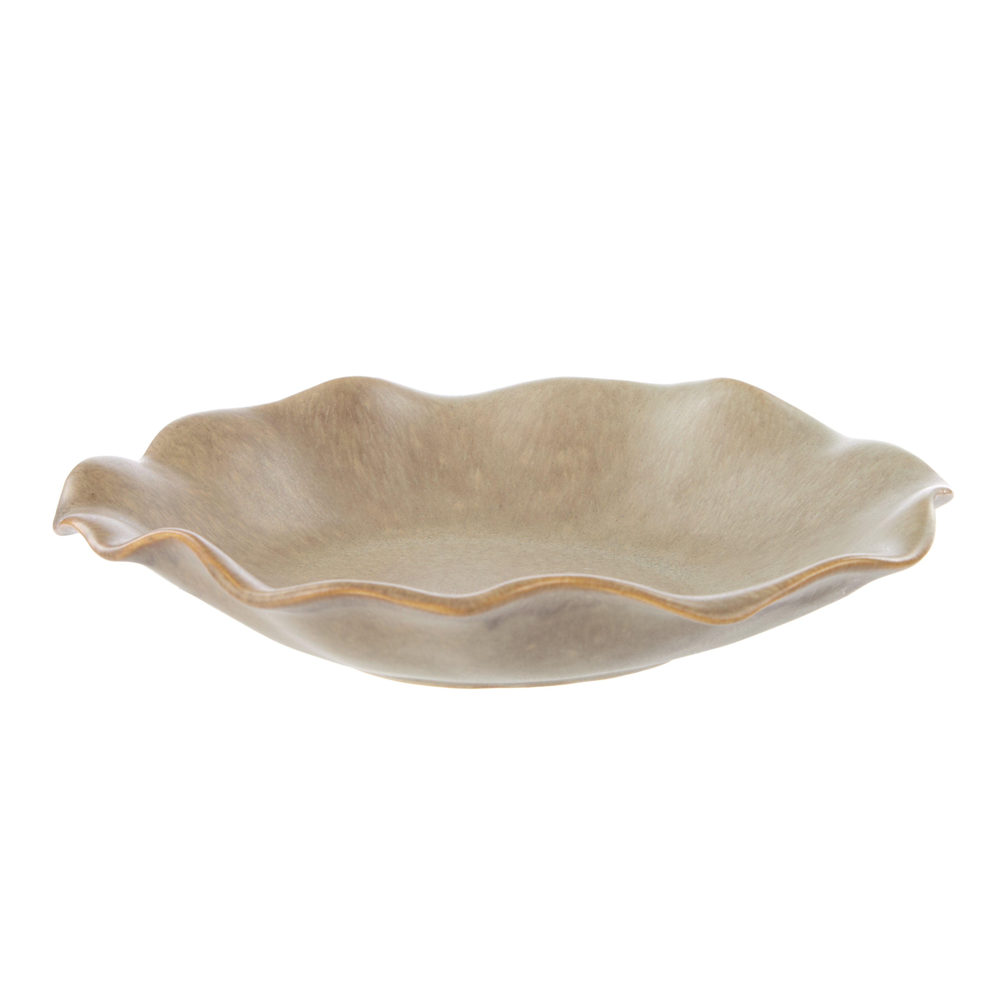 The Fluid Dish features a sleek stoneware design with a grey finish and an elegant wavy silhouette, adding a sophisticated touch to any tabletop, shelf, or window display.