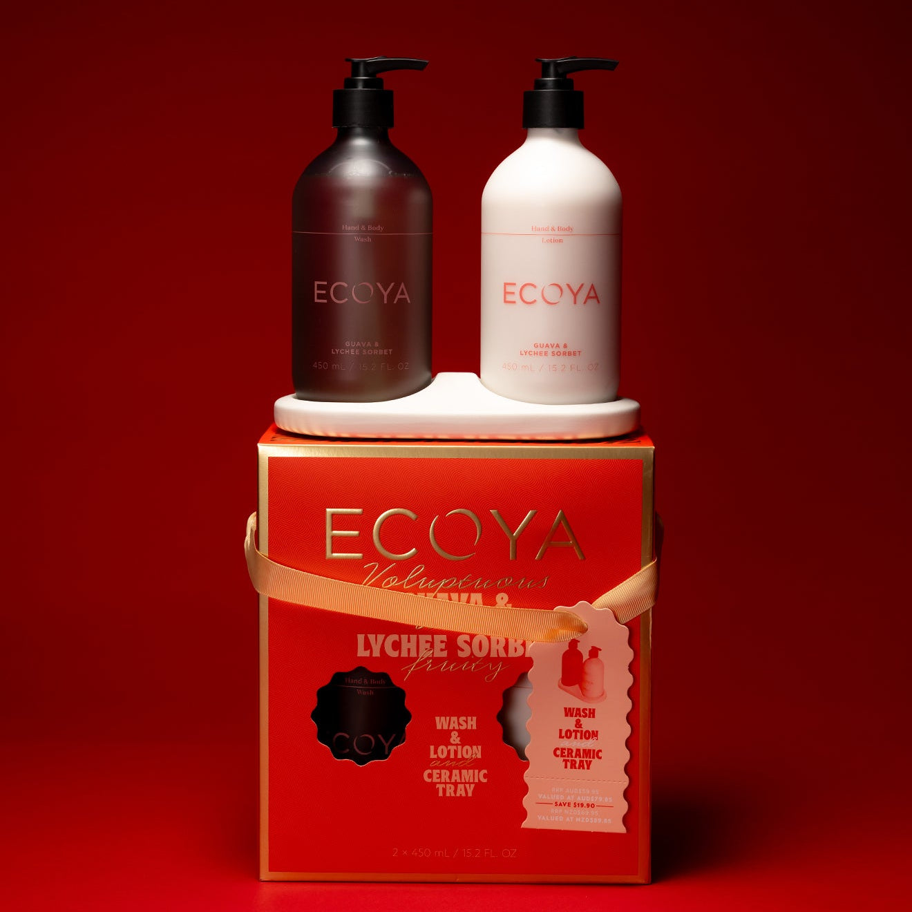 ECOYA Holiday Bathroom Gift Set - Guava + Lychee Sorbet