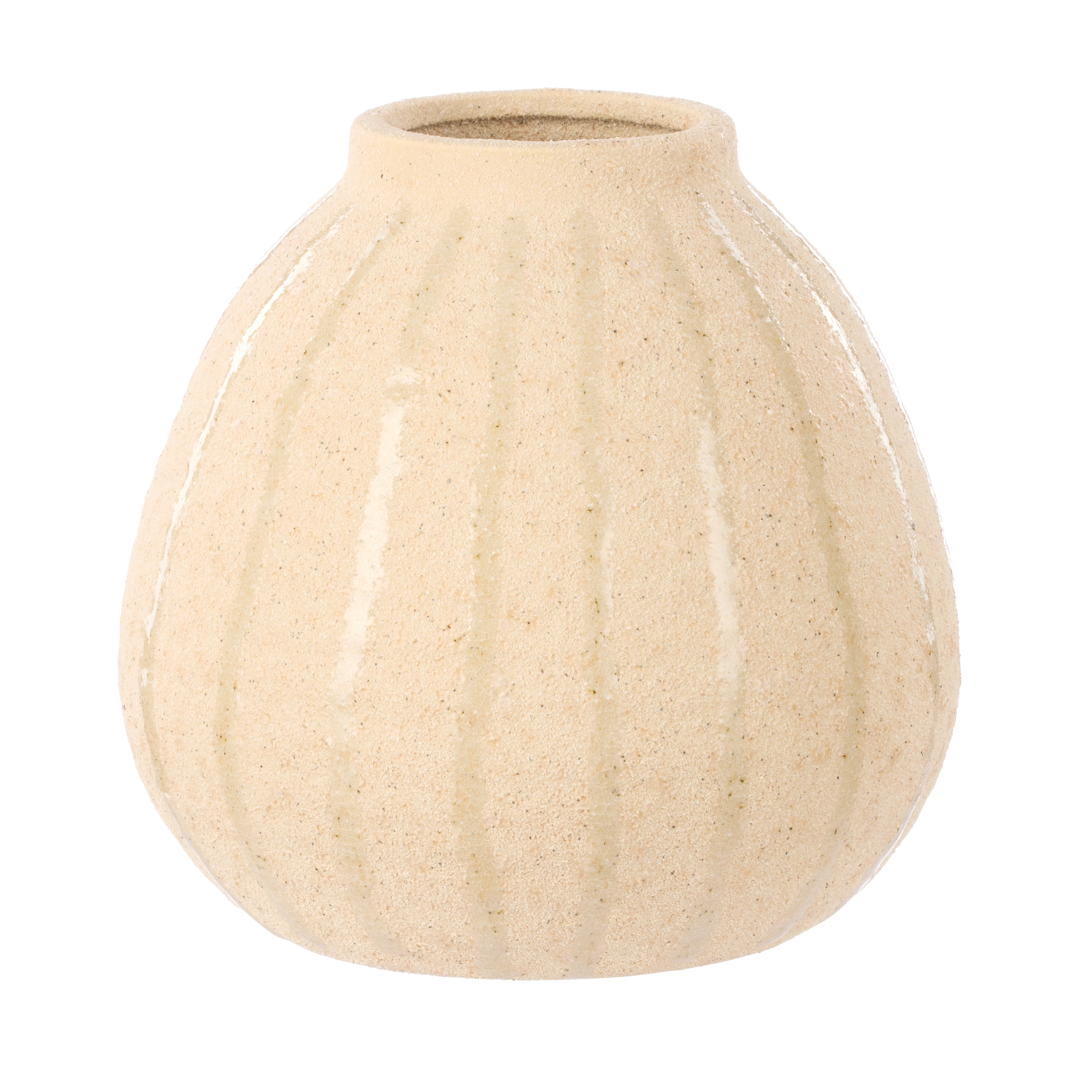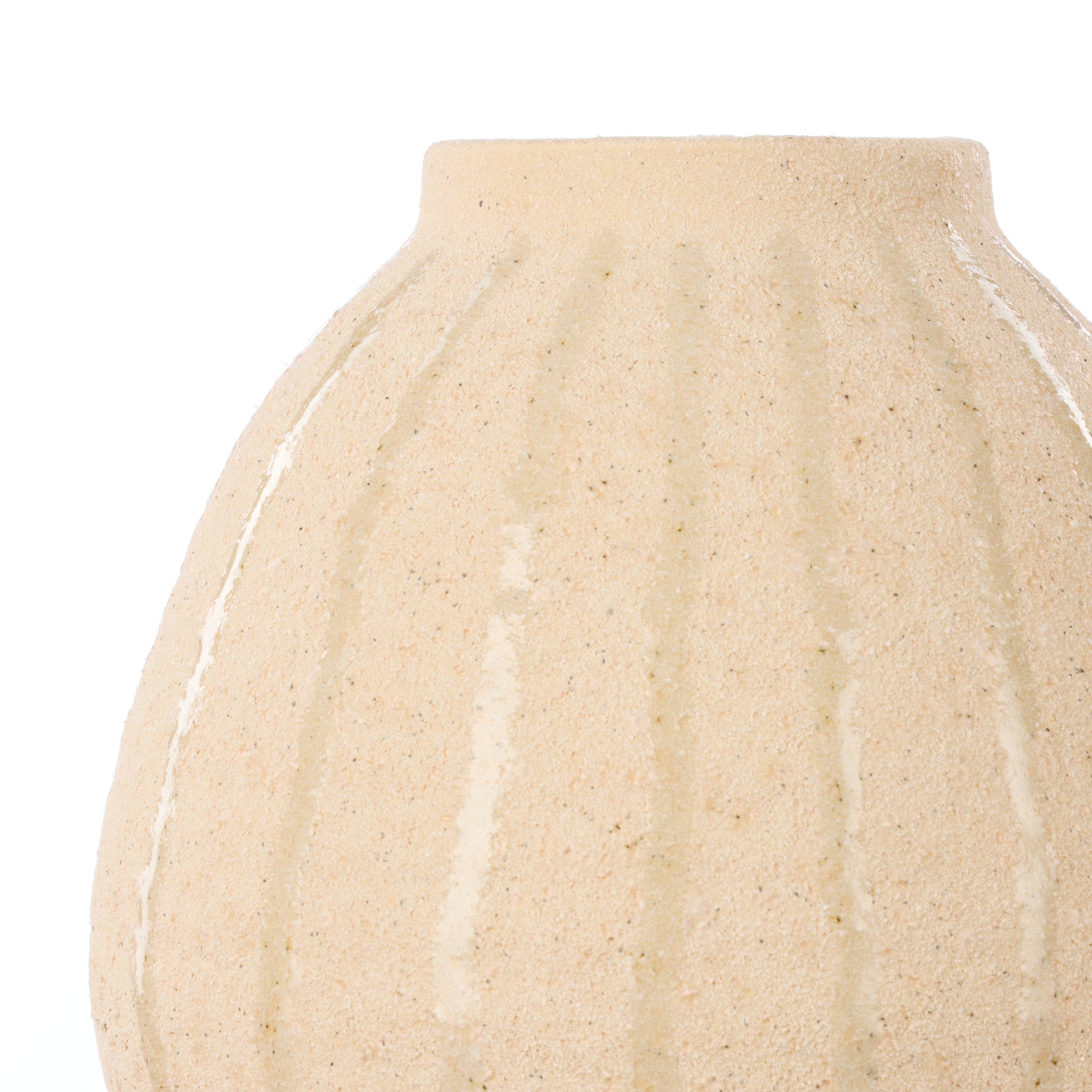 The Henry Vase features a striped white glaze and a tapered round shape, crafted from durable stoneware. Its coastal-inspired design adds a stylish touch to any tabletop, shelf, or window display. Ideal for showcasing fresh or faux flowers, this vase effortlessly enhances any room’s decor.