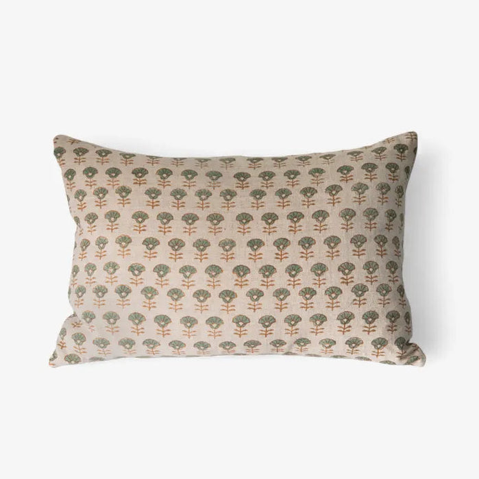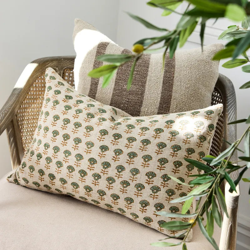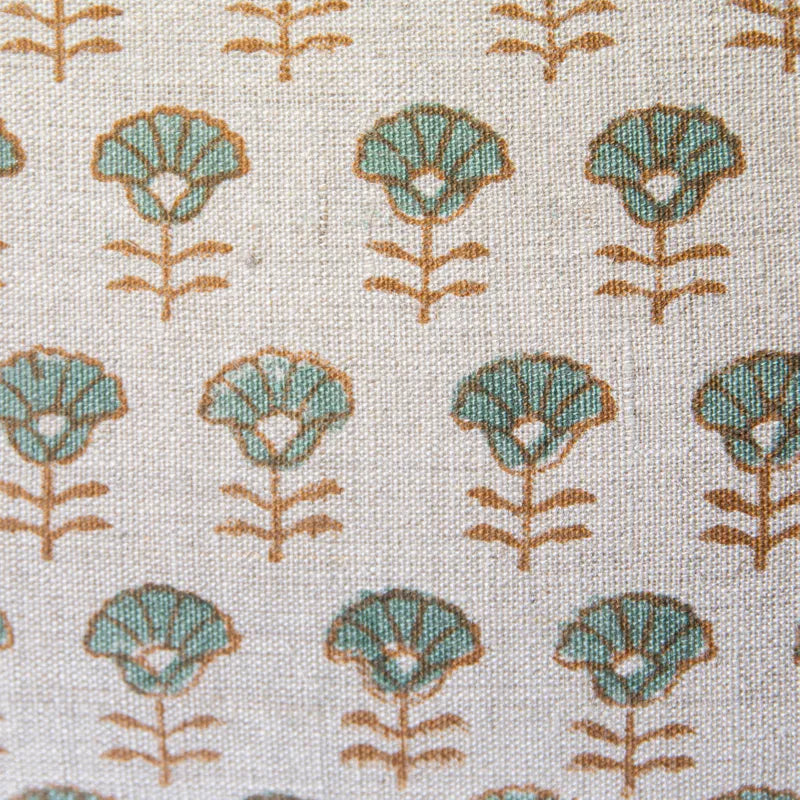 Crafted from natural linen and printed using a traditional Indian hand-blocking technique, this cushion is a quiet celebration of slow craft. Each floral motif is stamped by hand, giving subtle variation in tone and detail – no two are ever quite the same. Its soft, lived-in palette and delicate print bring a sense of calm and character to any space. Perfect for layering on sofas, beds or armchairs – especially for customers drawn to artisanal texture and timeless, feminine design.