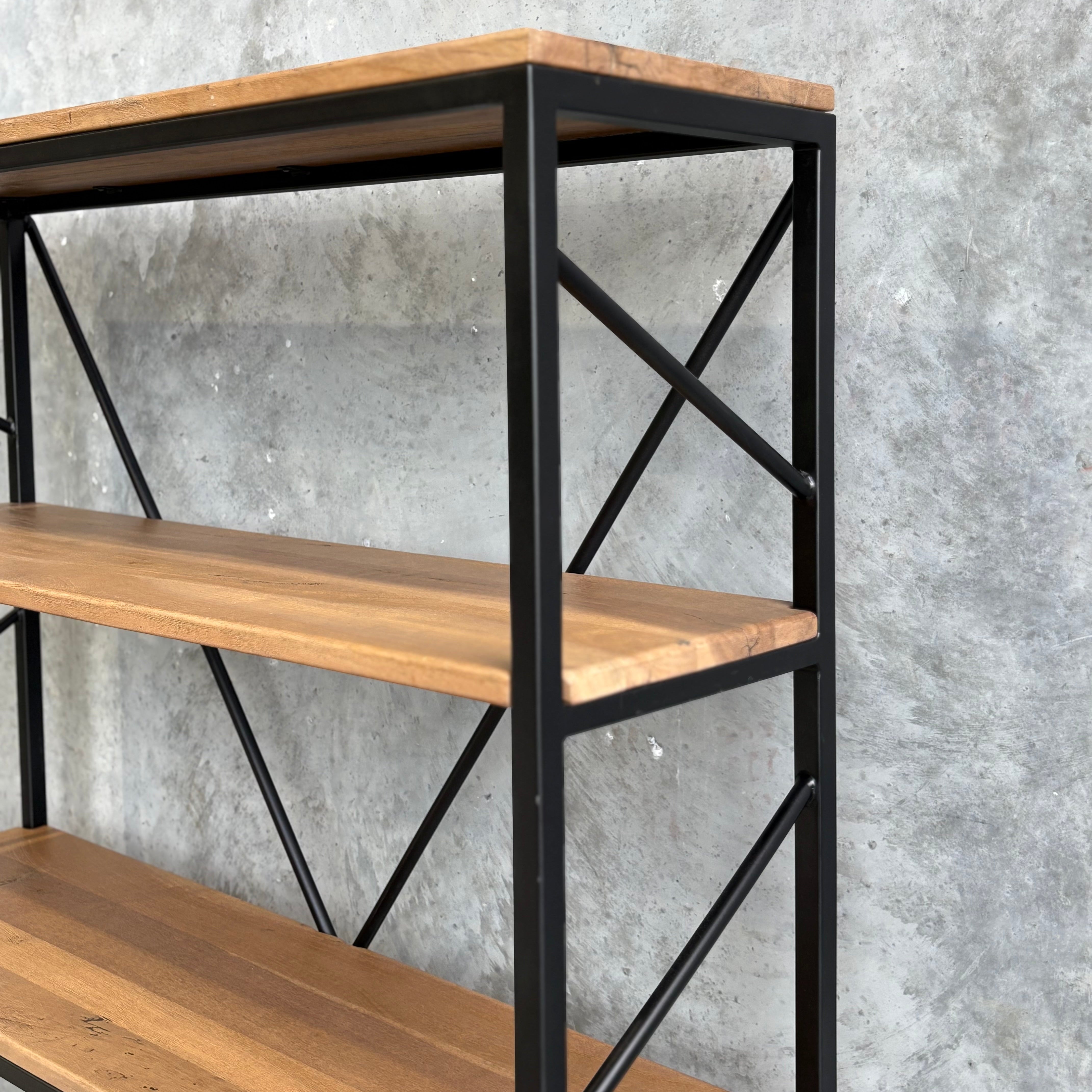 Our Jade Shelving combines industrial strength with rustic character. Built on robust steel frames, each unit features solid Neem wood panels that showcase the subtle wood grain and natural beauty. No two shelves are identical, giving your space genuine rustic charm with reliable durability.
