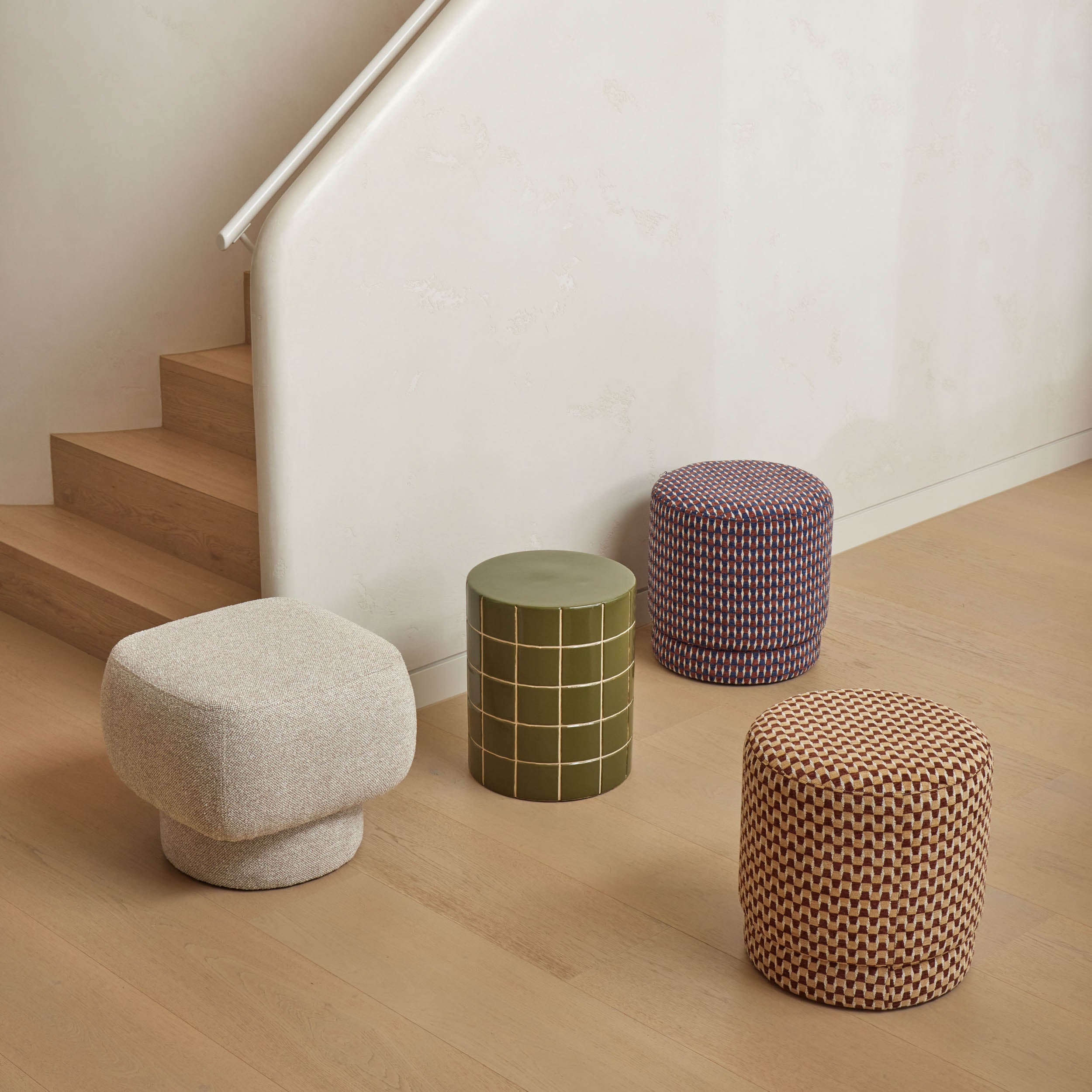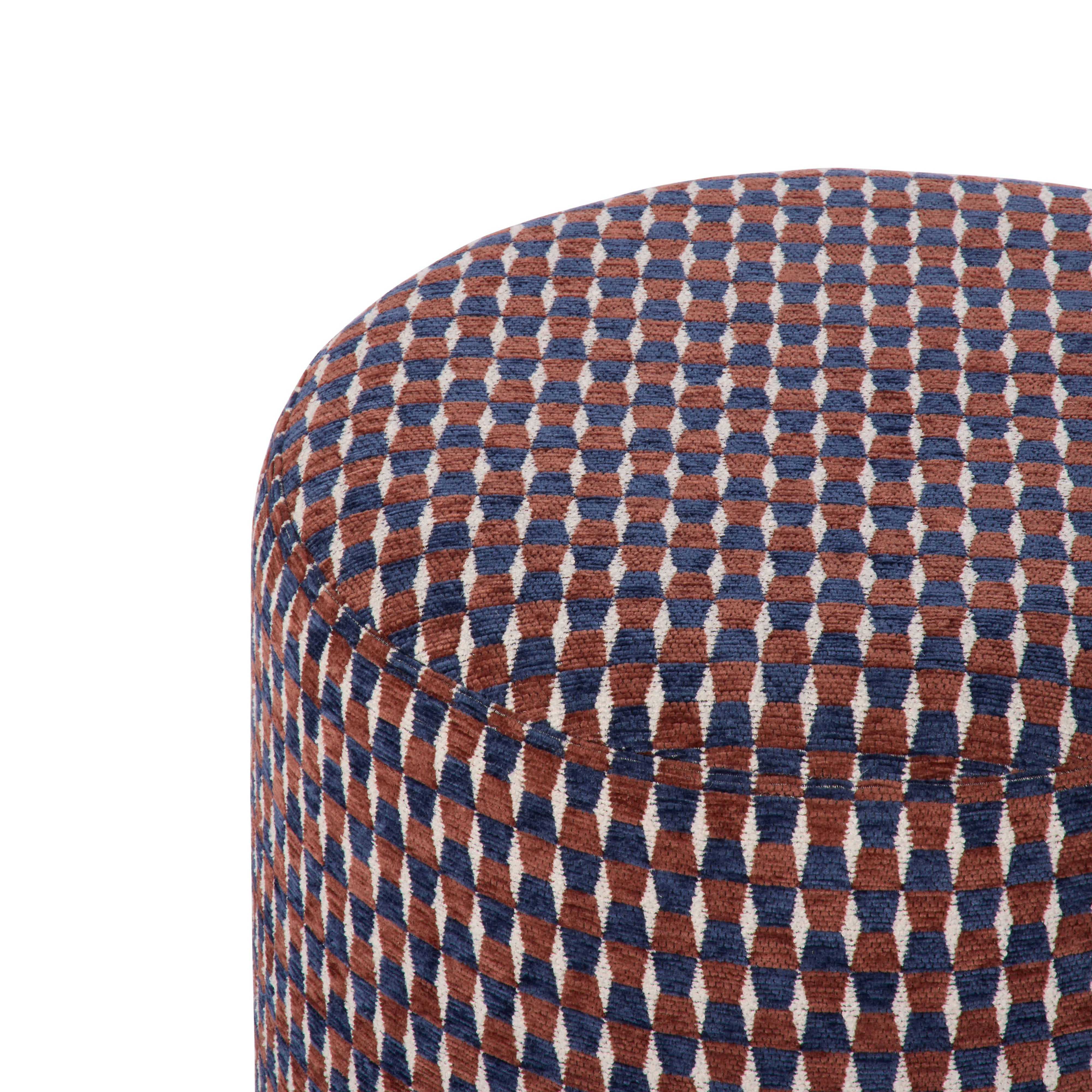 It's impossible not to feel cosy with the Kiran Stool. Intricately designed with an all-over geometric pattern, it brings a vintage feel to any collection. The round silhouette softens the look, while the colourful palette brings a statement feel.