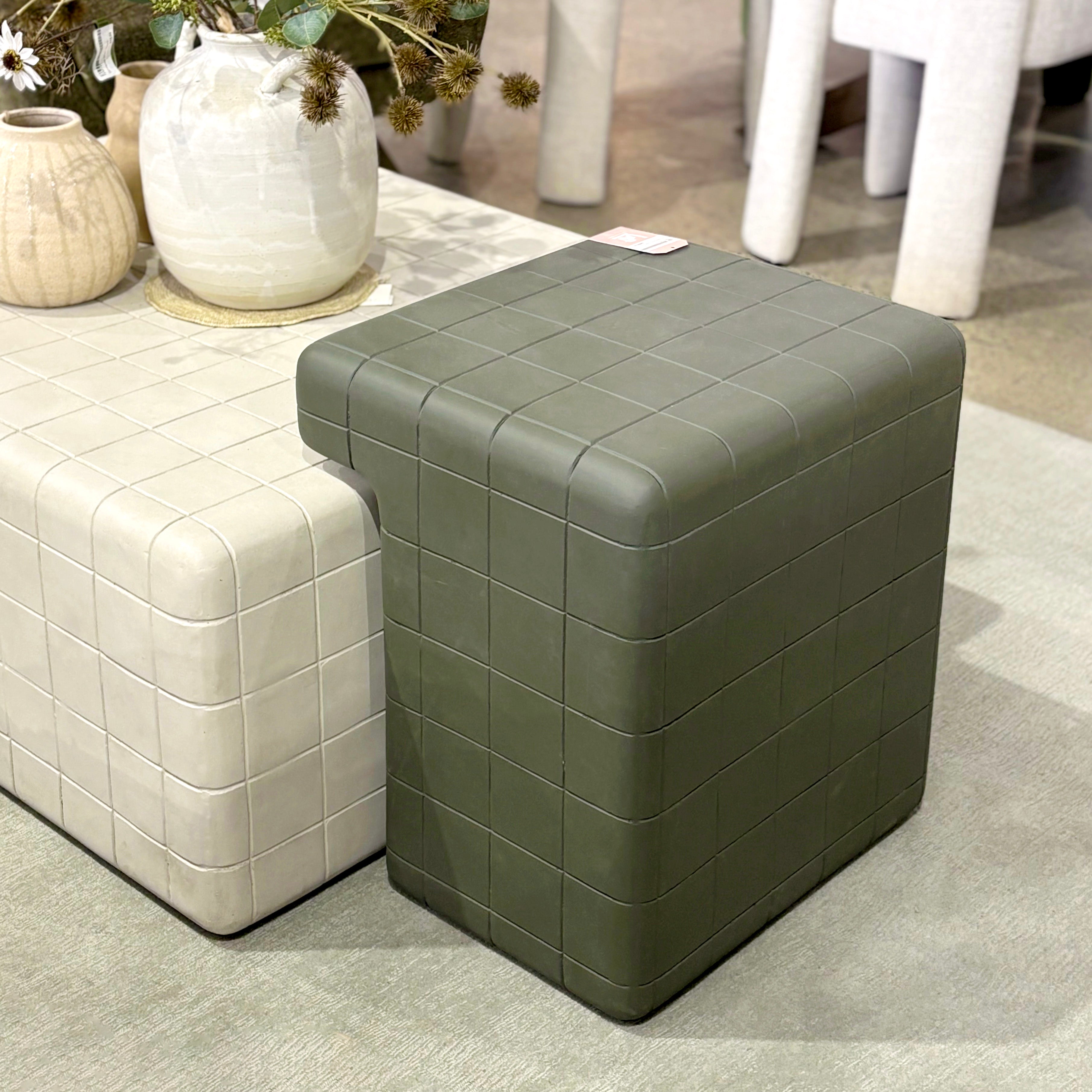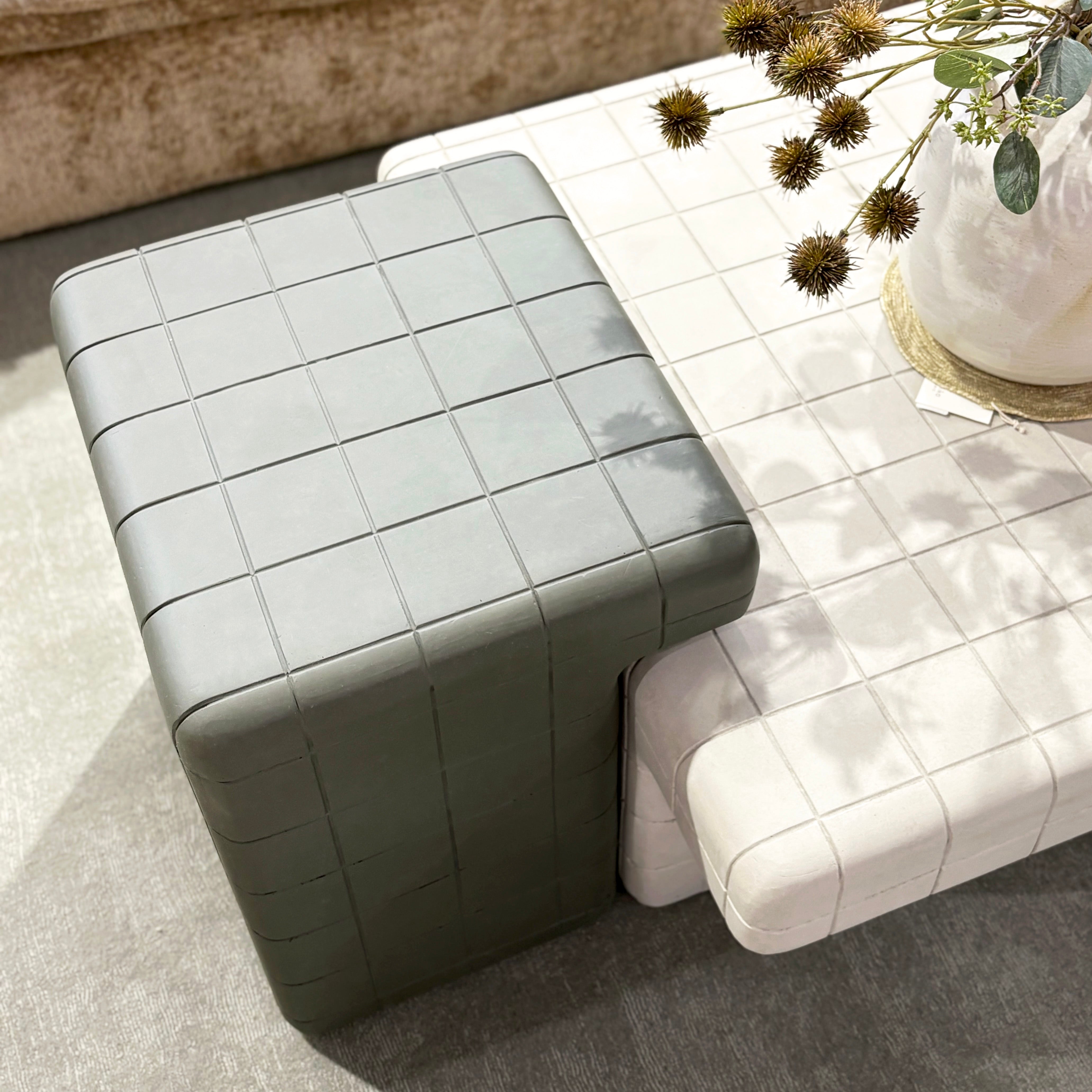 Elevate your living space with the Koen Side Table, featuring a bold industrial design and an all-over tile effect. Its oversized, asymmetrical shape adds a modern, playful touch, making it a standout piece that instantly enhances any room with chic style.