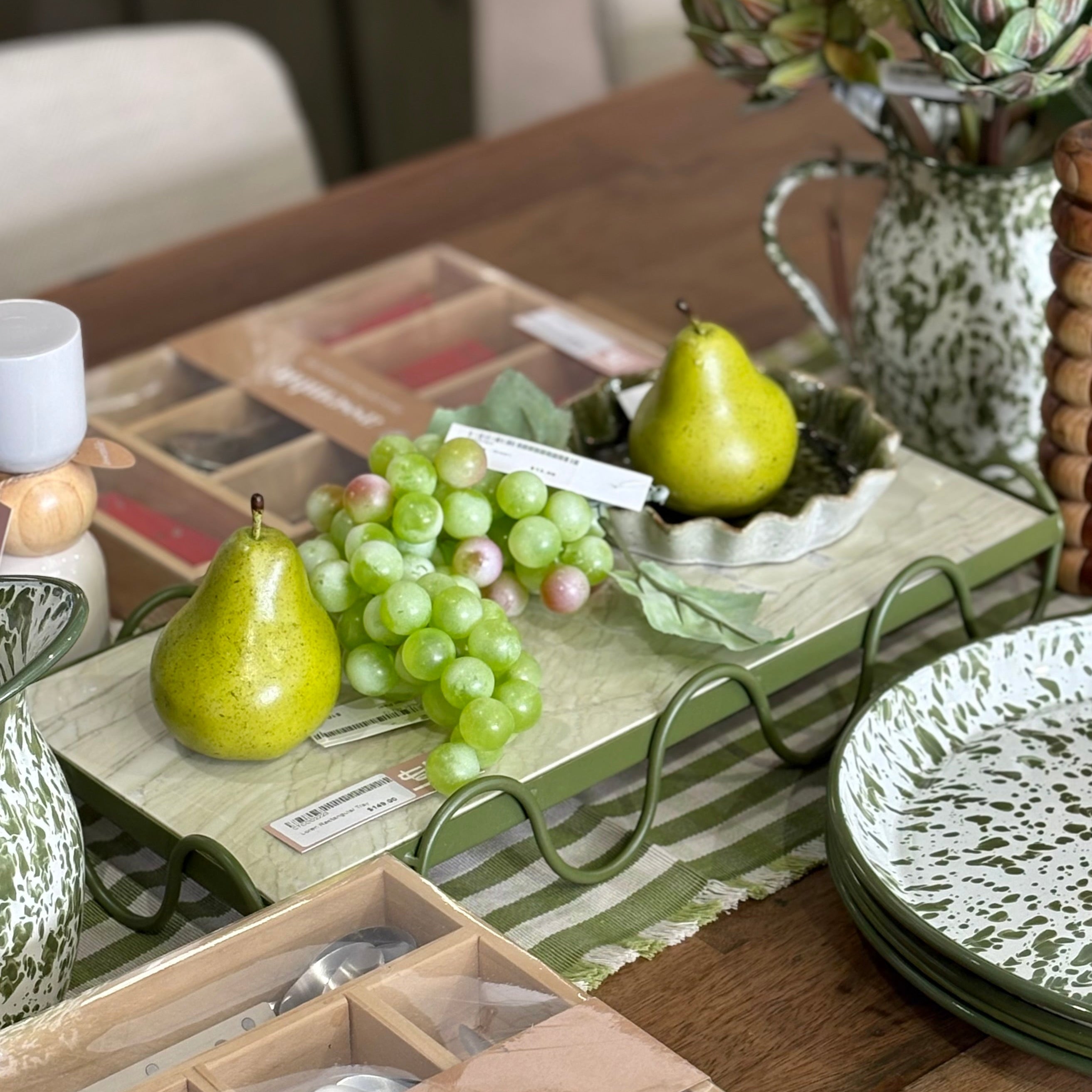 The Loren Rectangular Tray features a sleek marble surface set within a green metal frame, combining elegance with durability. Its versatile design makes it perfect for serving on your dining table or showcasing your favourite trinkets. A chic and timeless addition to any home, this unique tray enhances your space with effortless style.
