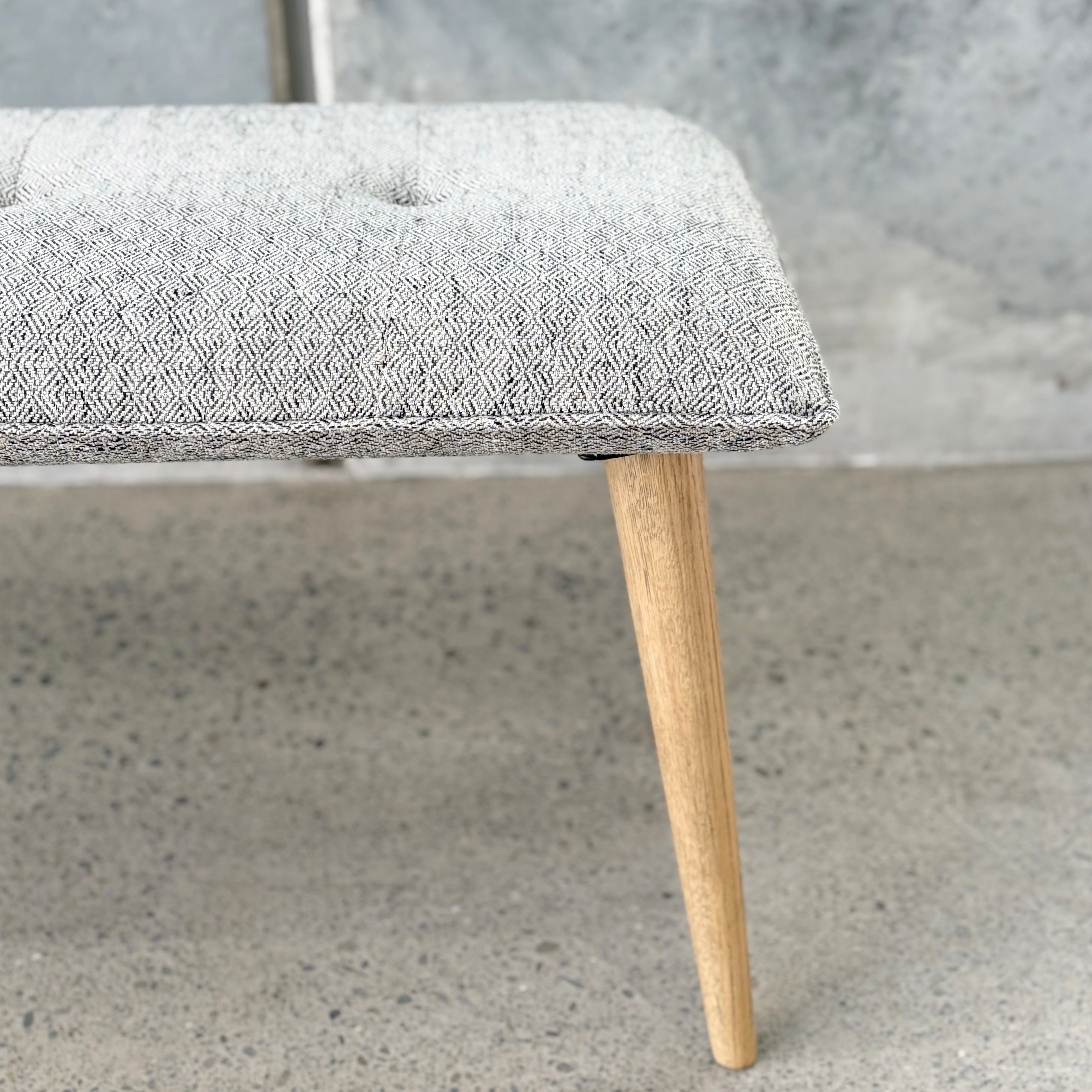 The Lulu is a cute and comfortable upholstered bench with a multitude of uses around the home – at the dining table, end of the bed, hallway or in your living area. Featuring a buttoned, tufted design finished in a elegant and versatile fabric.