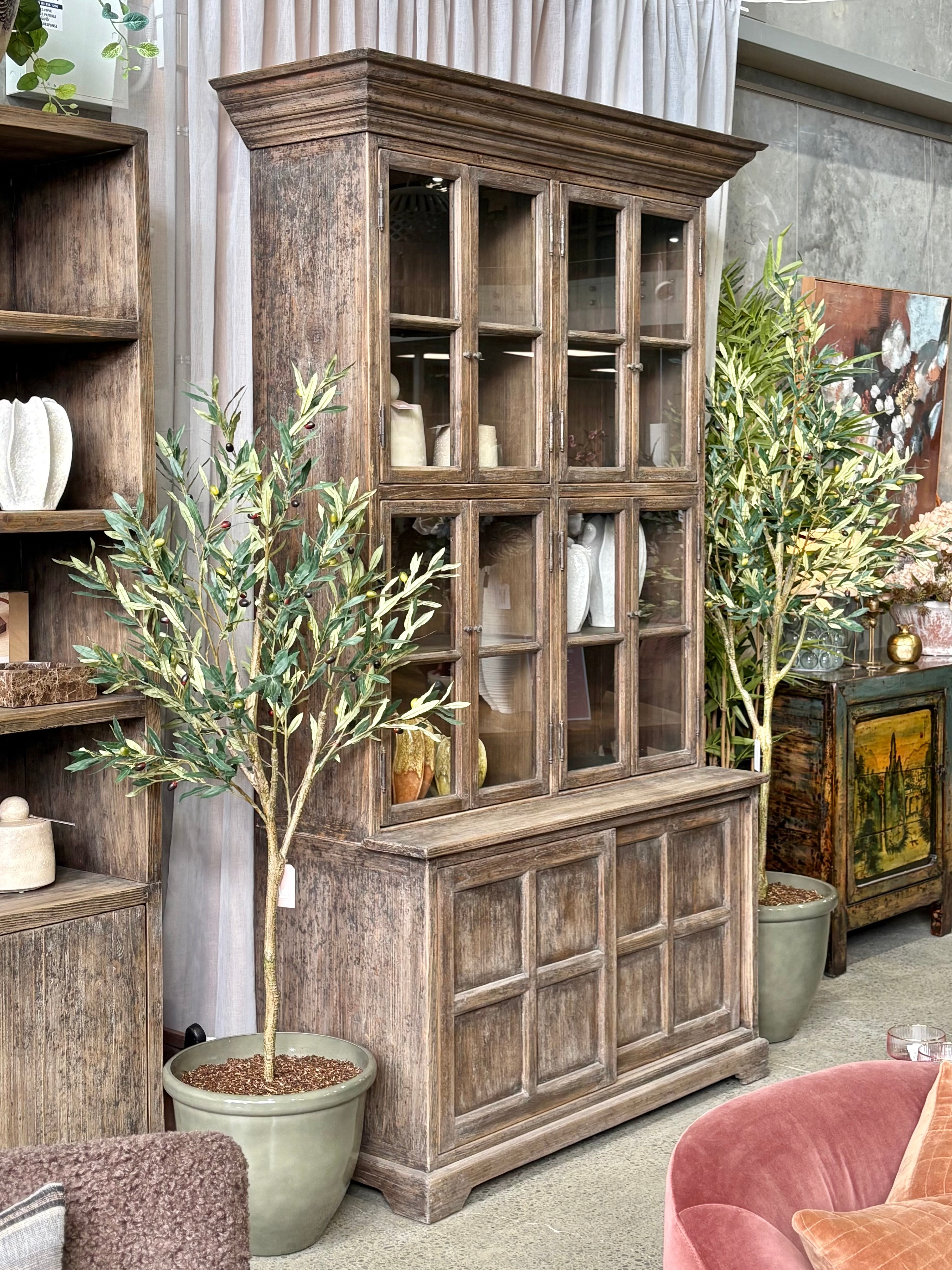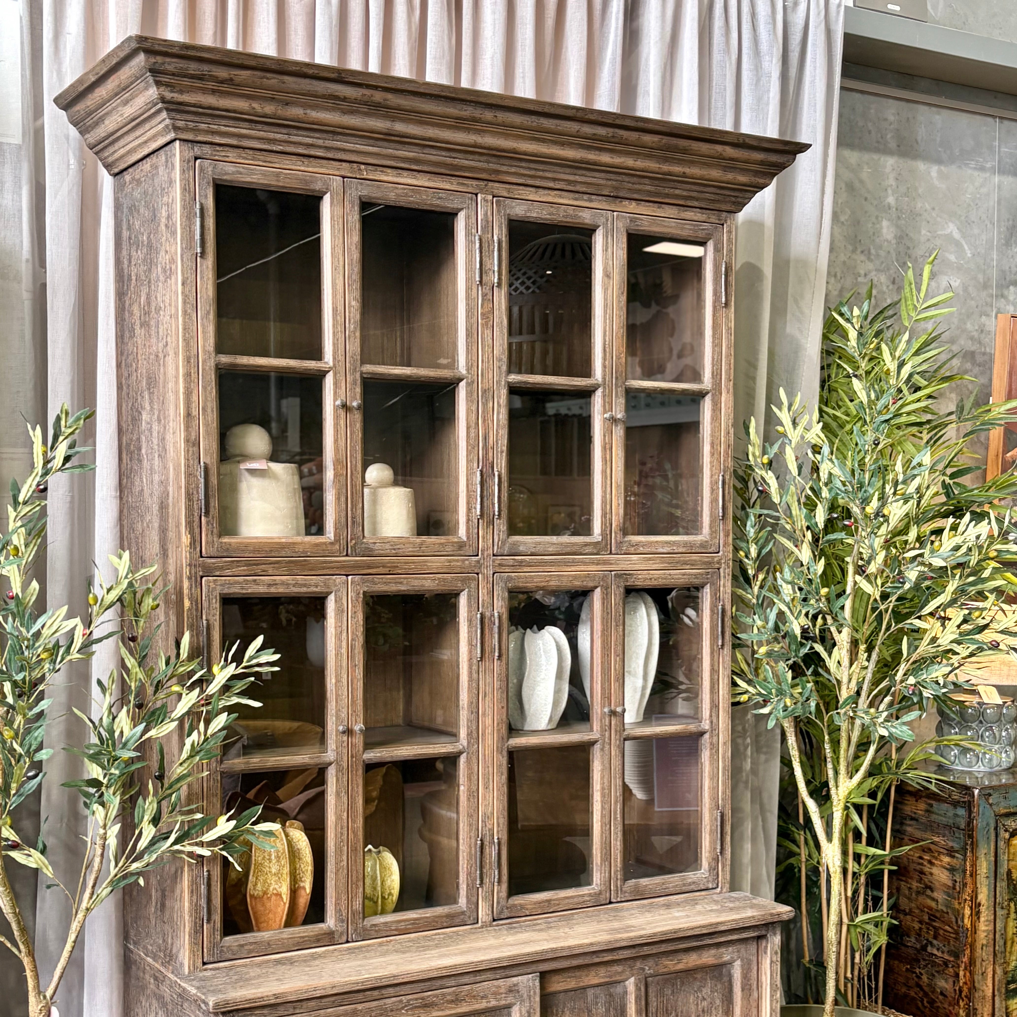 Introducing the Magritte Glass Door Hutch – a true centrepiece for any interior, with striking presence and refined rustic character. Expertly crafted, this substantial piece draws inspiration from antique cabinetry, blending classic design with the warmth of recycled timber. The Magritte Hutch combines beautiful display and practical storage, featuring a pairing of glass door display cabinetry and lower cupboard space – perfect for dining rooms, living areas or grand hallways.