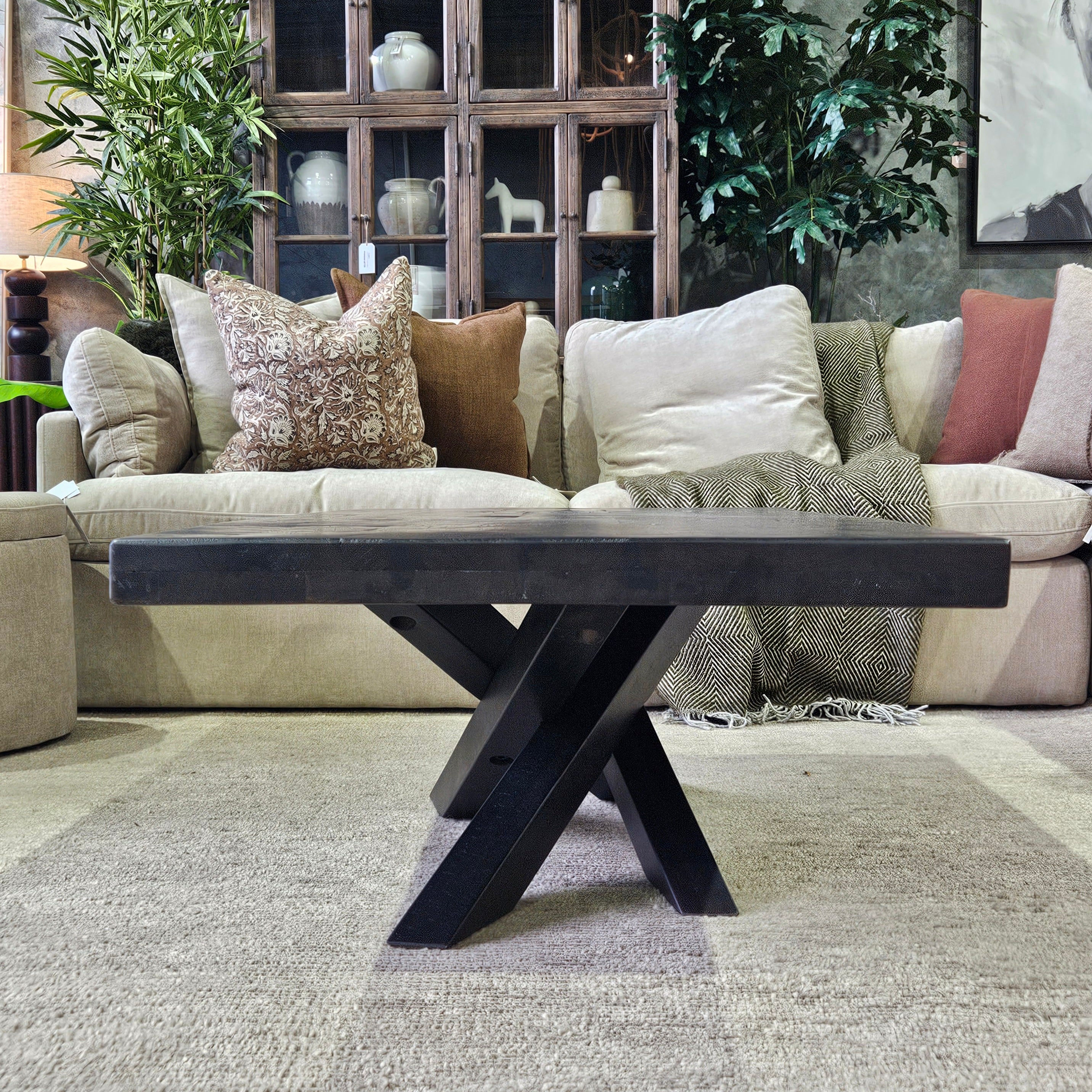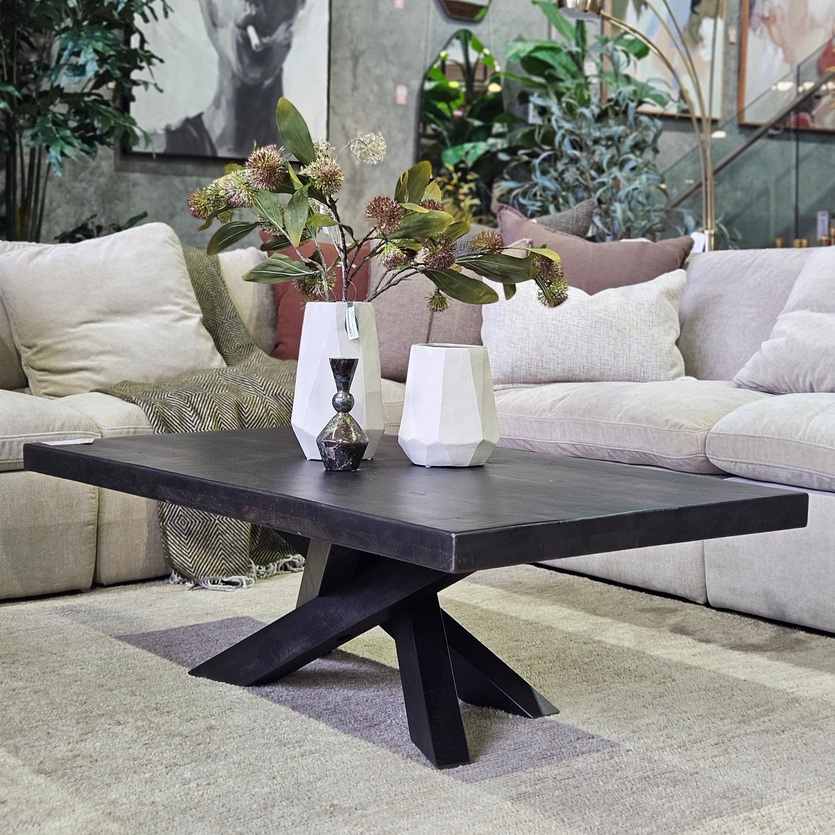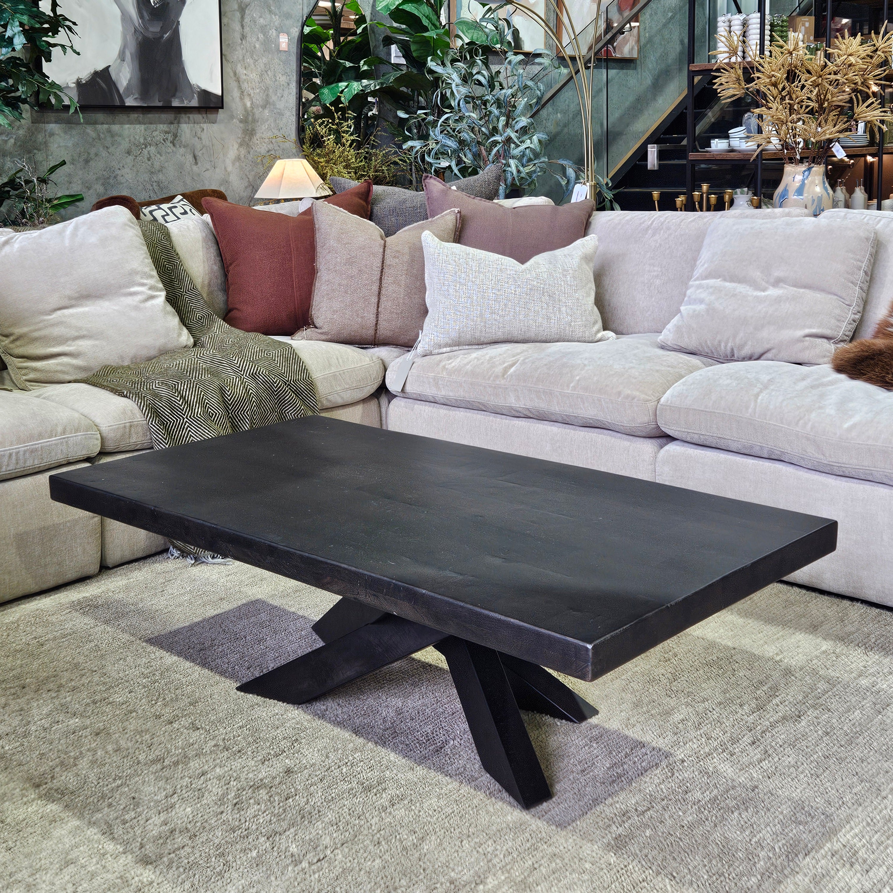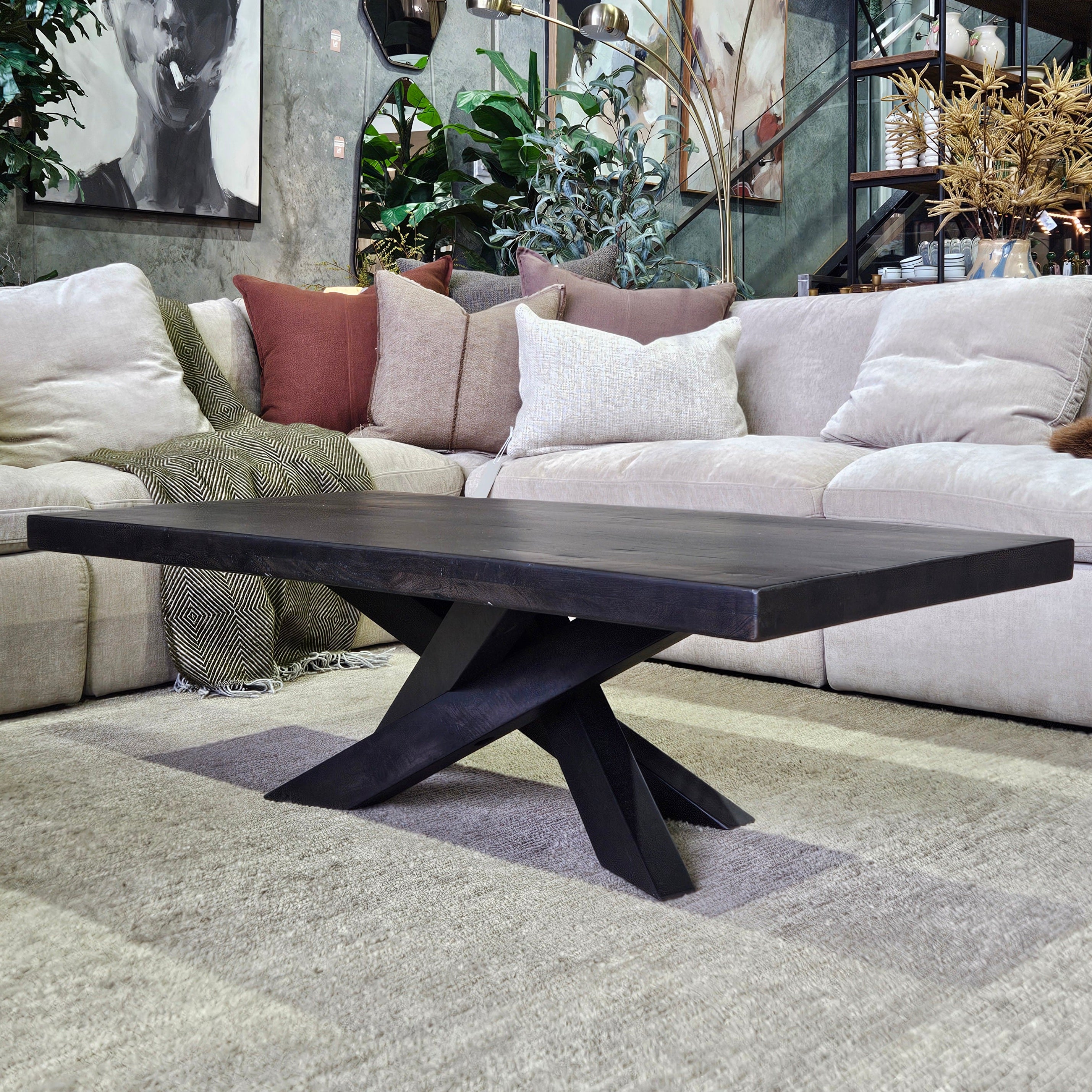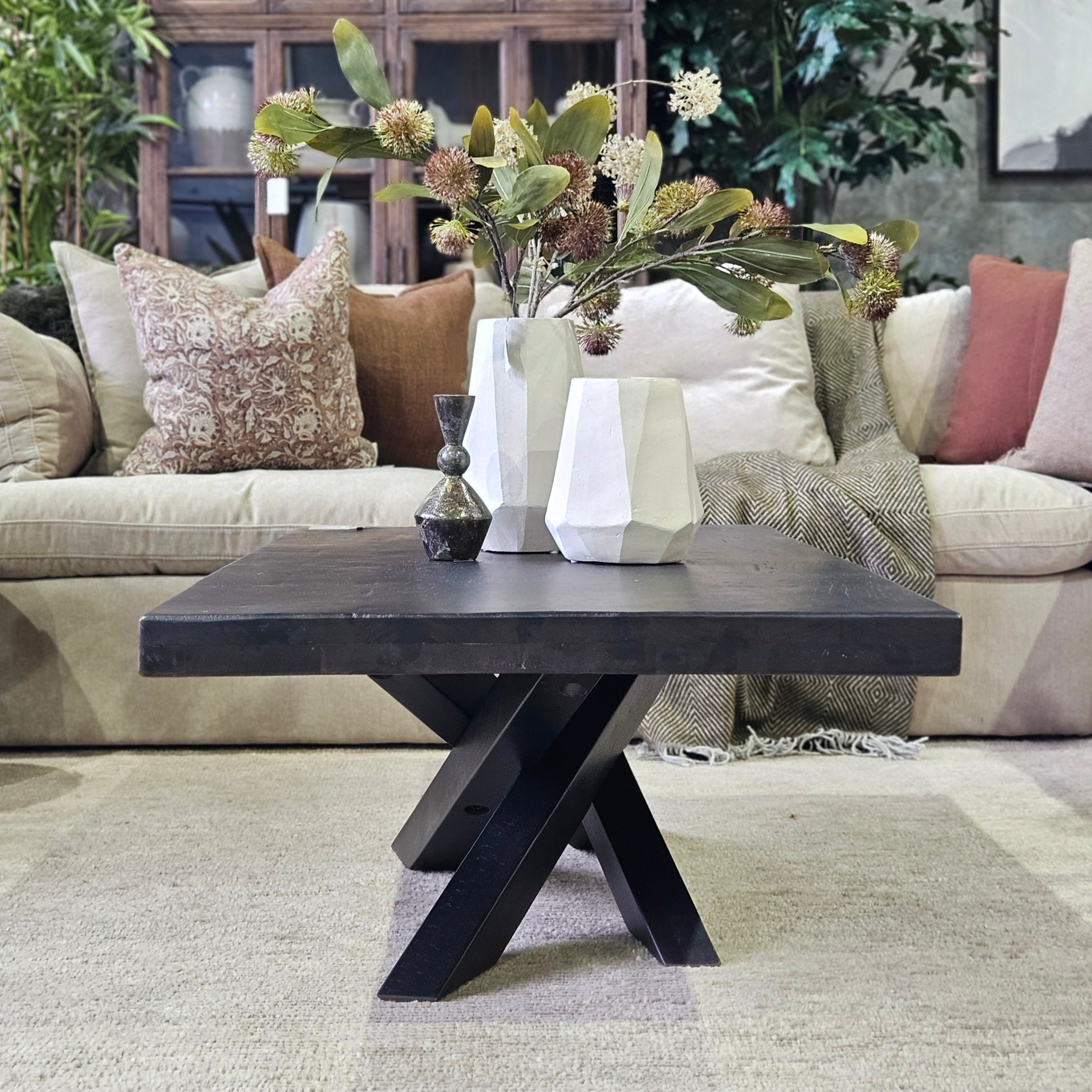 A truly stunning piece from our most trusted coffee table supplier, the Mapua Coffee Table features a unique cross-leg base, complemented by a smooth square-edged tabletop in rich dark ancient finish. A contemporary design with a hint of organic warmth to create a striking focal point in your living space.