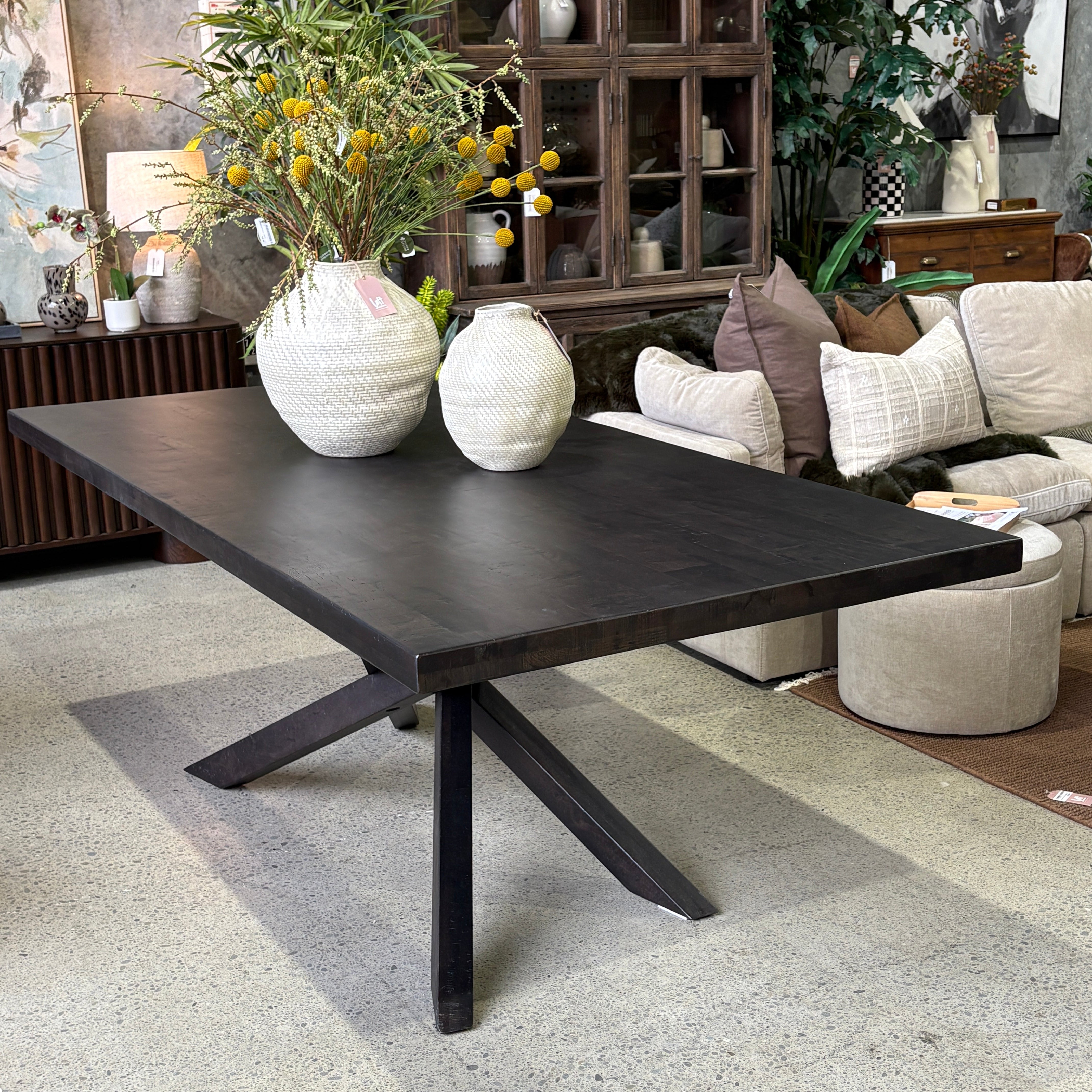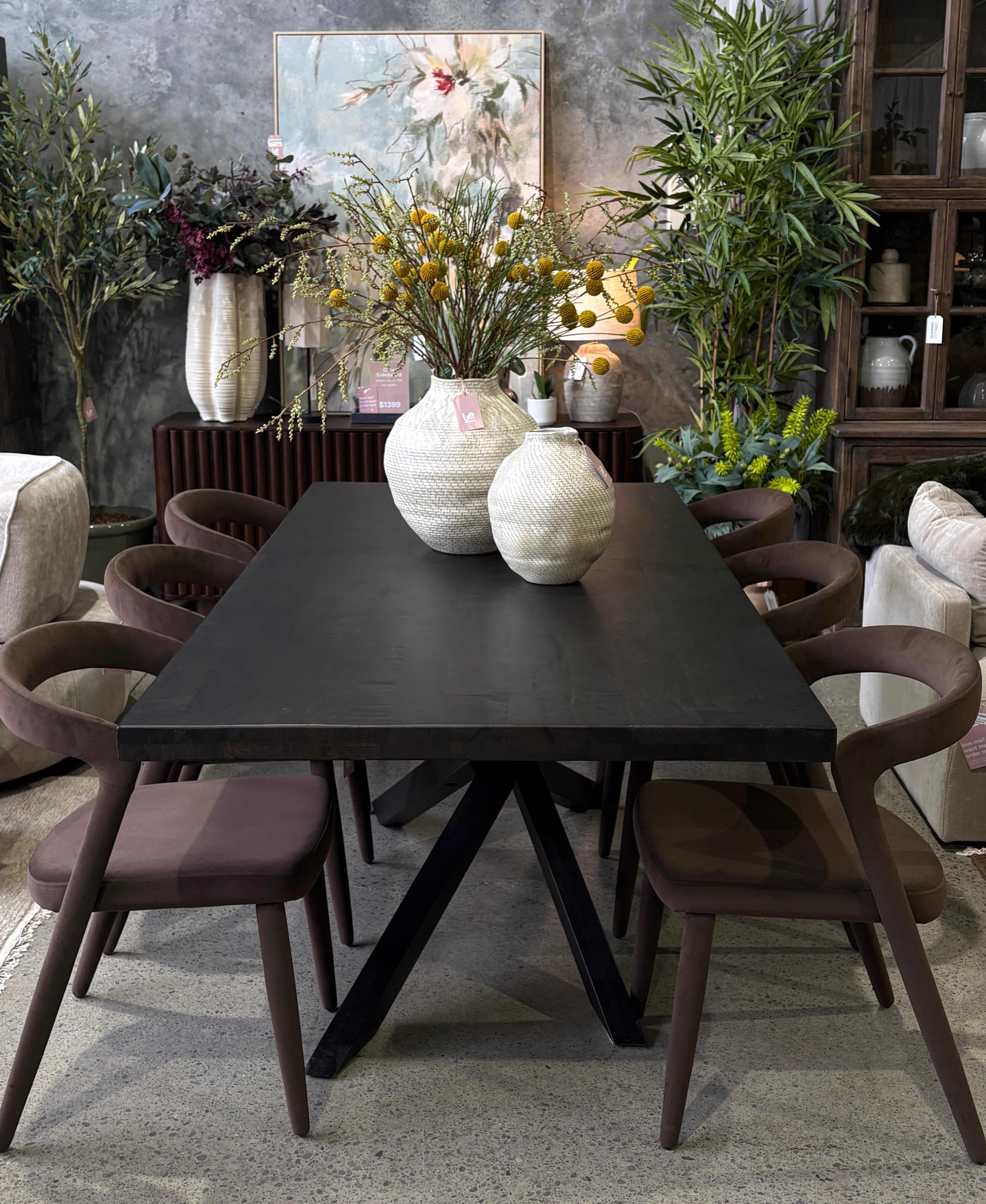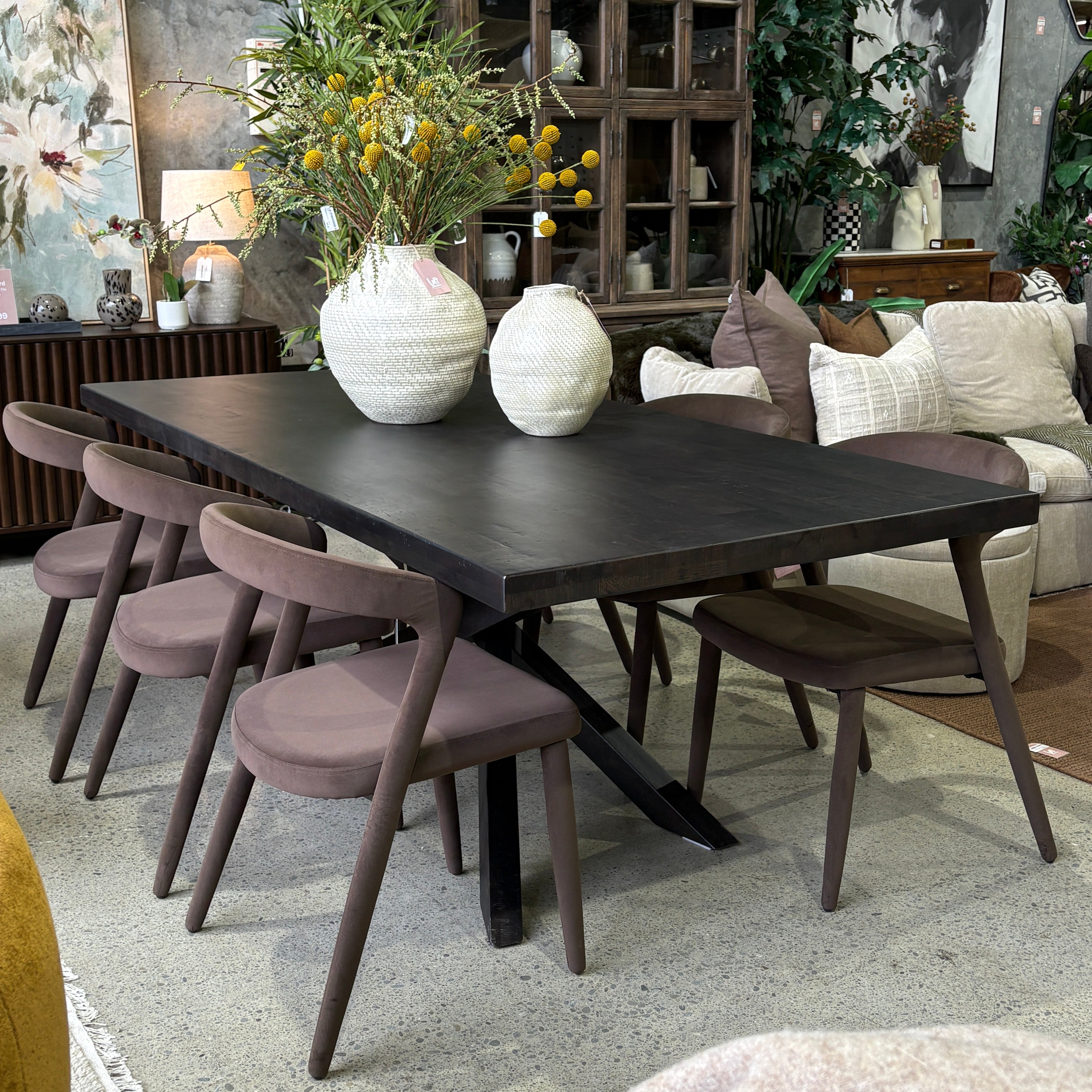 A truly stunning piece from our most trusted dining table supplier, the Mapua Dining Table features a unique cross-leg base, complemented by a smooth tapered-edge tabletop. A contemporary design with a hint of organic warmth, easily paired with many dining chair styles.