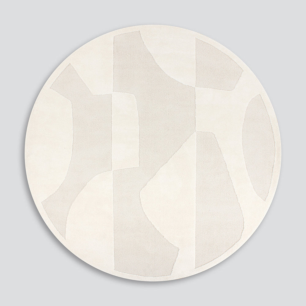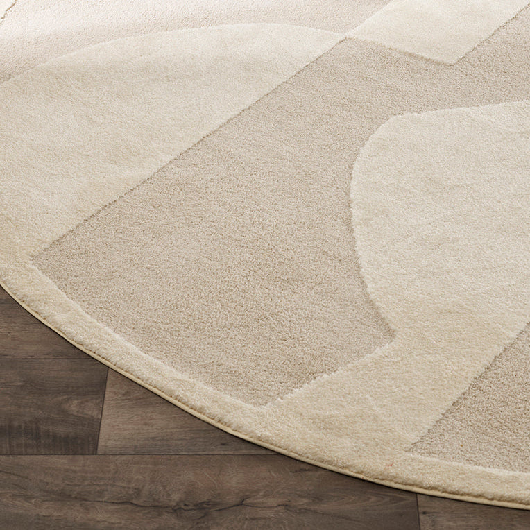 Marceau is a carved, modernist design that catches the light beautifully. Tone-on-tone ivory, makes this round floor rug a timeless and elegant piece, sure to appeal to all tastes.