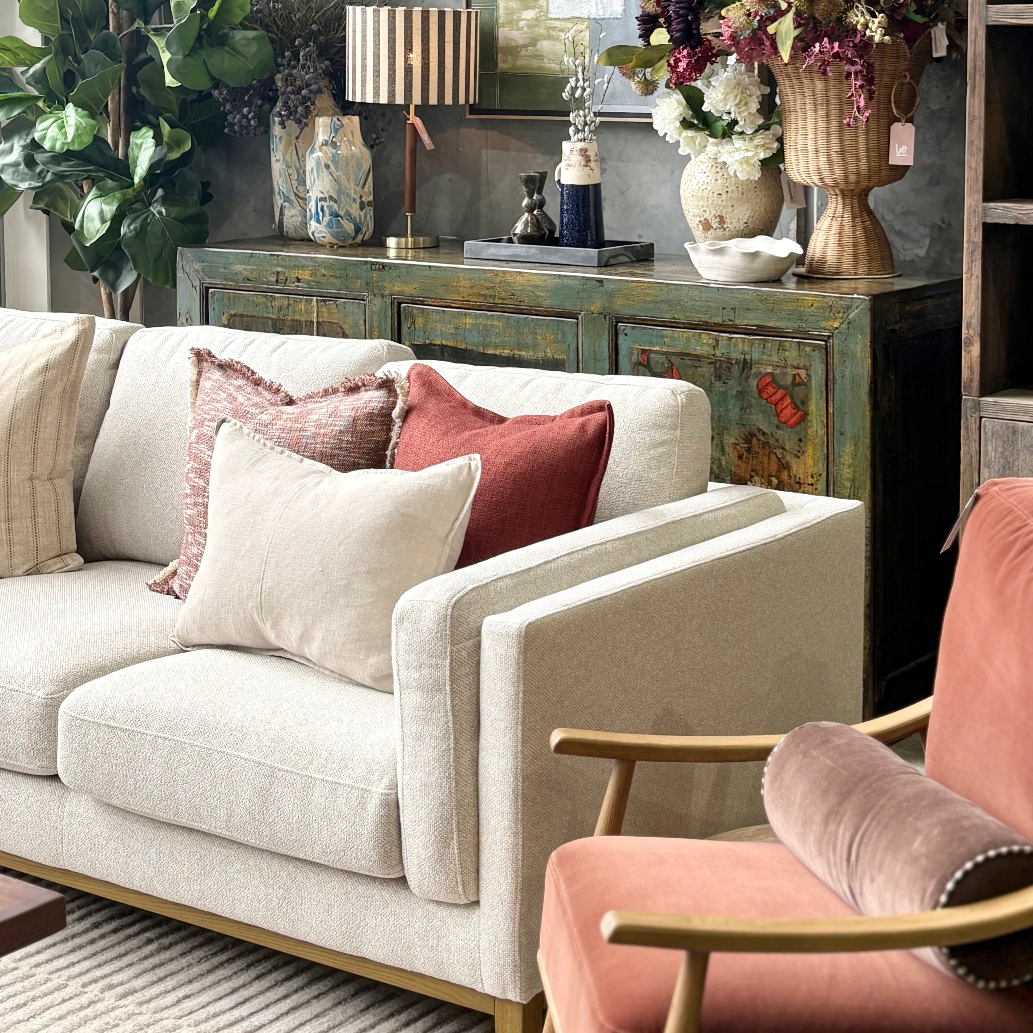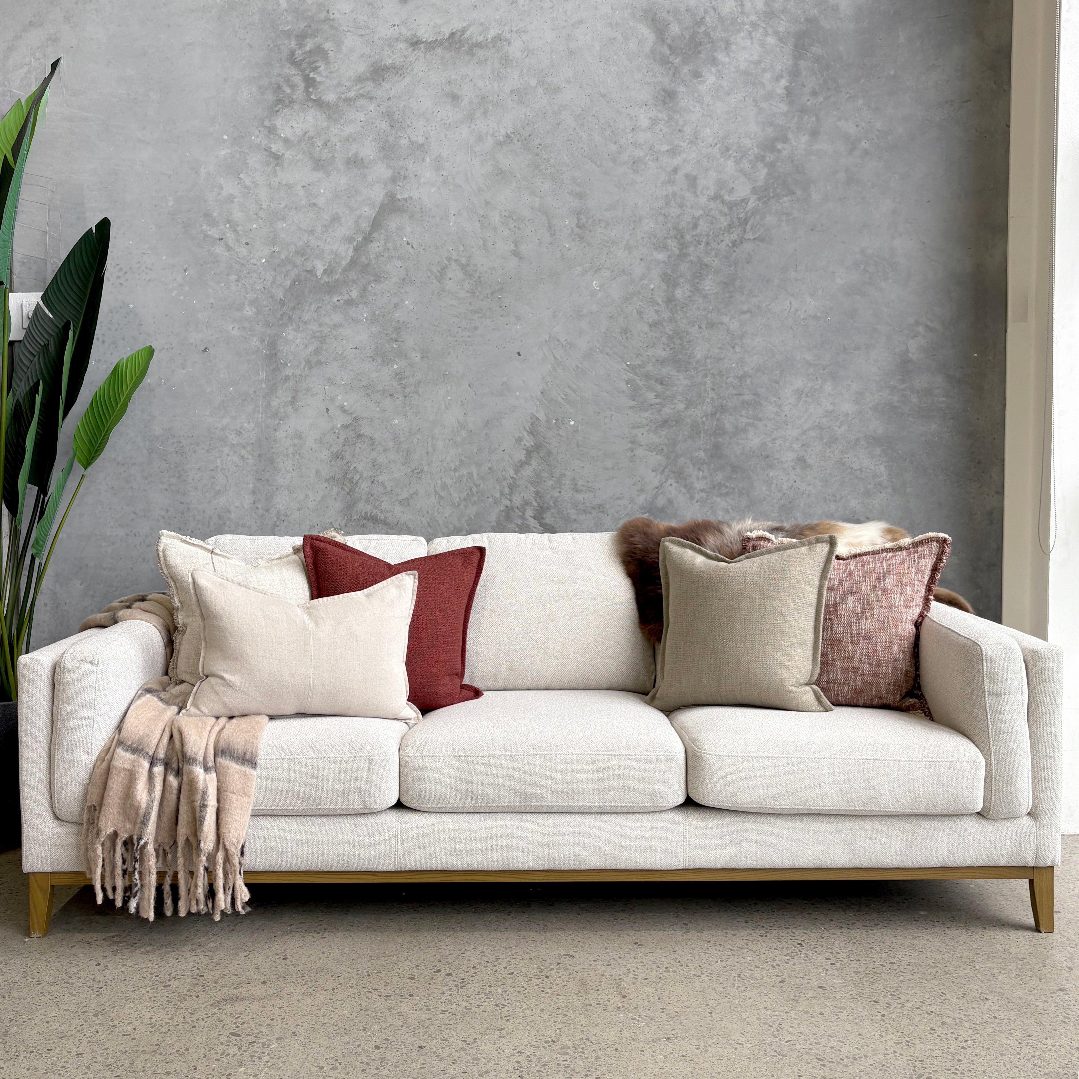 Loft favourite lounge style Miami is back and better than ever - featuring an oak base & leg for natural timber warmth, paired with a woven beige-toned fabric and comfortable foam cushioning. The Miami Sofa carries an air of understated elegance to suit any interior space, making it one of our best-sellers for years running!
