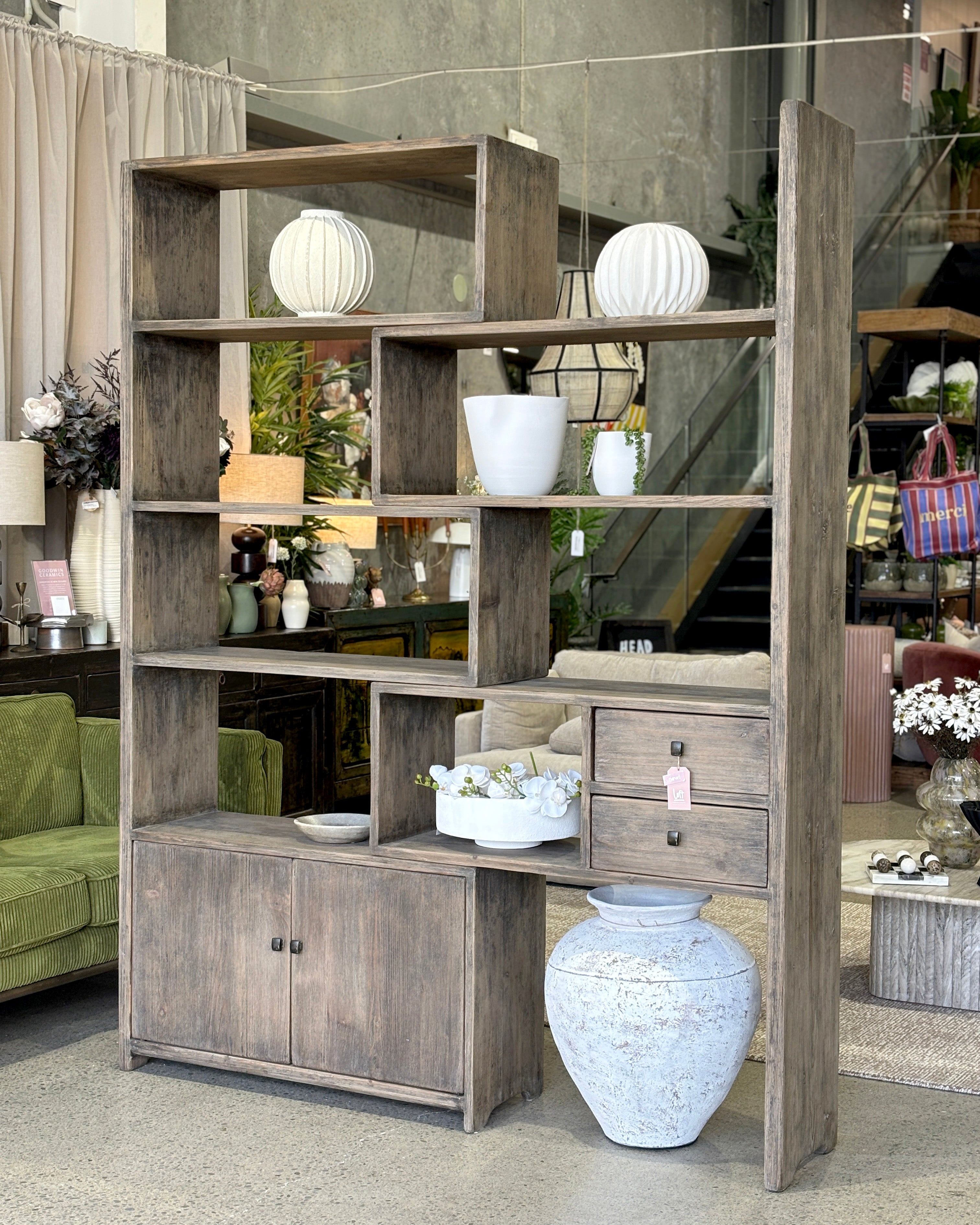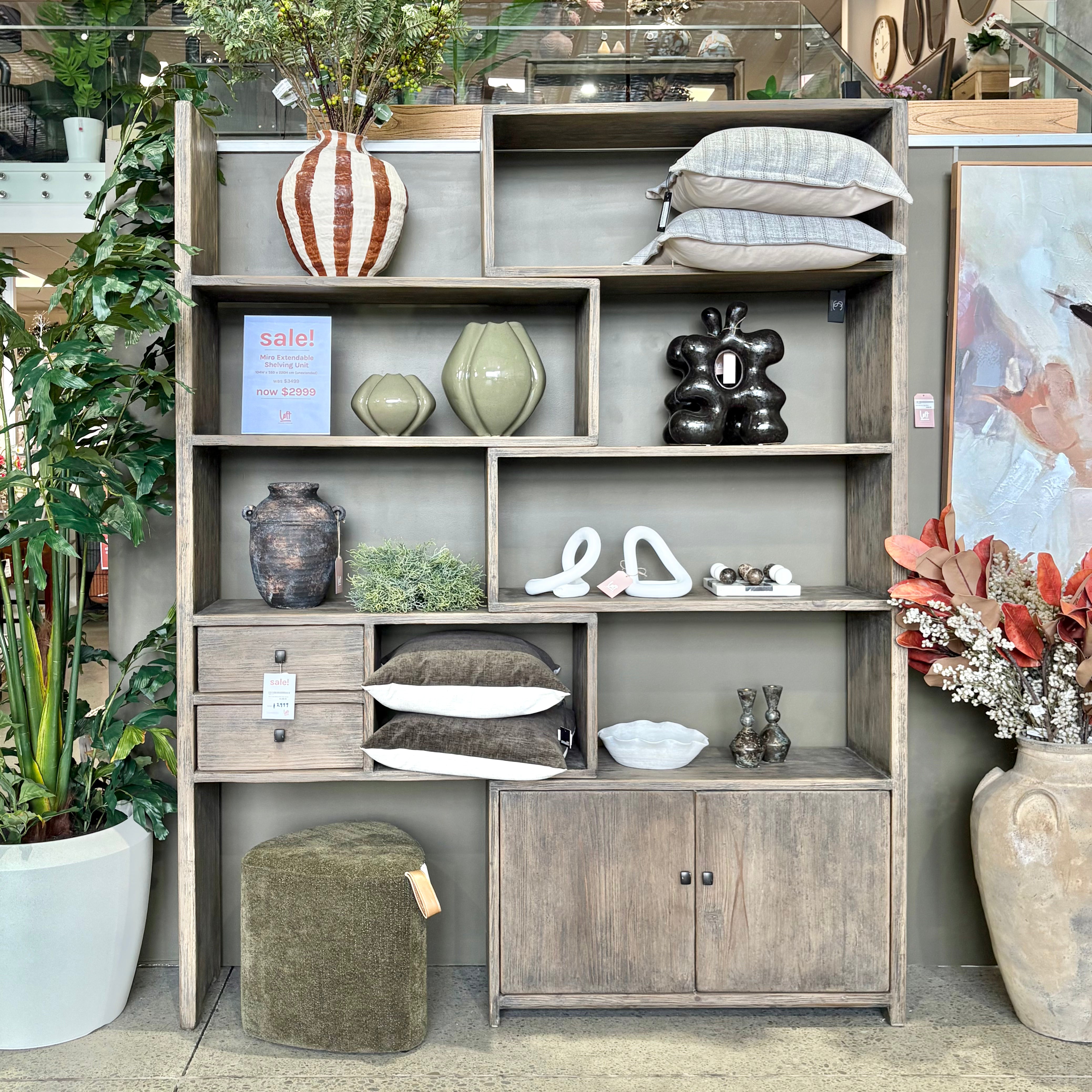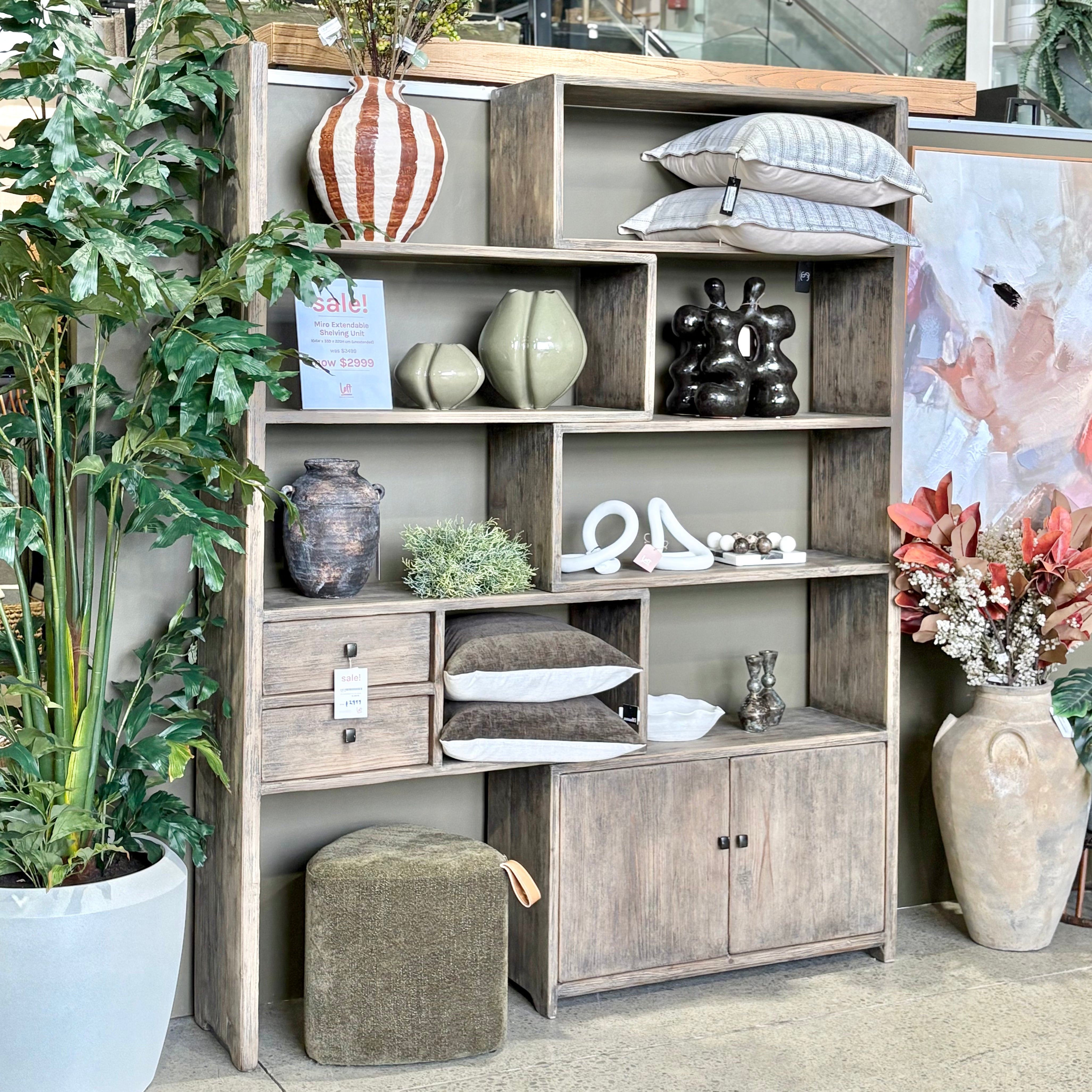 Our Miro Extendable Shelving Unit pairs innovative design with a timeless appeal. Beautifully crafted with a gorgeously rustic finish that highlights the texture and beauty of the reclaimed pine. This shelving comes in two pieces that can be positioned together however you please, with easy access to shelving, drawers and doors from both sides. Guaranteed to be a stand-out piece in your interior space.