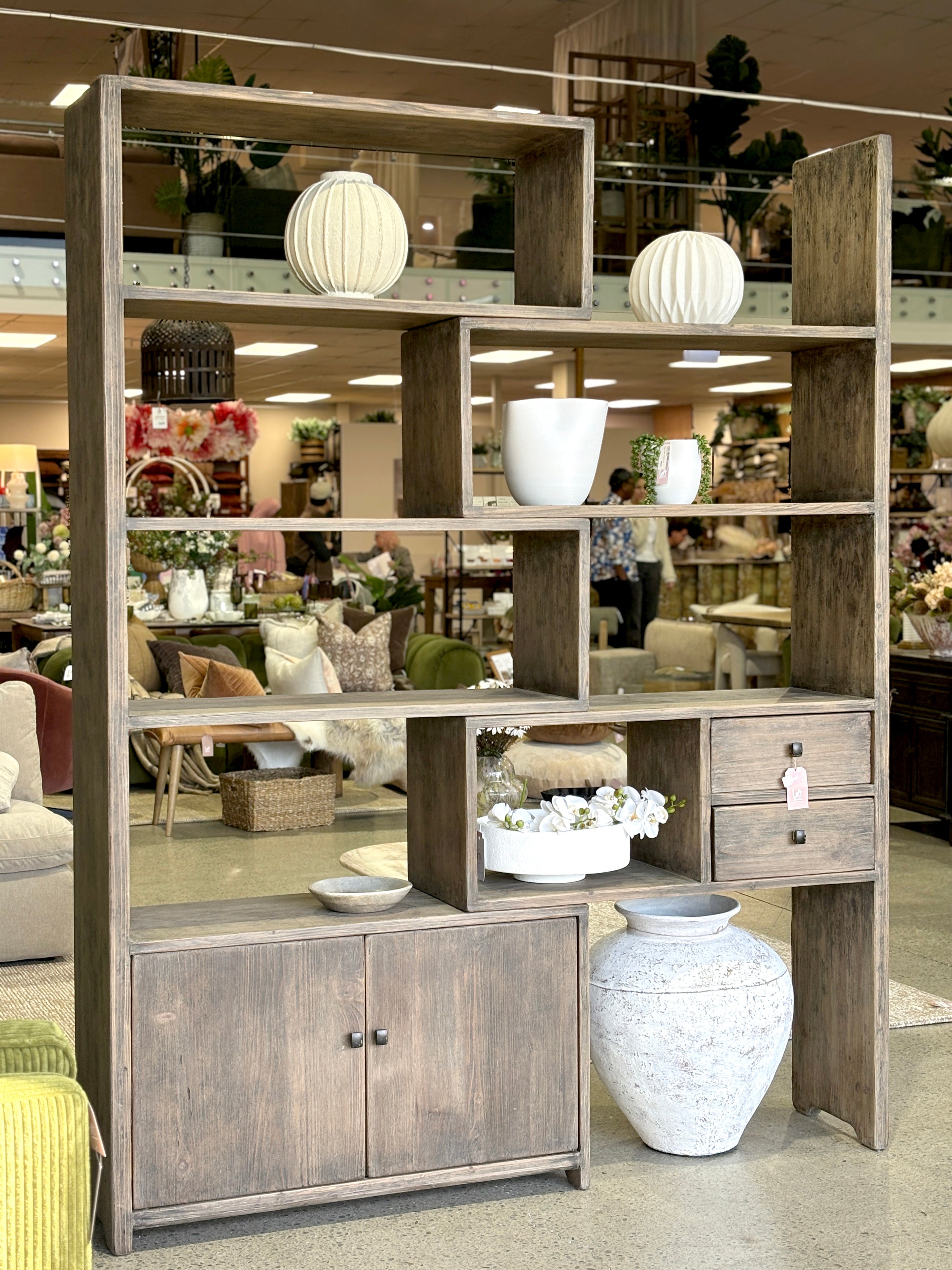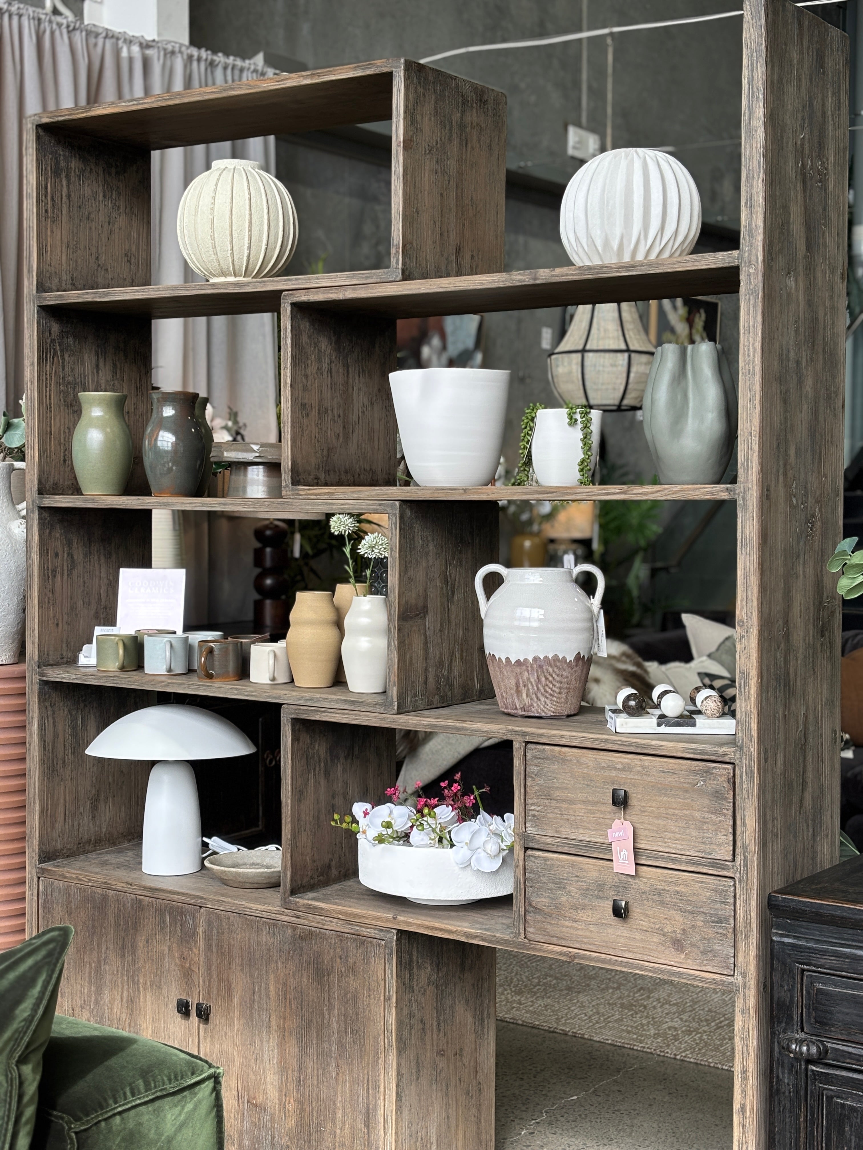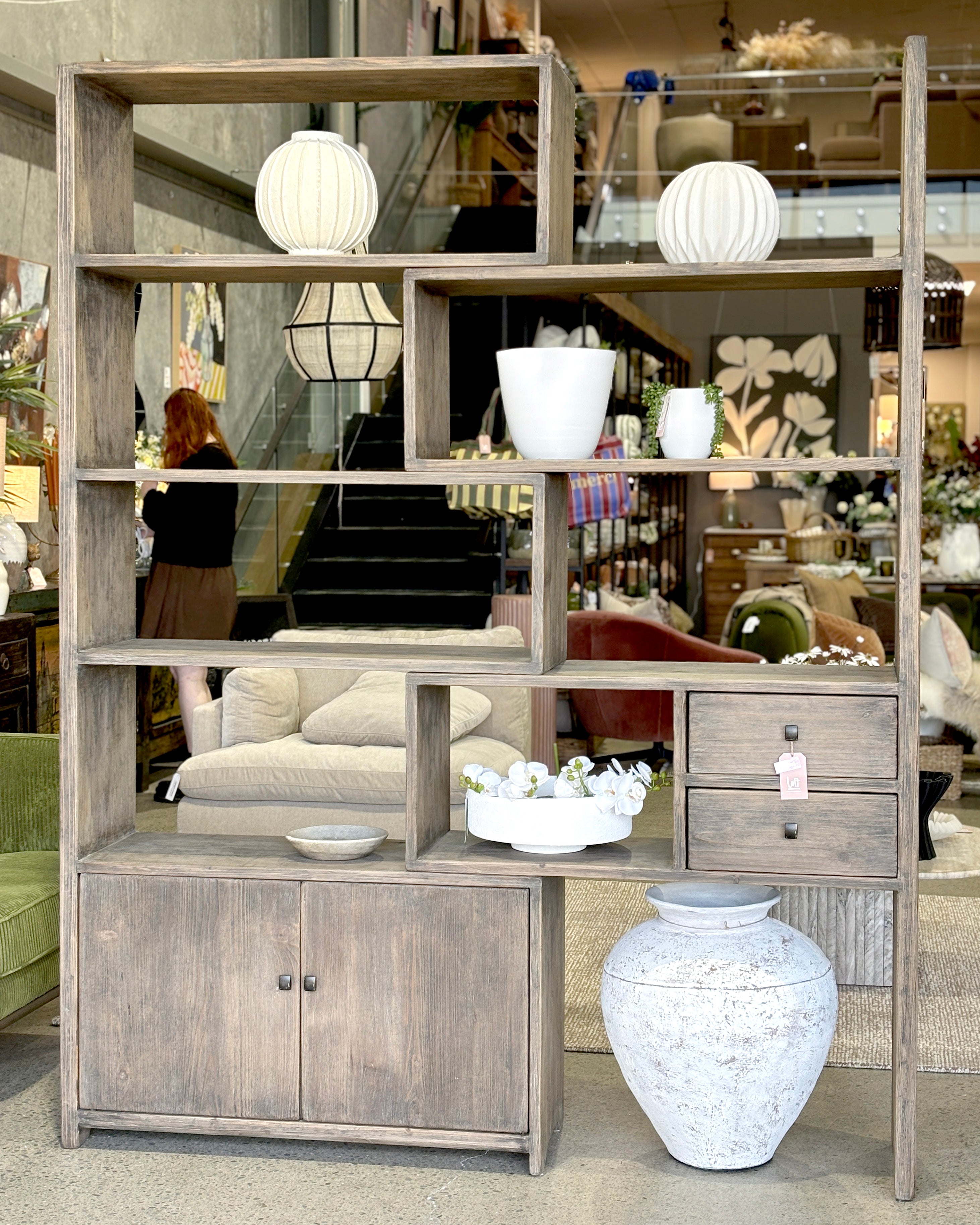 Our Miro Extendable Shelving Unit pairs innovative design with a timeless appeal. Beautifully crafted with a gorgeously rustic finish that highlights the texture and beauty of the reclaimed pine. This shelving comes in two pieces that can be positioned together however you please, with easy access to shelving, drawers and doors from both sides. Guaranteed to be a stand-out piece in your interior space.