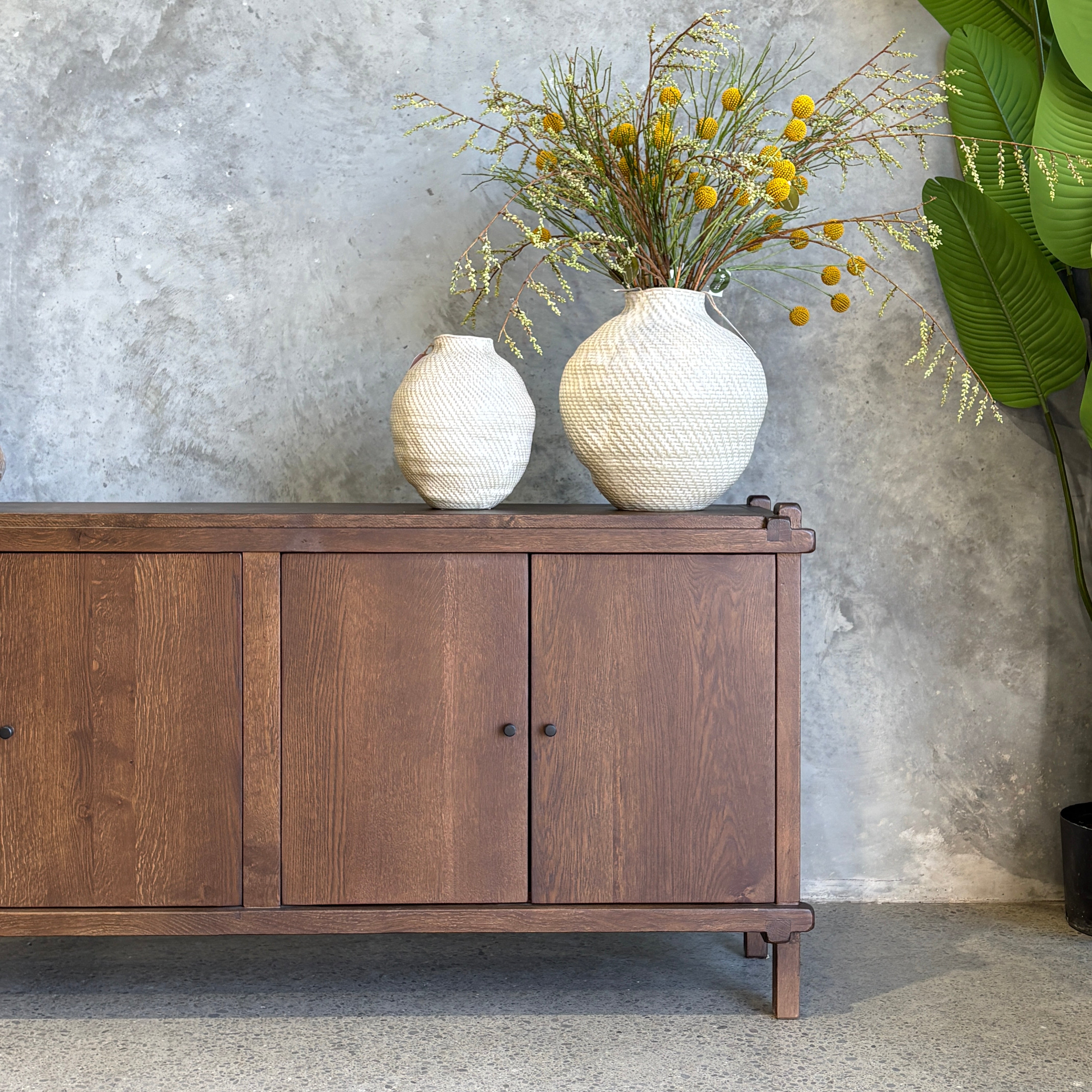 Introducing the Mondrian Oak Buffet - now in this brand new dark mammoth colourway. A design of minimalist elegance, highlighting the textural grain and beauty of the solid oak wood used in its construction. This timelessly beautiful sideboard features a rich dark brown finish, giving an elegant depth to the grain.