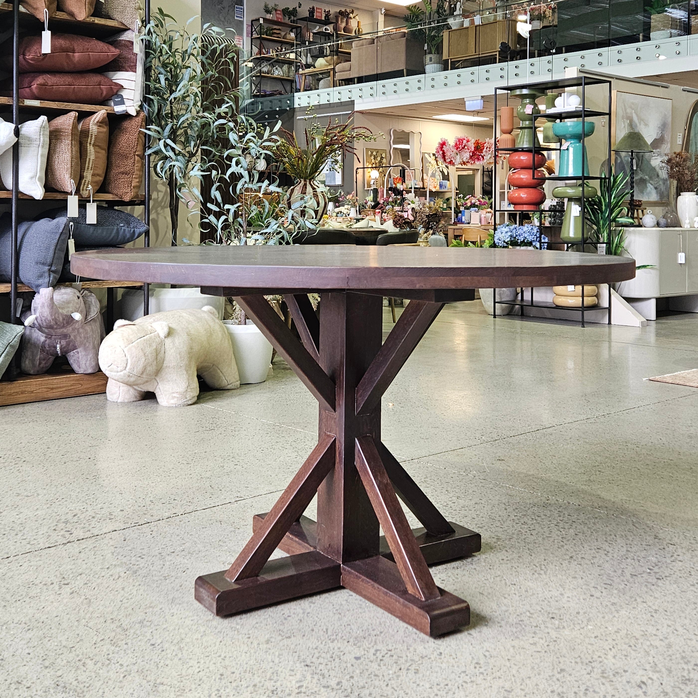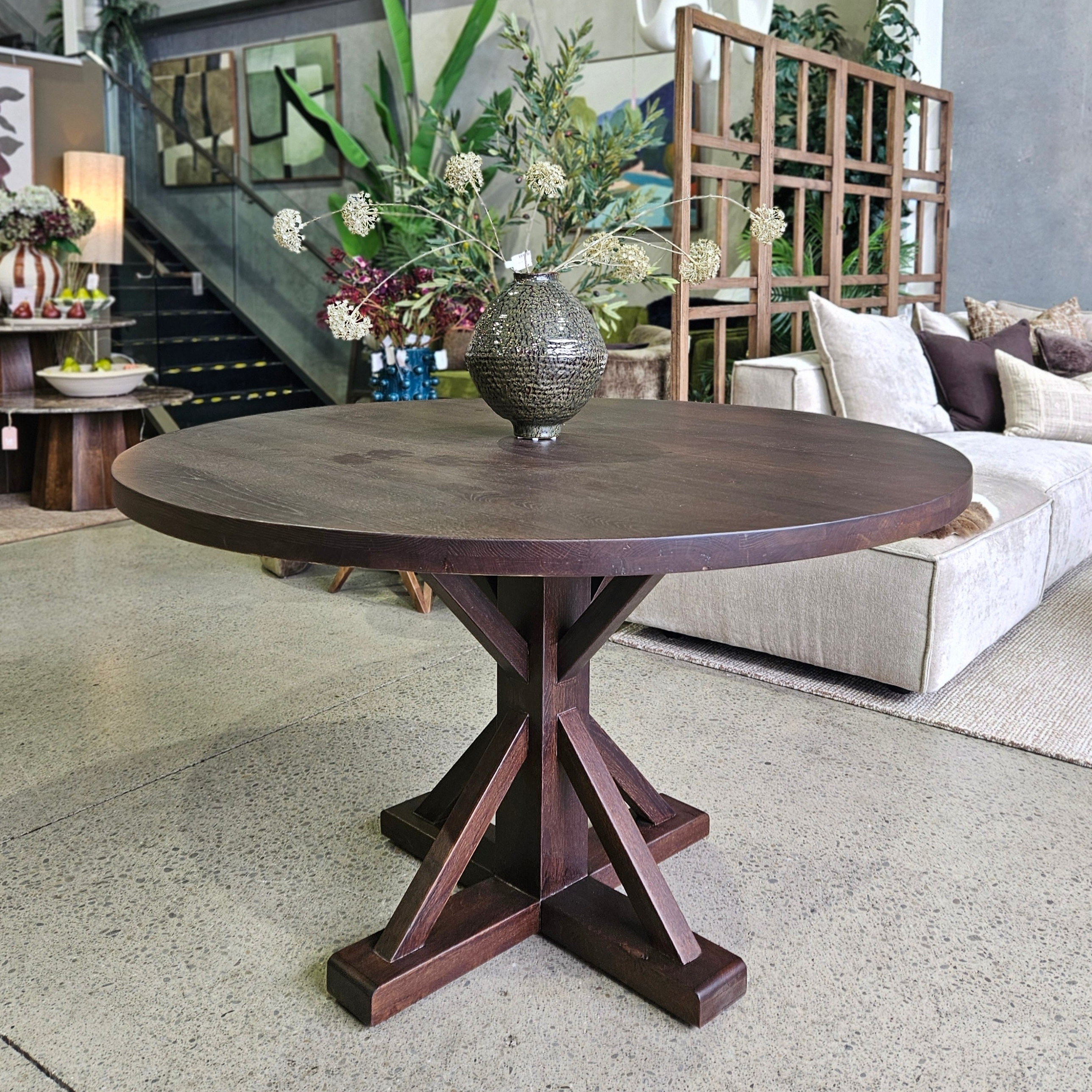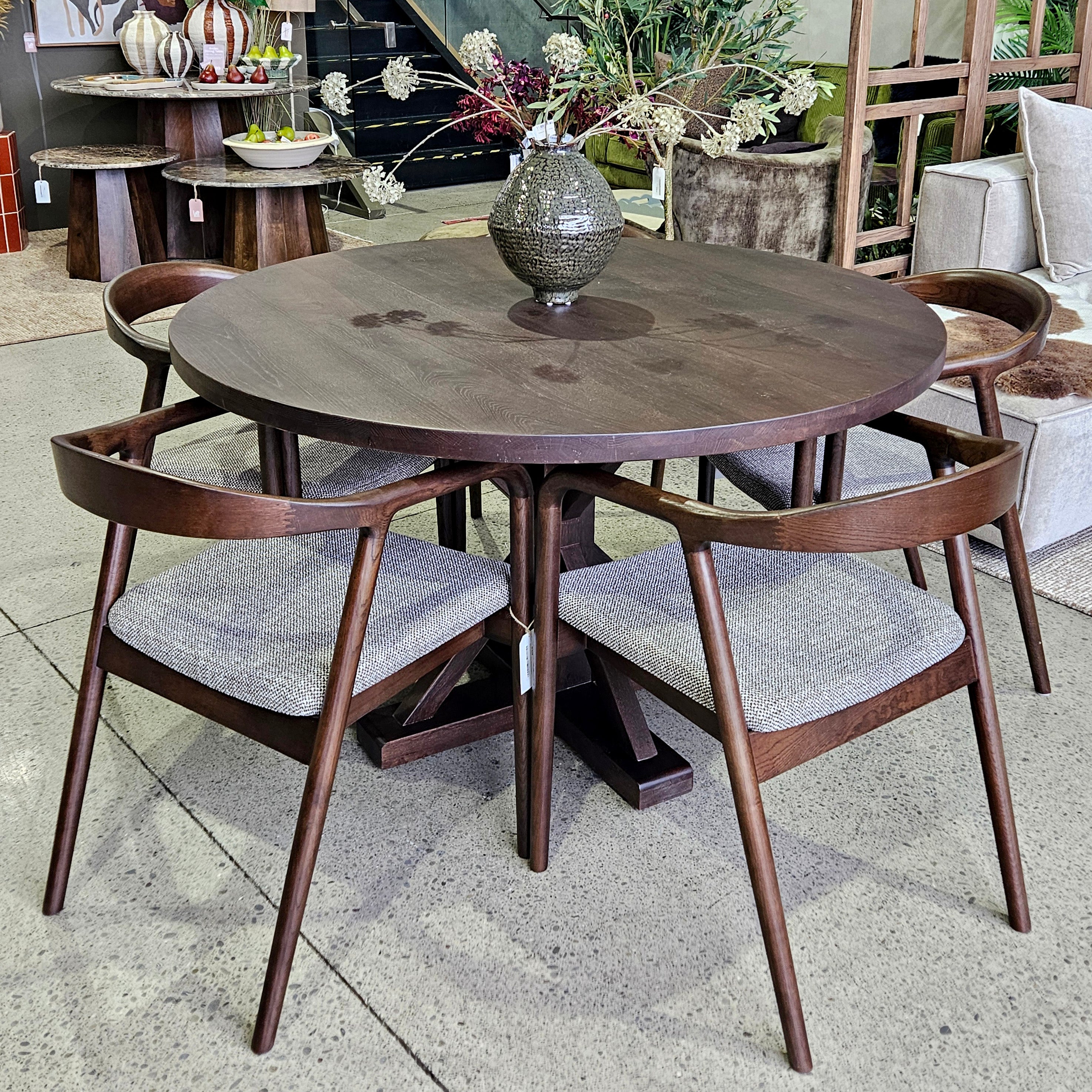 Introducing the Mondrian Round Dining Table - bringing timeless elegance to your dining space with striking dark mammoth finish - a brand new colour to Loft - on premium solid oak wood. The rich, deep tones of this colour finish enhance the natural grain of the solid oak, creating a sophisticated focal point that complements both contemporary and classic interiors. Perfect for family gatherings and entertaining, this beautiful table features a durable lacquer surface that requires no oiling or maintenance – combining timeless style with everyday functionality.