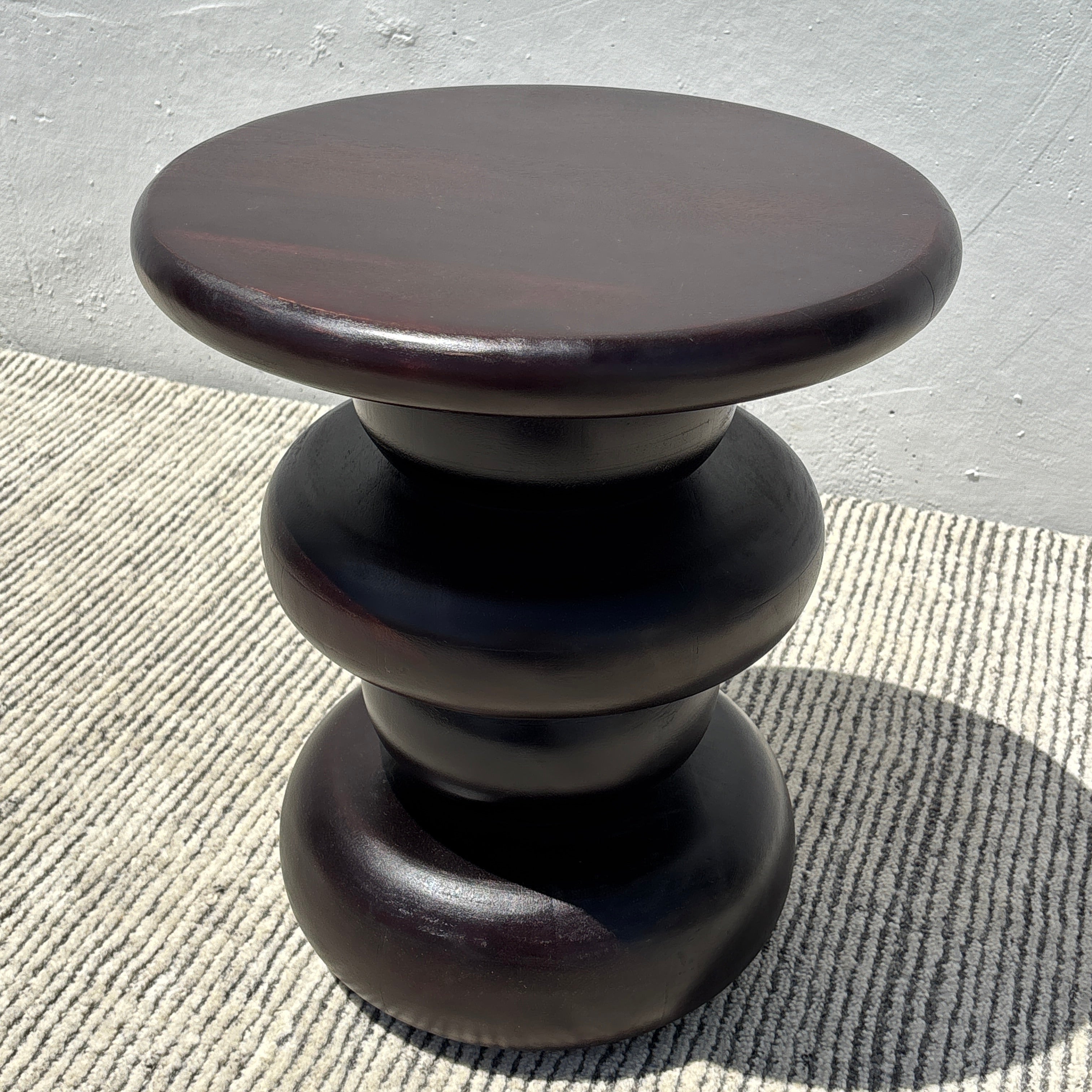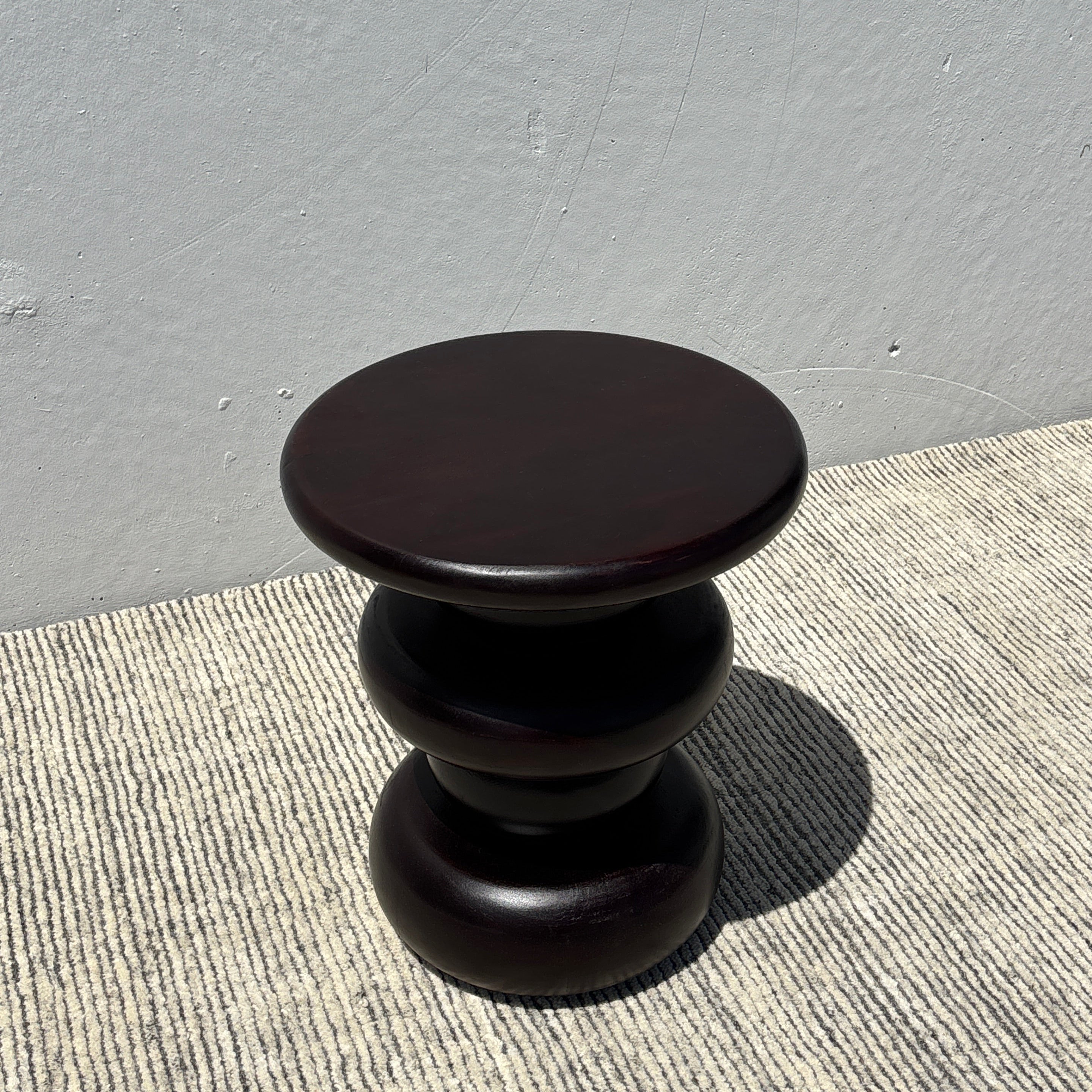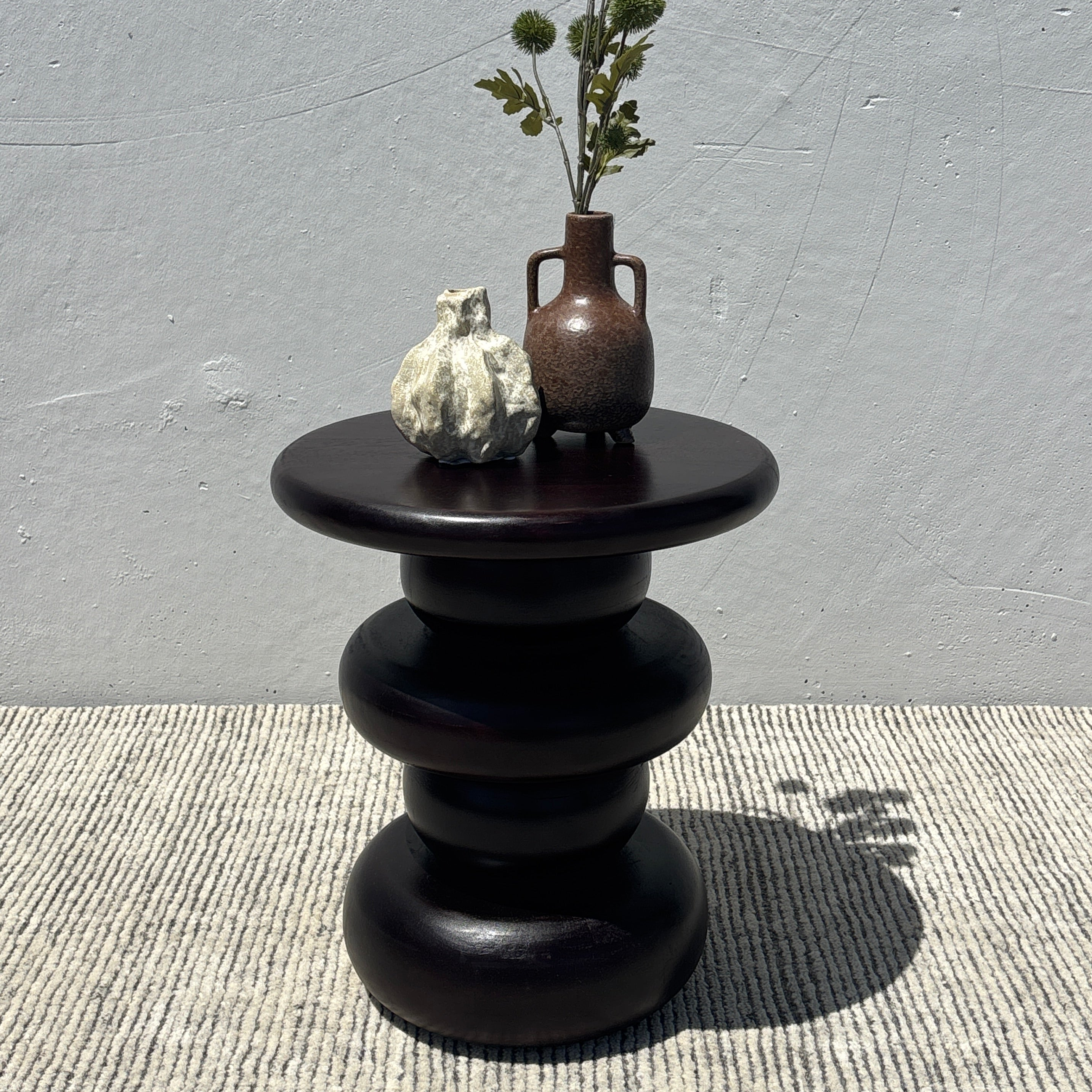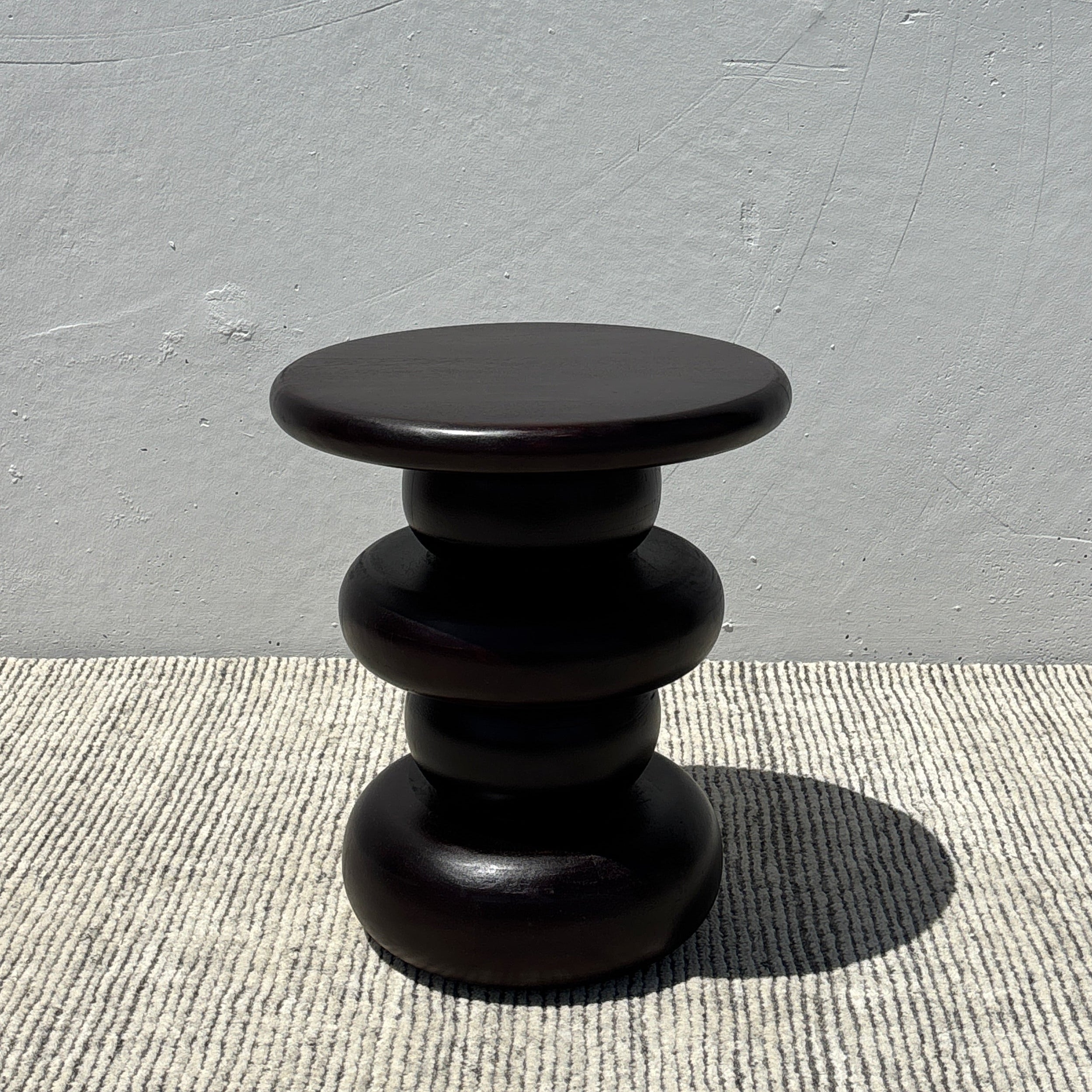 Meet the Nova Side Table. This round side table features a retro-inspired ringed pedestal base, crafted in acacia wood and finished in a deep near-black finish. Exuding a contemporary simplicity, the Nova is perfect to place next to an armchair or sofa for a practical yet sophisticated addition to your space – or next to the bed as a bedside table!