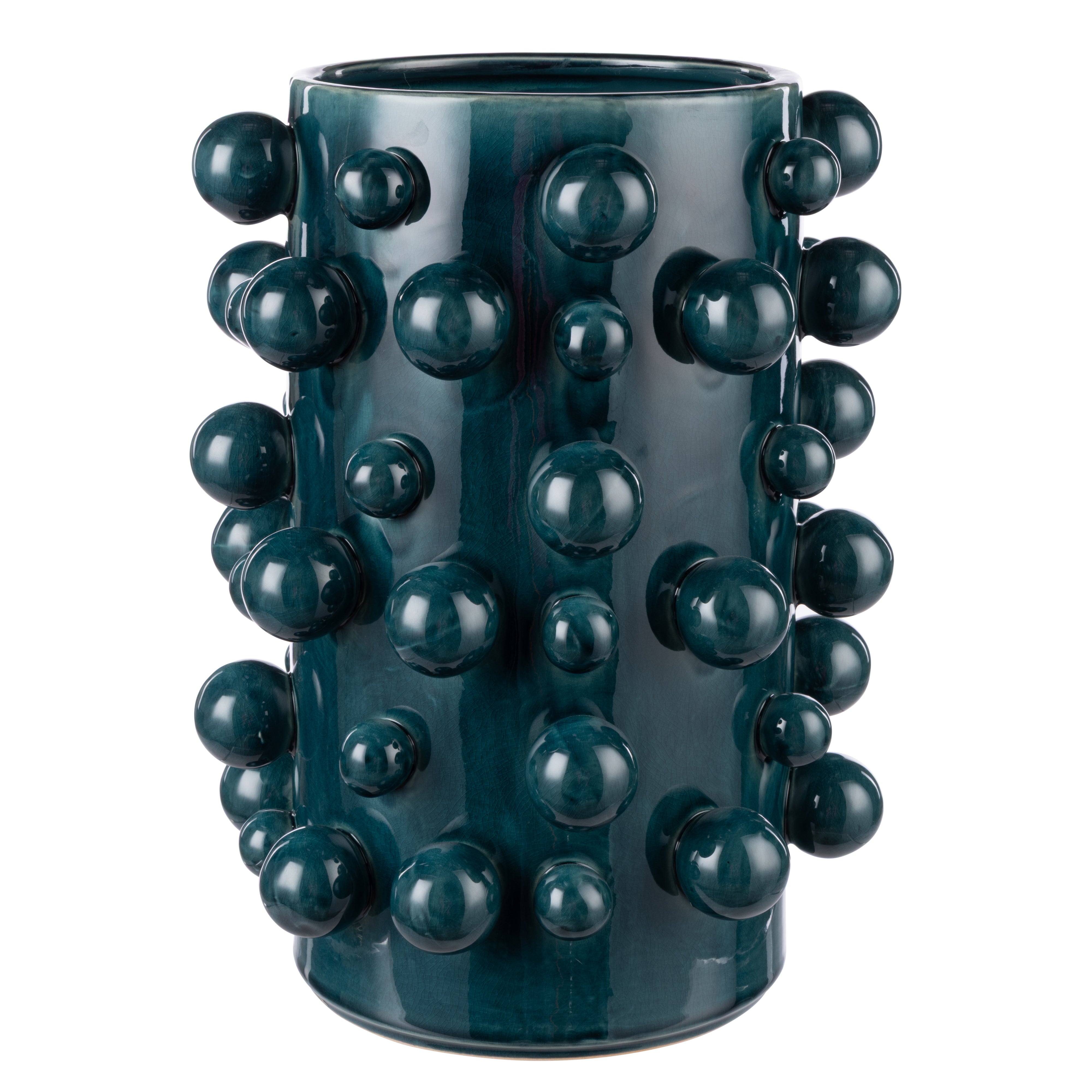 Make a statement in any space with the Odin Vase. Its silhouette adorned with bubble ornaments, adds a modern touch. Crafted from terracotta with a hand-finished teal glaze, this decorative vessel is perfect for displaying fresh or faux flowers in any corner of your home.