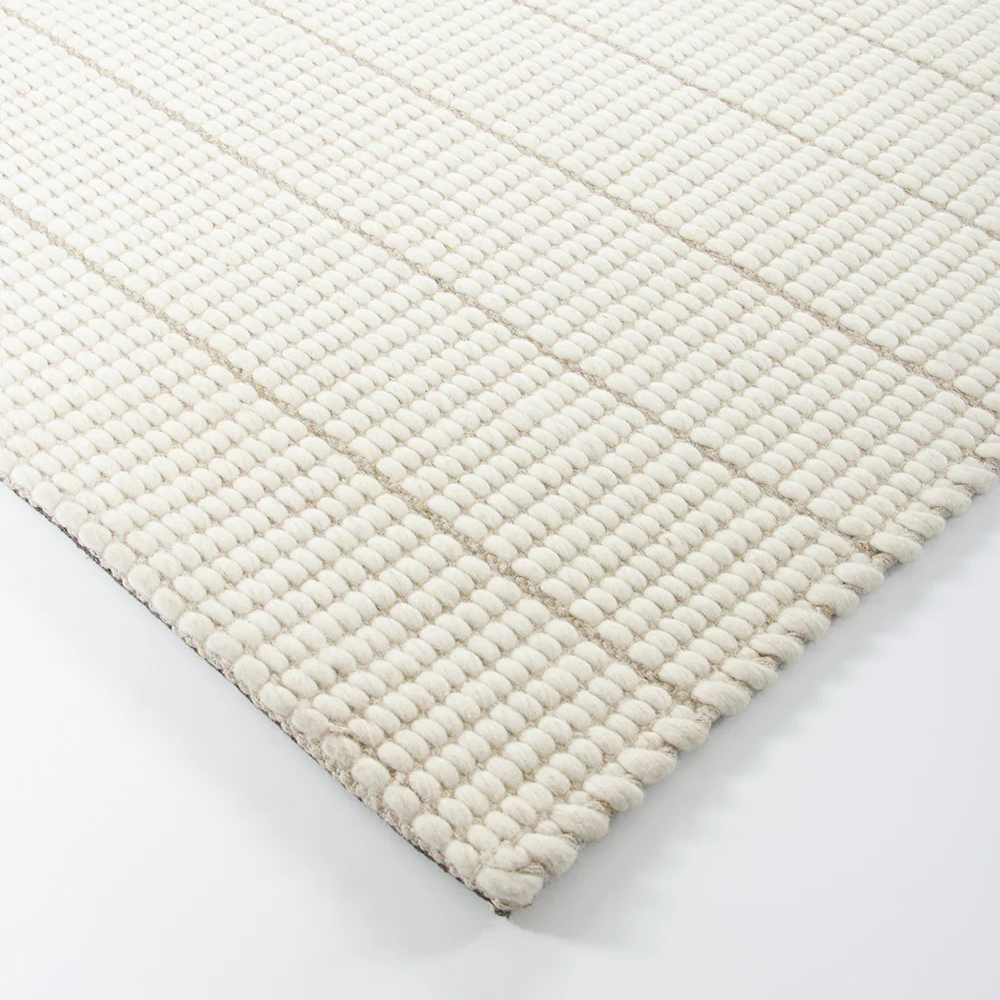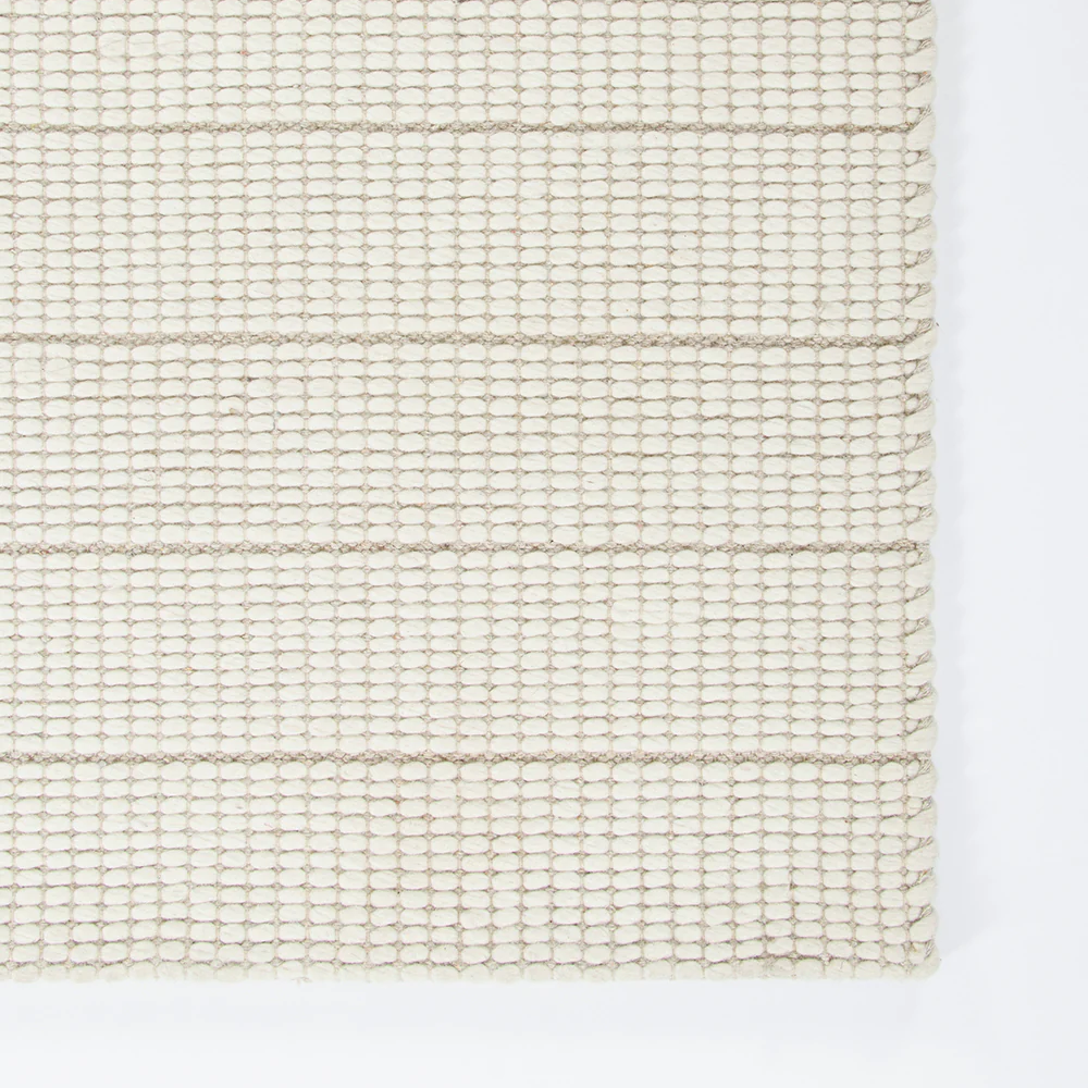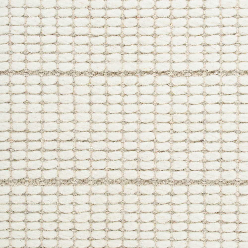 A classic piece, the Pinto Rug by Ollo is crafted from 100% wool, and features a textured wide stripe design. In neutral ivory tone, this is a timeless addition to any living space.