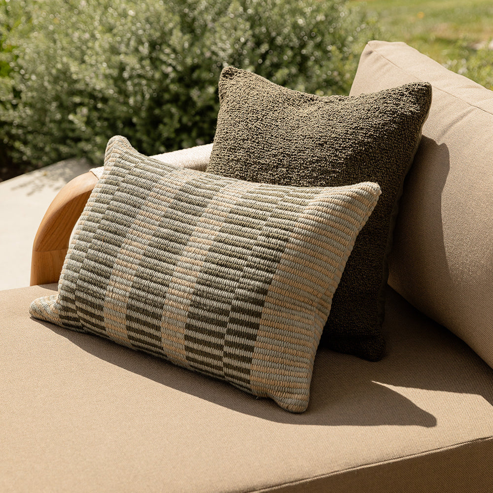 Bring an elevated, interior quality to the outdoors with the pared-back design of the Piper Cushion. Handwoven from recycled PET yarn, Piper features a textured bouclé weave, creating a richly tactile surface that invites touch. Suitable for both indoor and outdoor spaces, this versatile, solid colour design pairs effortlessly with a wide range of cushions.
