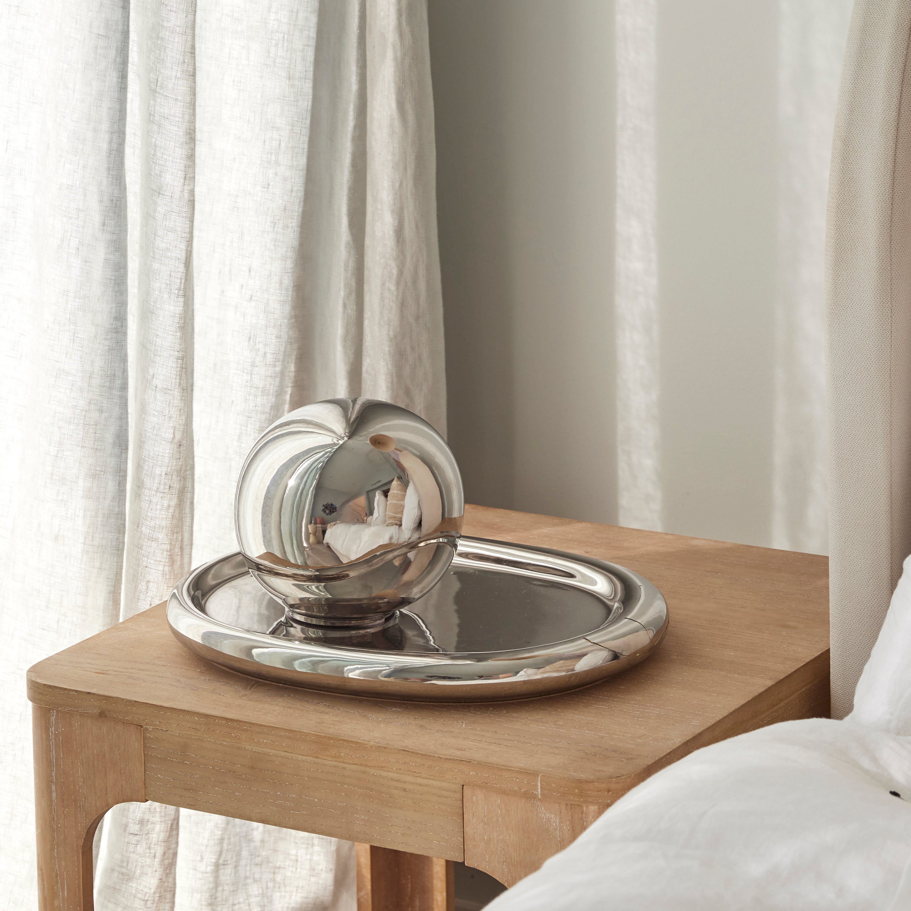 The Prata Dish adds charm with its chrome glazed ceramic finish and oval. Perfect for displaying trinkets on a tabletop, shelf, or windowsill.