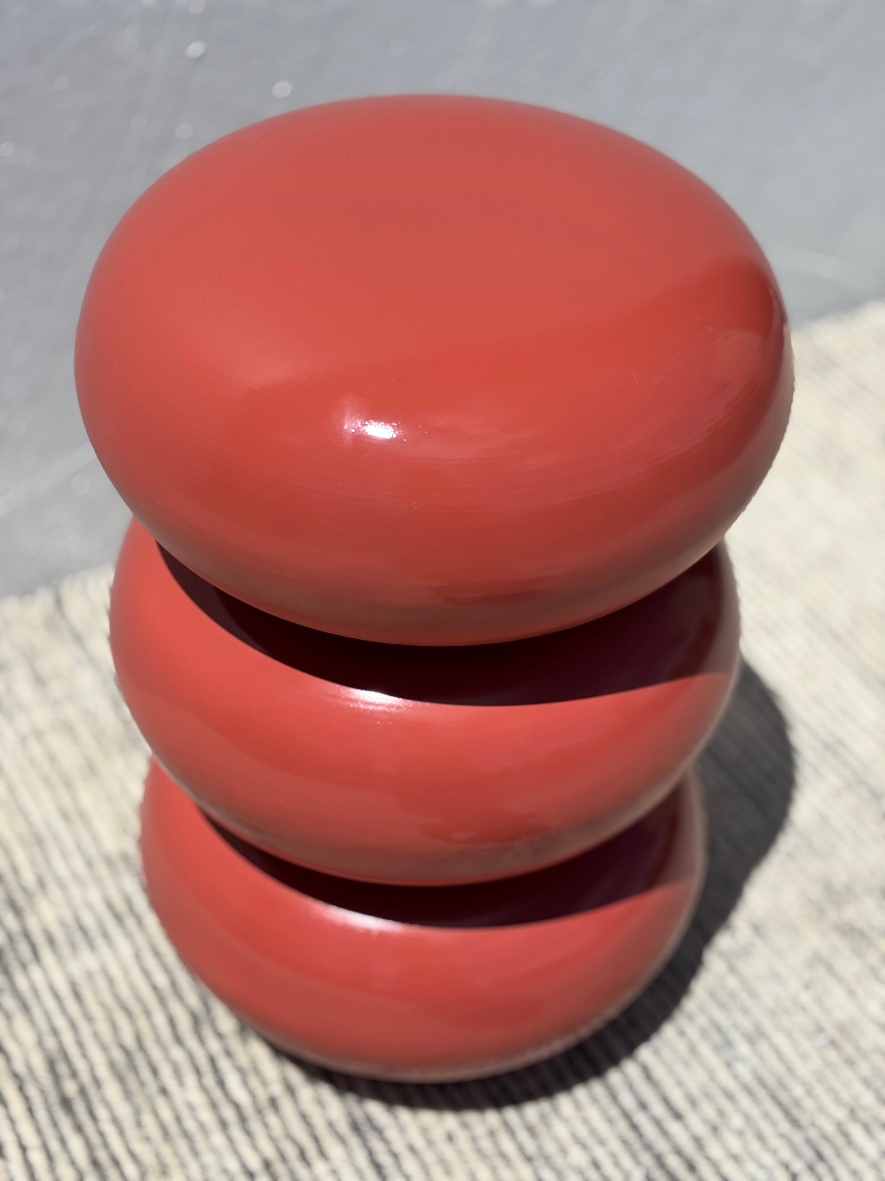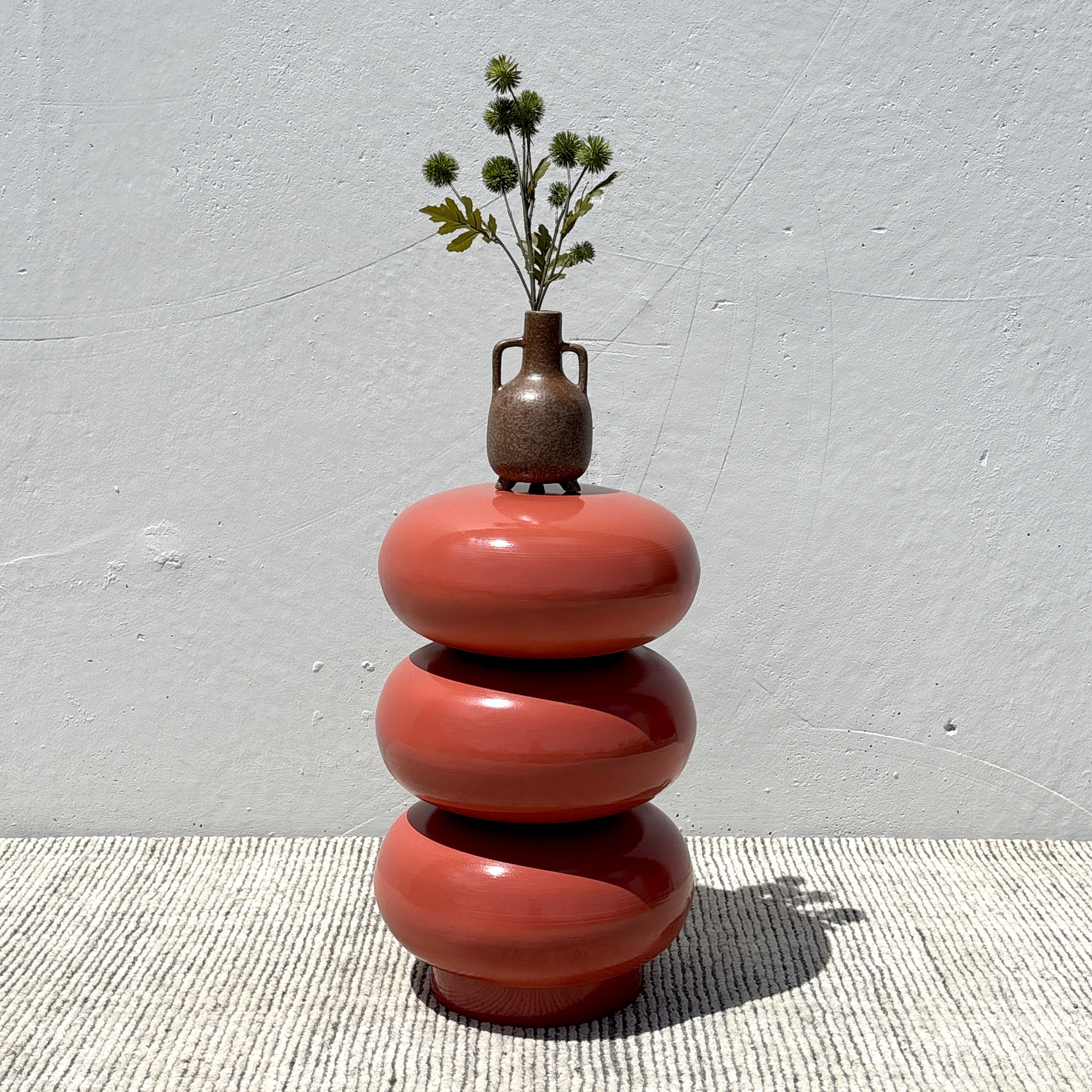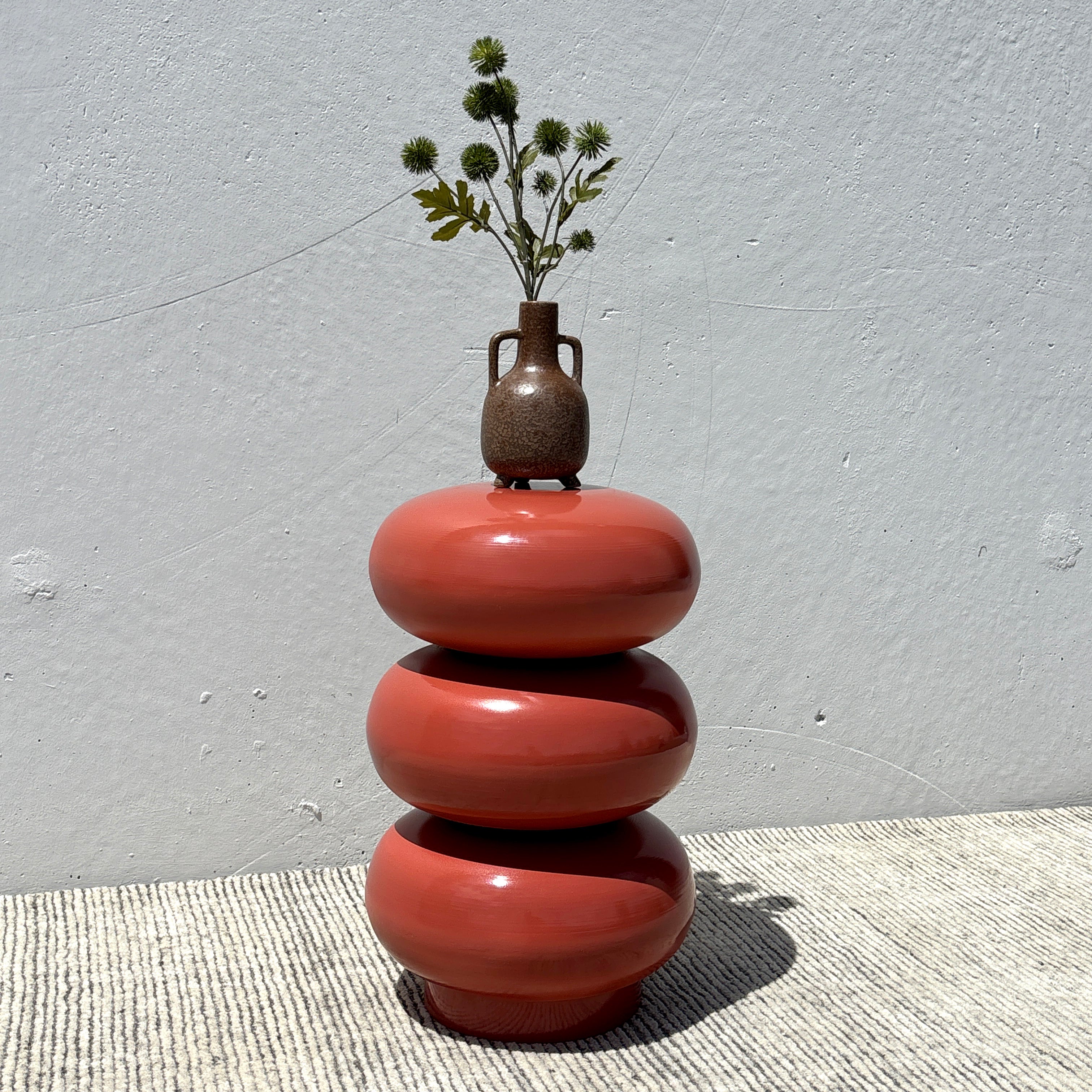 Meet the Ruby Side Table. This chic metal side table features a retro-inspired silhouette of stacked rounded shapes, finished in a stunning rust red-orange for the ultimate pop of colour. Exuding playful modern simplicity, the Ruby is perfect to place next to an armchair or sofa for a practical yet sophisticated addition to your space.