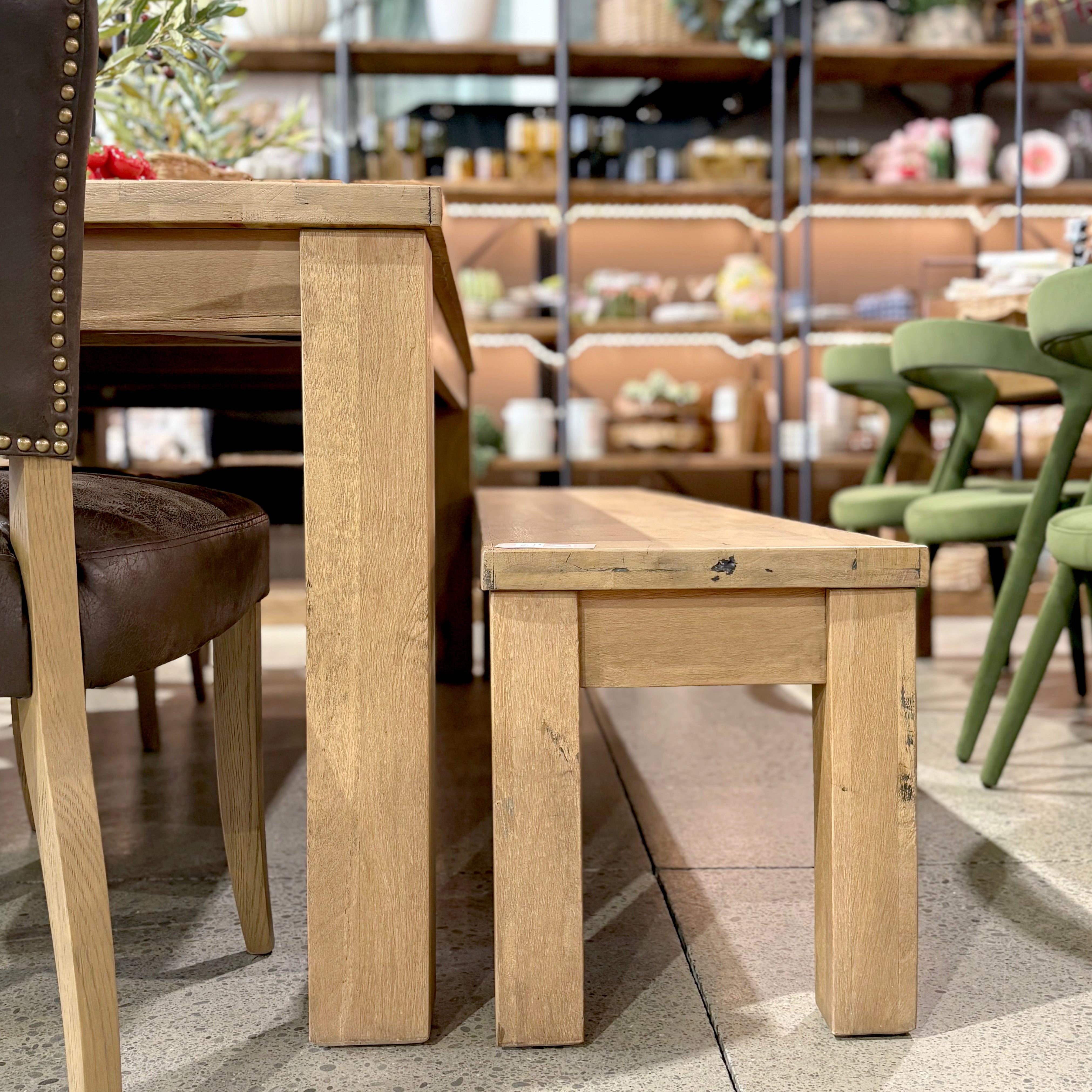 The bench counterpart to our rustic favourite dining collection - The Salvar Bench now available in Neem Hardwood with a natural finish! Neem hardwood is a strong, durable wood ideal for dining tables and benches. With its warm tone and distinctive grain, Neem adds both function and rustic charm to dining spaces.