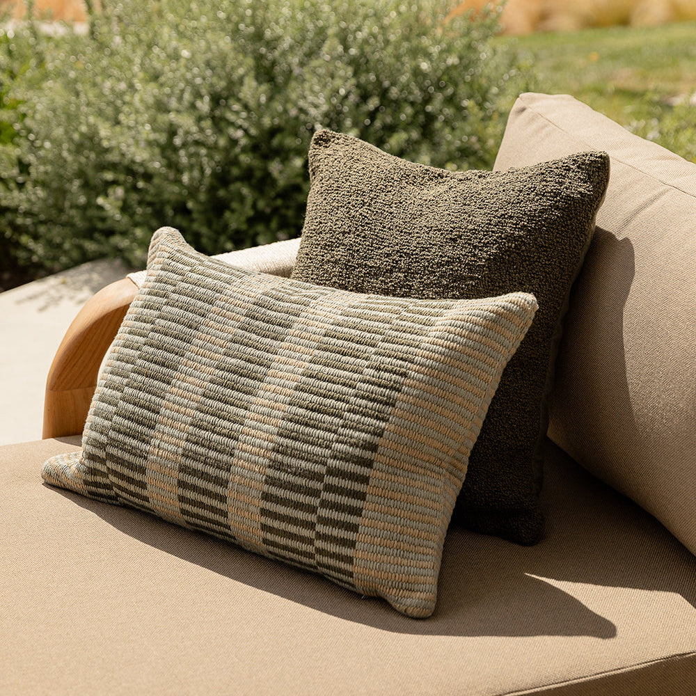Bring your interior style outdoors with the artisan quality of the Sol Cushion. Intricately handwoven in sage and mangrove tones, the offset linear design adds a striking focal point to exterior settings. Both functional and beautiful, this durable lumbar works just as well styled indoors, especially in areas exposed to sunlight. Pair with complementary mangrove and eucalyptus tones to emphasise the design and colour palette.