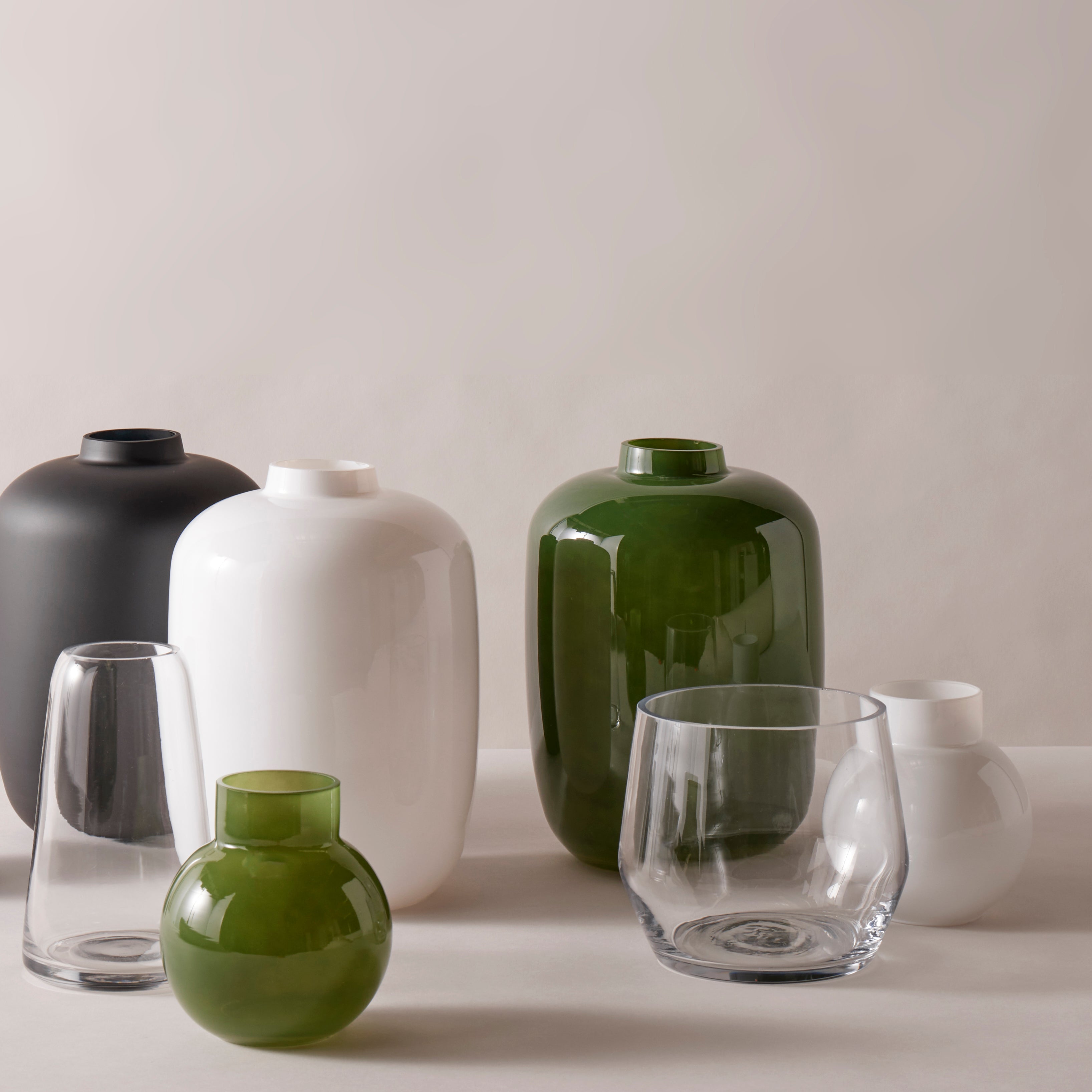 The Sophie Vase crafted from hand-blown glass with a green gloss finish, is perfect for showcasing flowers, real or faux. Its elegant cylindrical shape creates a striking focal point. Ideal for adding style to any corner of your home.