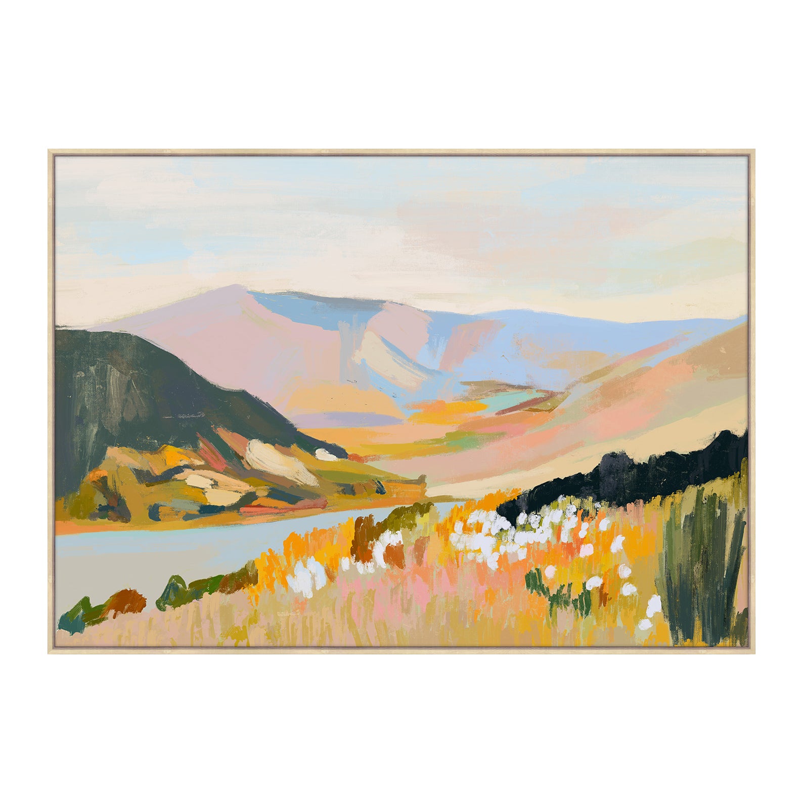 Capture the essence of a languid summer afternoon with this evocative framed canvas art. Soft, impressionistic brushstrokes depict a dreamy landscape bathed in warm golden light, evoking the hazy tranquility of a perfect day. The natural-toned frame complements the artwork's gentle palette, creating a cohesive piece that brings warmth and serenity to any room. Ideal for those seeking to infuse their space with peaceful, nostalgic charm.