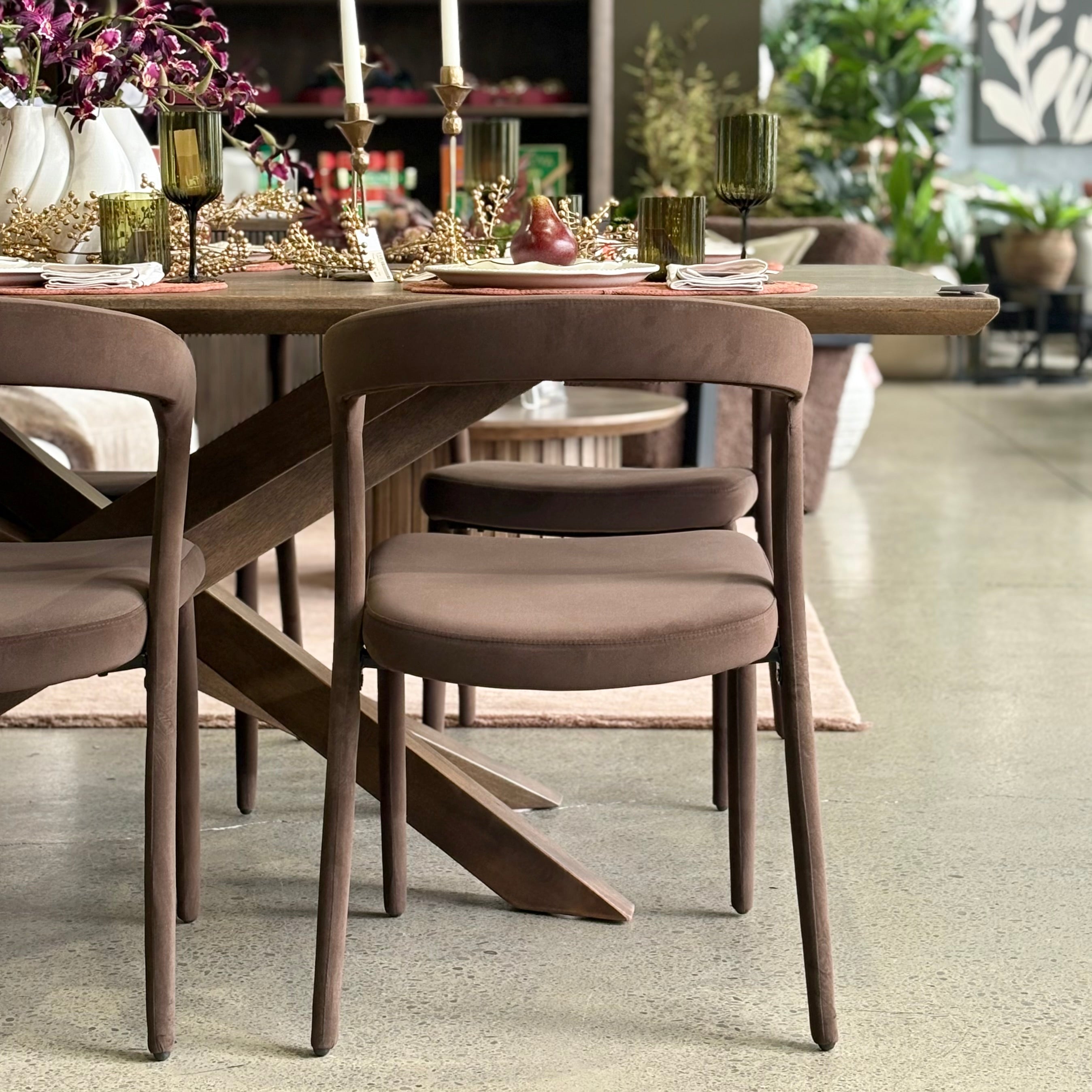 Refined & timeless – meet the Tokyo Dining Chair. With a sculptural yet svelte silhouette inspired by mid-century design and a fully-upholstered mocha brown velvet finish, the Tokyo is a true design statement piece.