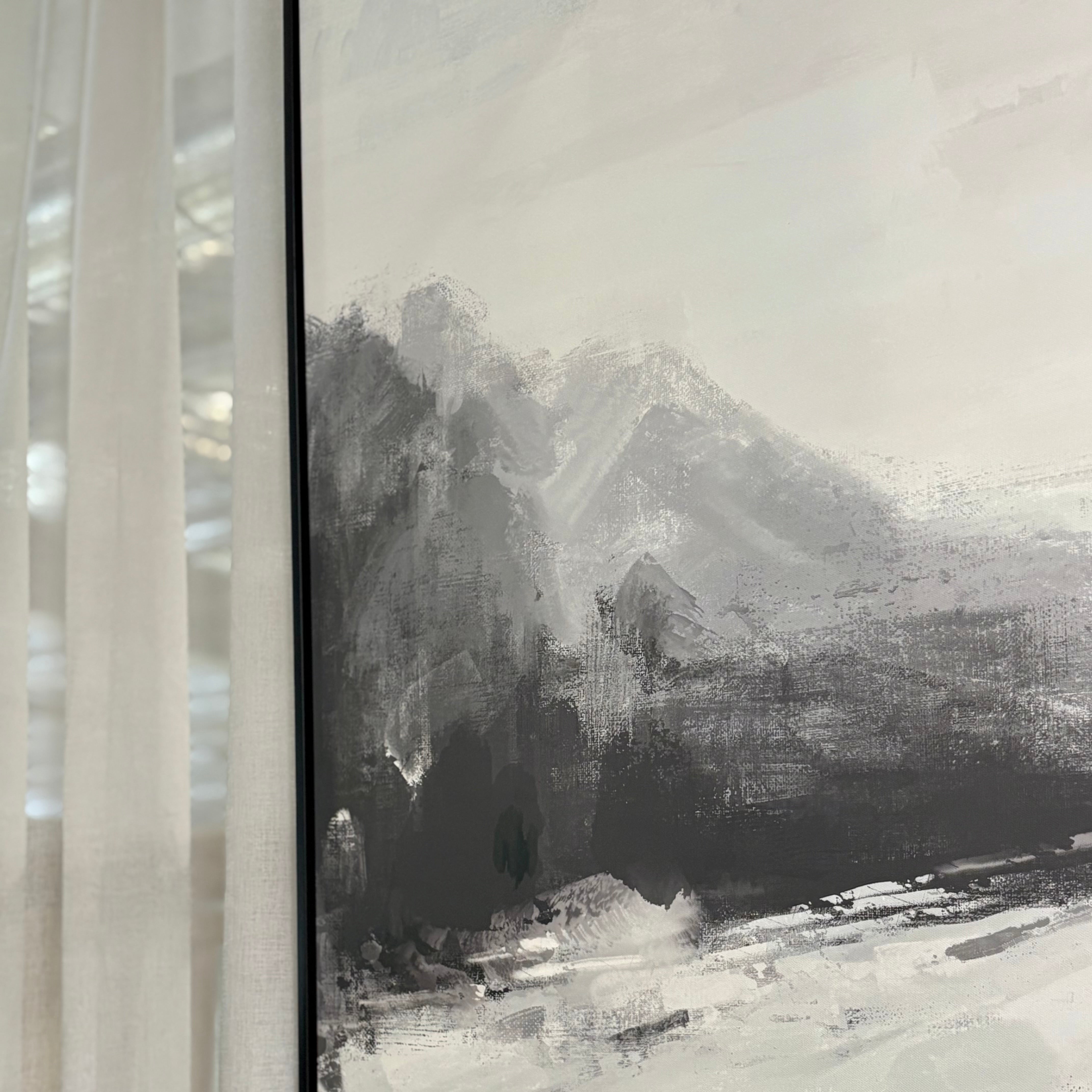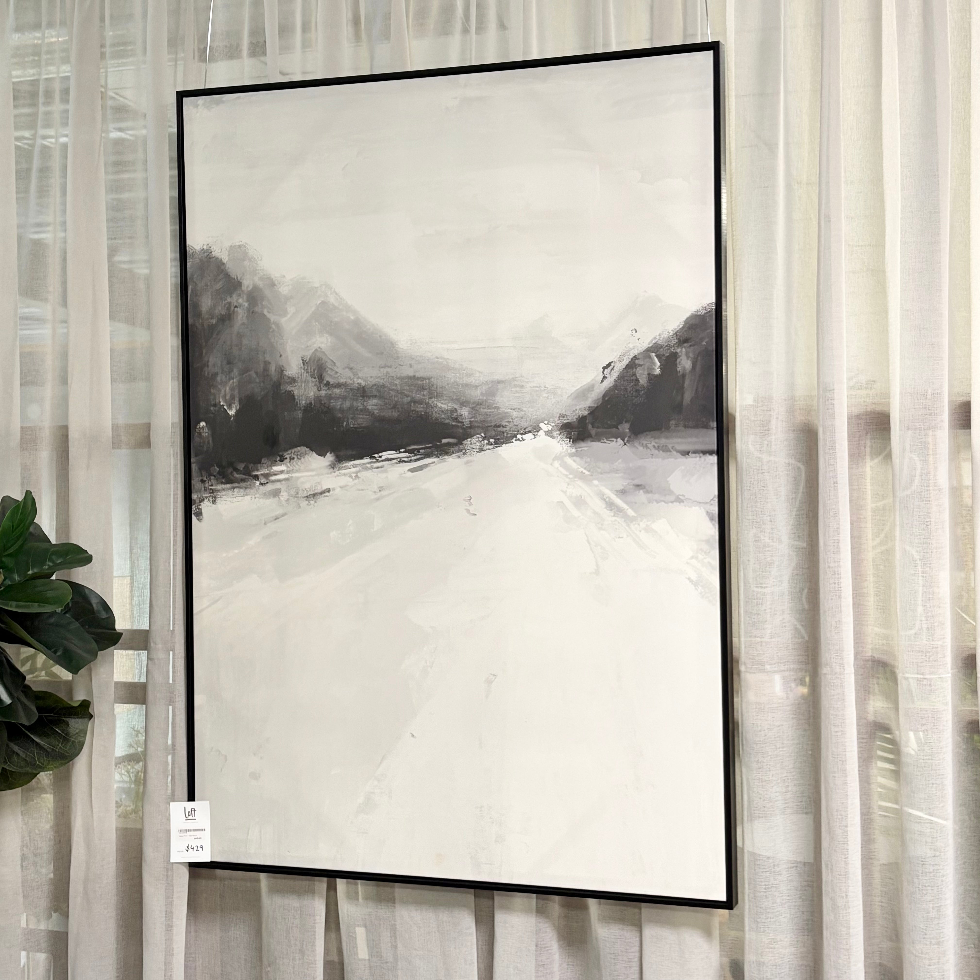 Moody and evocative, the Valley Print showcases an abstract depiction of a road through a valley.