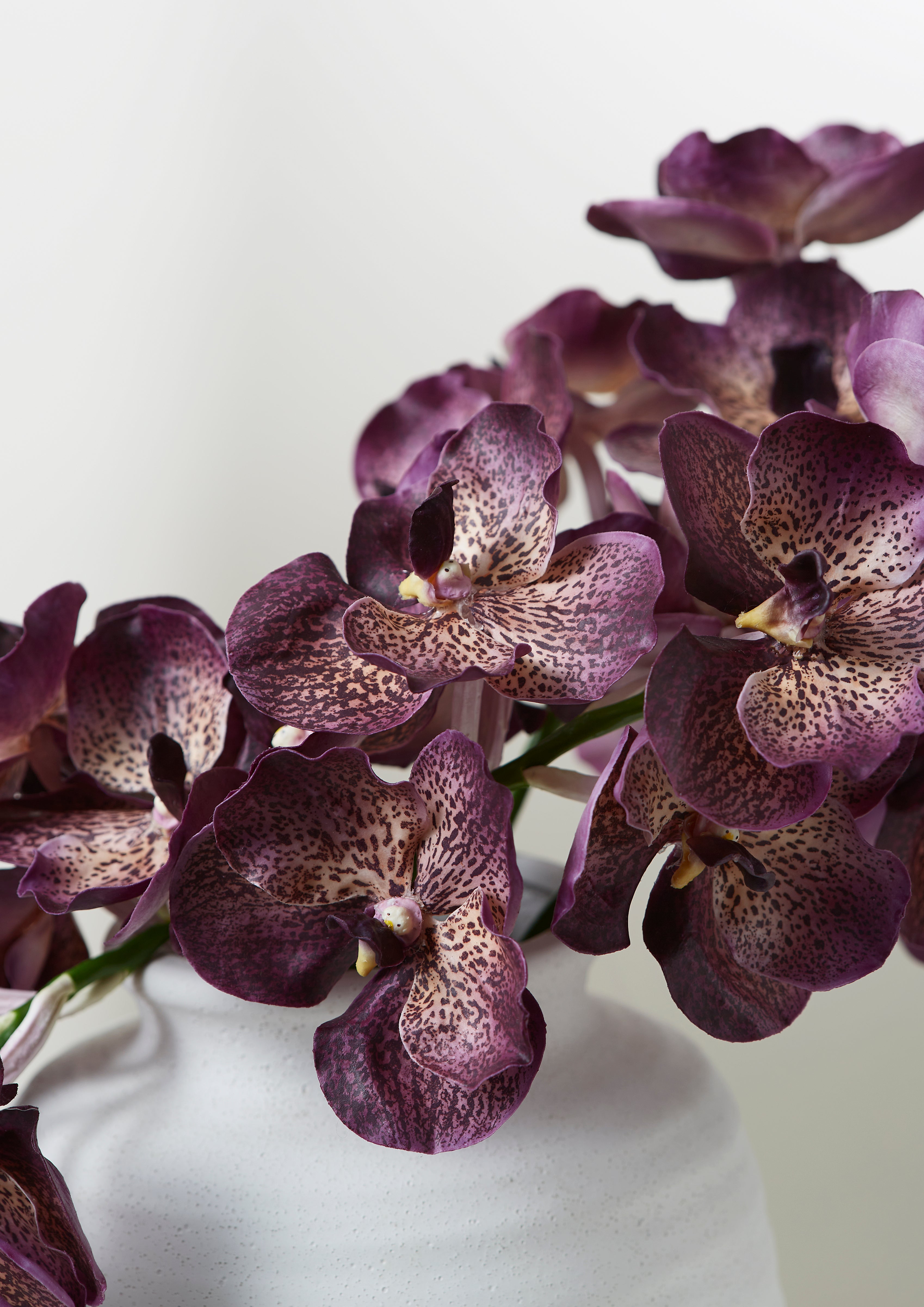 Elevate your interior with this handcrafted Vanda Orchid from Rogue. Featuring lifelike purple blossoms and a sturdy stem, this 66cm faux flower brings botanical elegance without maintenance. Expertly made in Thailand, it's perfect for creating stunning arrangements or displaying solo in a vase. Combine with complementary stems for a bespoke bouquet, or let it stand as a striking focal point. Durable and timeless, this everlasting orchid adds lasting colour and sophistication to any room.
