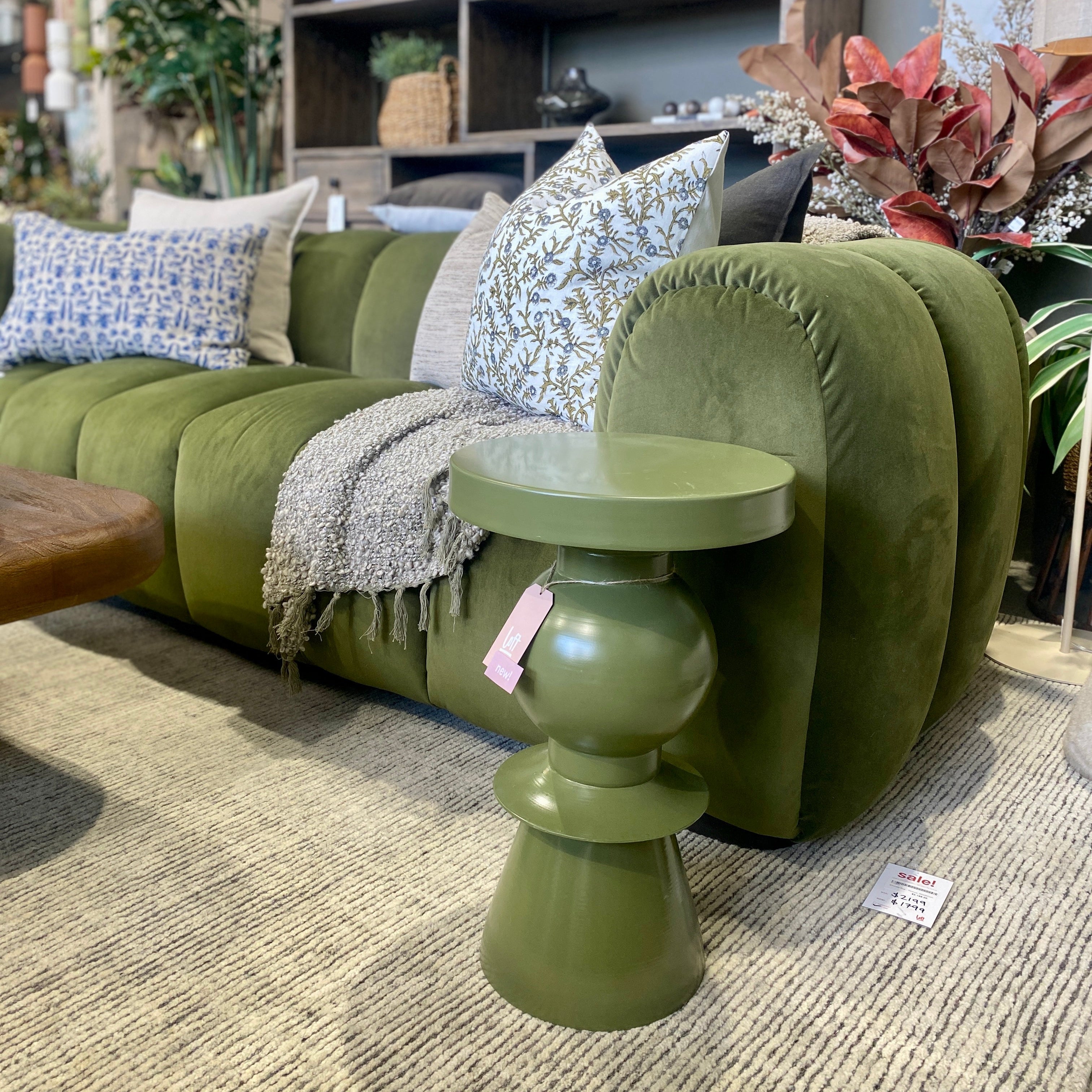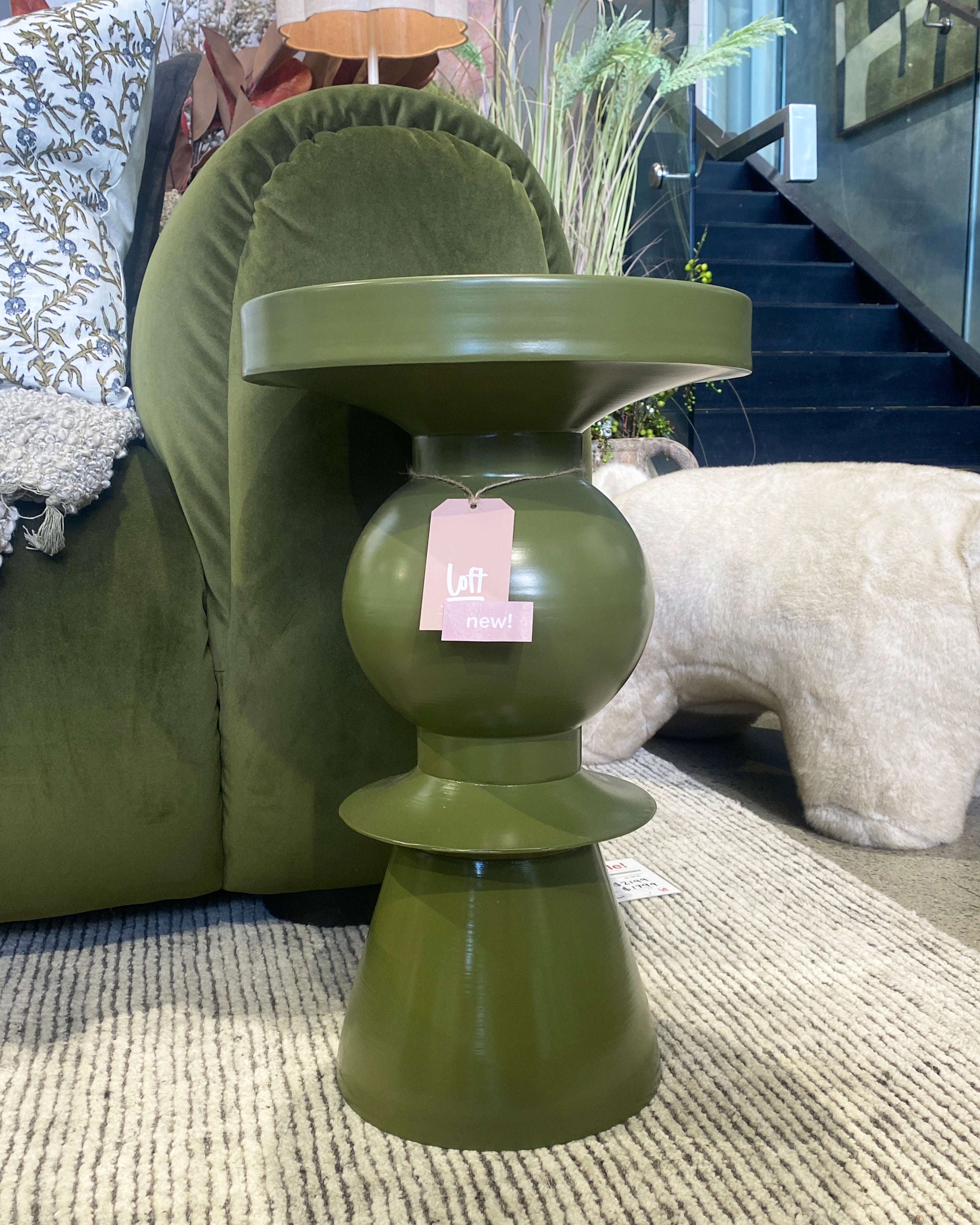 Meet the Vega Side Table. This chic metal side table features a retro-inspired silhouette of stacked shapes, finished in a stunning olive green for the ultimate pop of colour. Exuding playful modern simplicity, the Vega is perfect to place next to an armchair or sofa for a practical yet sophisticated addition to your space.