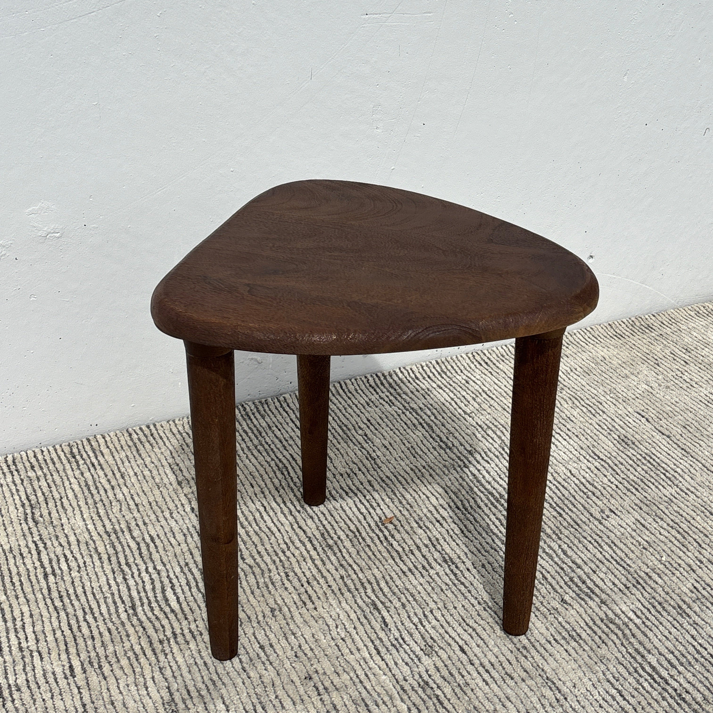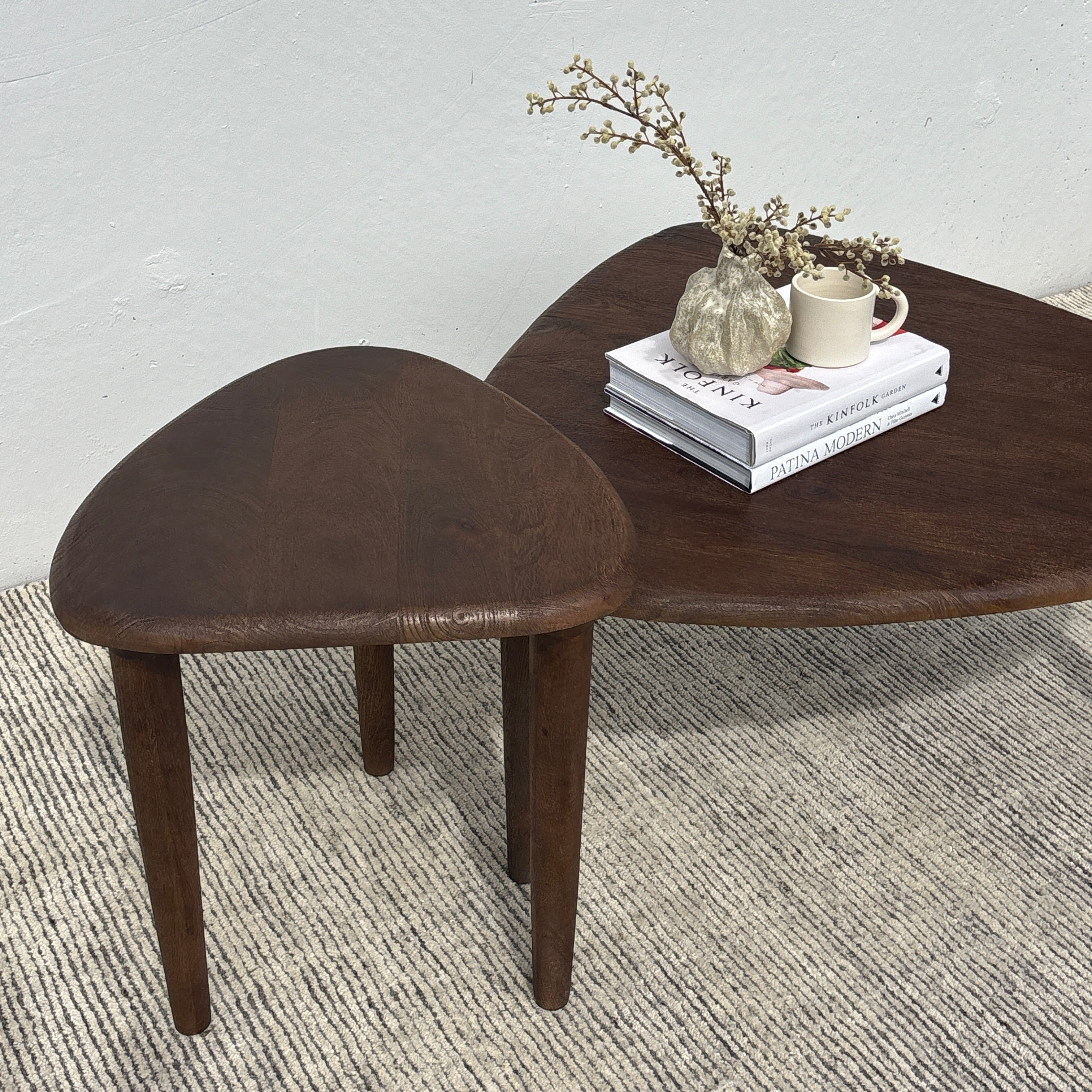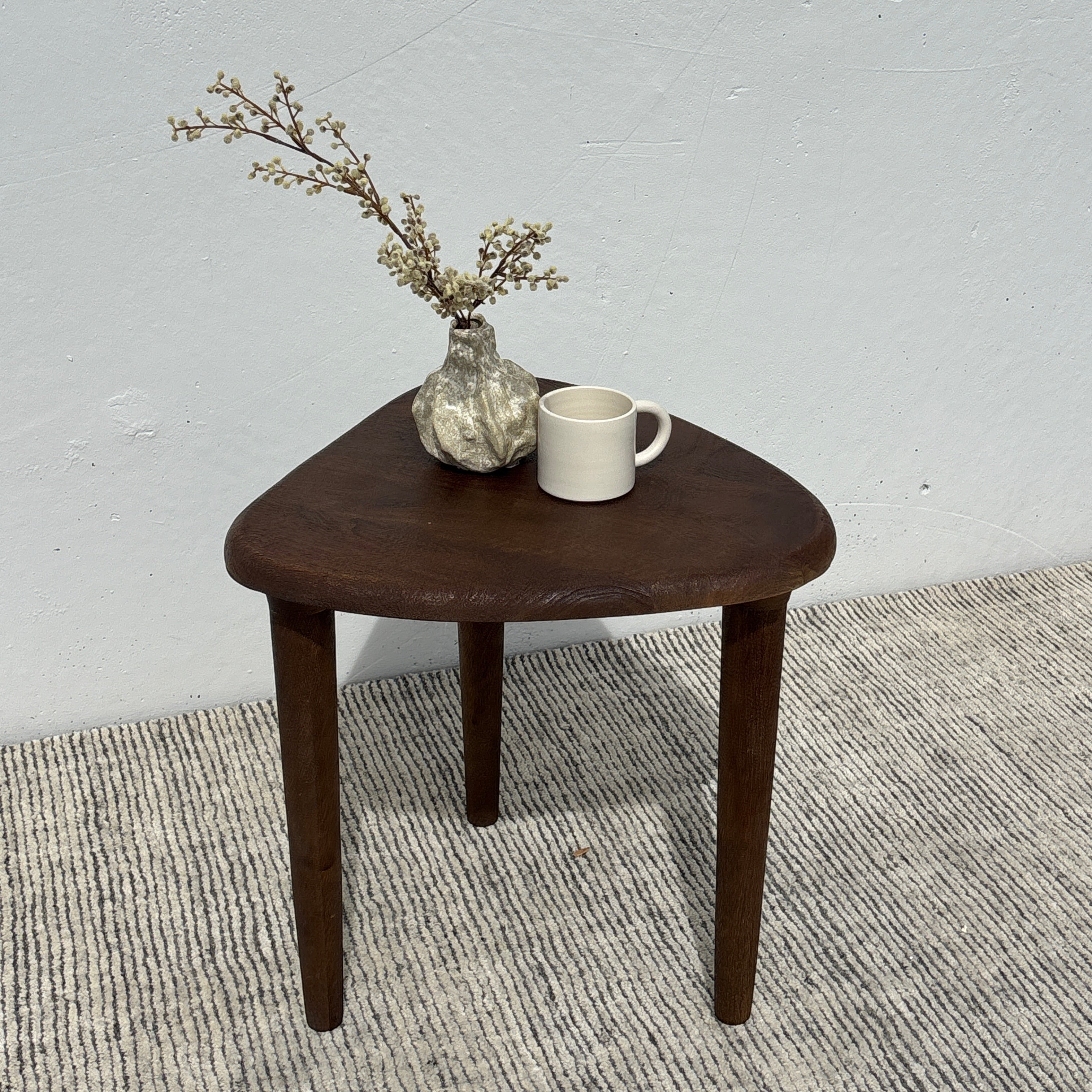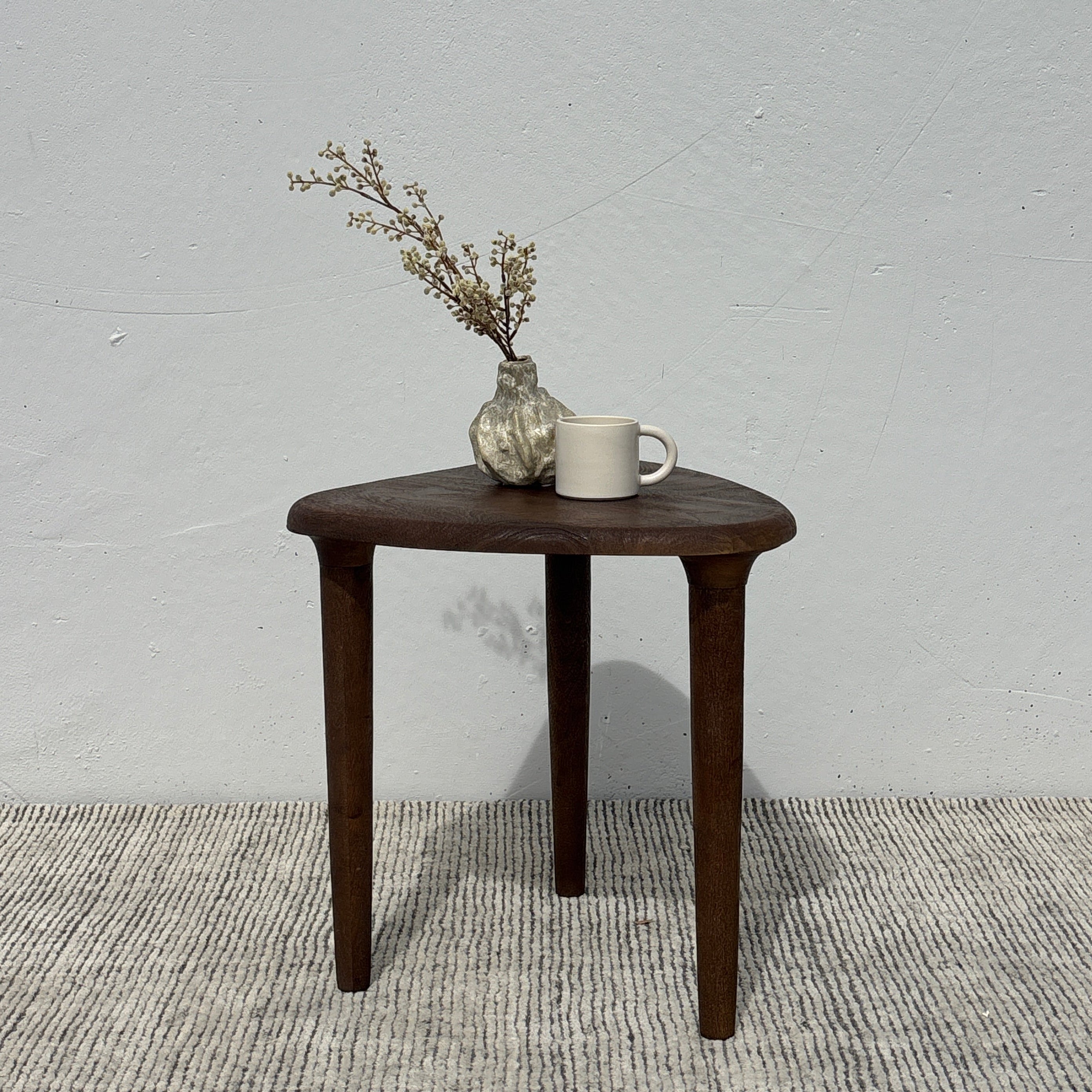 Meet the Viola Side Table – a contemporary design with a slimline elegance. This side table style features a triangular 3-leg silhouette with tapered detailing and a subtly textured surface, crafted in acacia wood and finished in a rich walnut brown. Exuding a contemporary simplicity, the Juni is perfect to place next to an armchair or sofa for a practical yet sophisticated addition to your space – or pair with the matching side table for the complete coffee table cluster look.